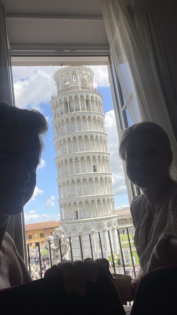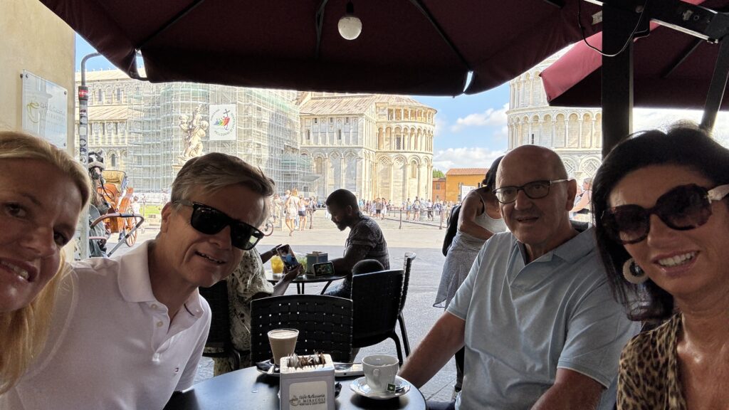 Um 9 Uhr bin ich mit Birgit eine Runde rund um den schiefen Turm gegangen und um 10 uhr haben wir uns zum Frühstücken getroffen. Danach sind wir zu viert mit Gerlind und Fritz spazieren gegangen.