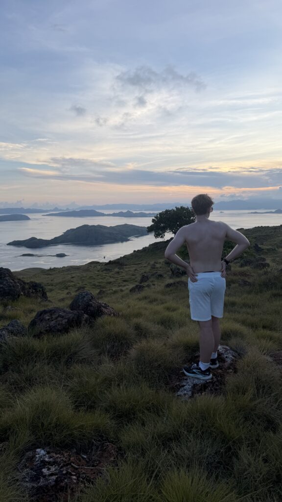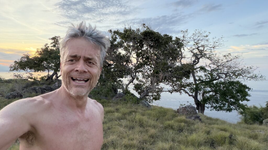 Um 17:00 Uhr waren wir wieder zurück und um 17:15 Uhr hat Nici und mich das Zodiak wieder zum 10 Minuten entfernt liegenden Steg/Jetty gebracht. Wir wollten noch einmal die 240 Höhenmeter und 2,2 km rauf laufen. Diesmal habe ich den Hügel in knapp über 17 Minuten bewältigt und Nico war 90 Sekunden langsamer. Rechtzeitig vor der Dunkelheit waren wir wieder zurück beim Jetty.