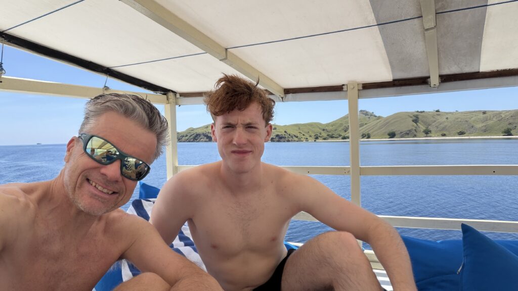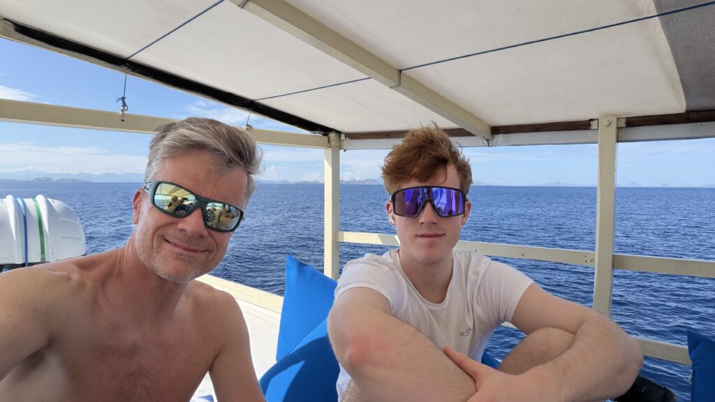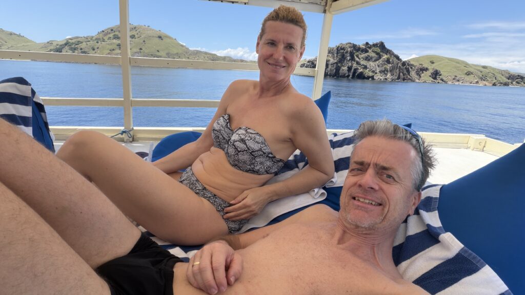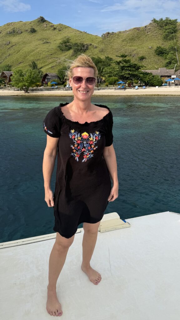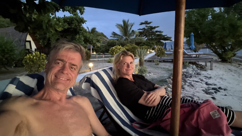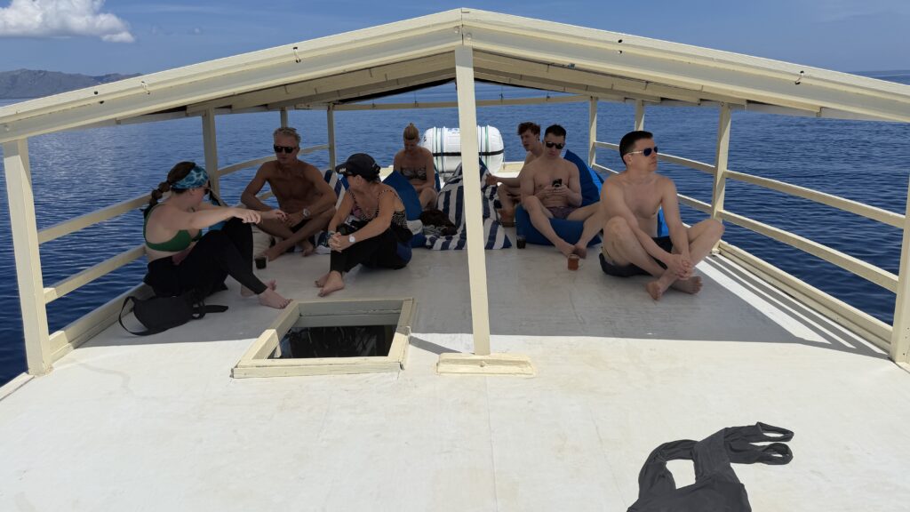 zunächst fuhren wir rund eineinhalb Stunden gemütlich mit dem Schiff zum ersten Dorfplatz. Mit uns ein australisches Pärchen in unserem Alter mit ihrer rund 25-jährige Tochter und zwei und 35-jährige Männer aus Minnesota. Es hat sich herausgestellt, dass wir eine ganz tolle Gemeinschaft sind und sind dann auch noch die nächsten zwei Tage in dieser Konstellation tauchen gegangen.