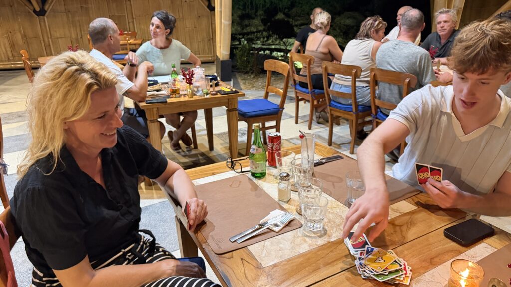 gegen 18:30 Uhr waren wir Abendessen und dabei haben wir ständig UNO gespielt. Es war ein toller Tag hier Komodo.