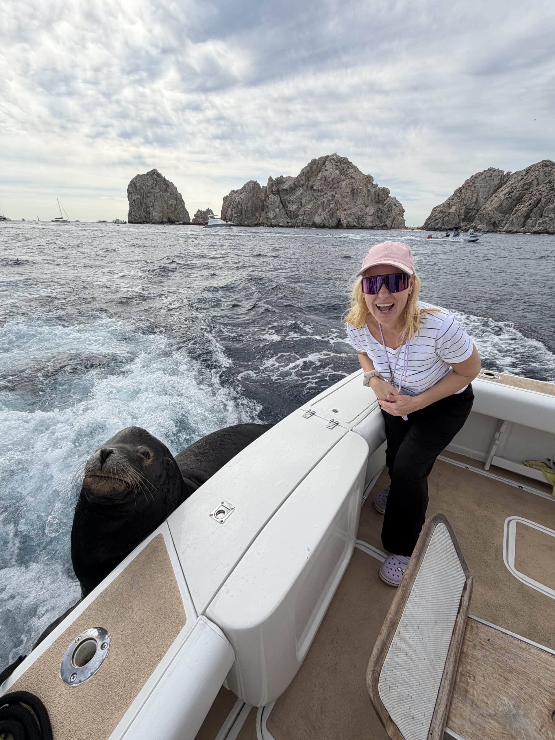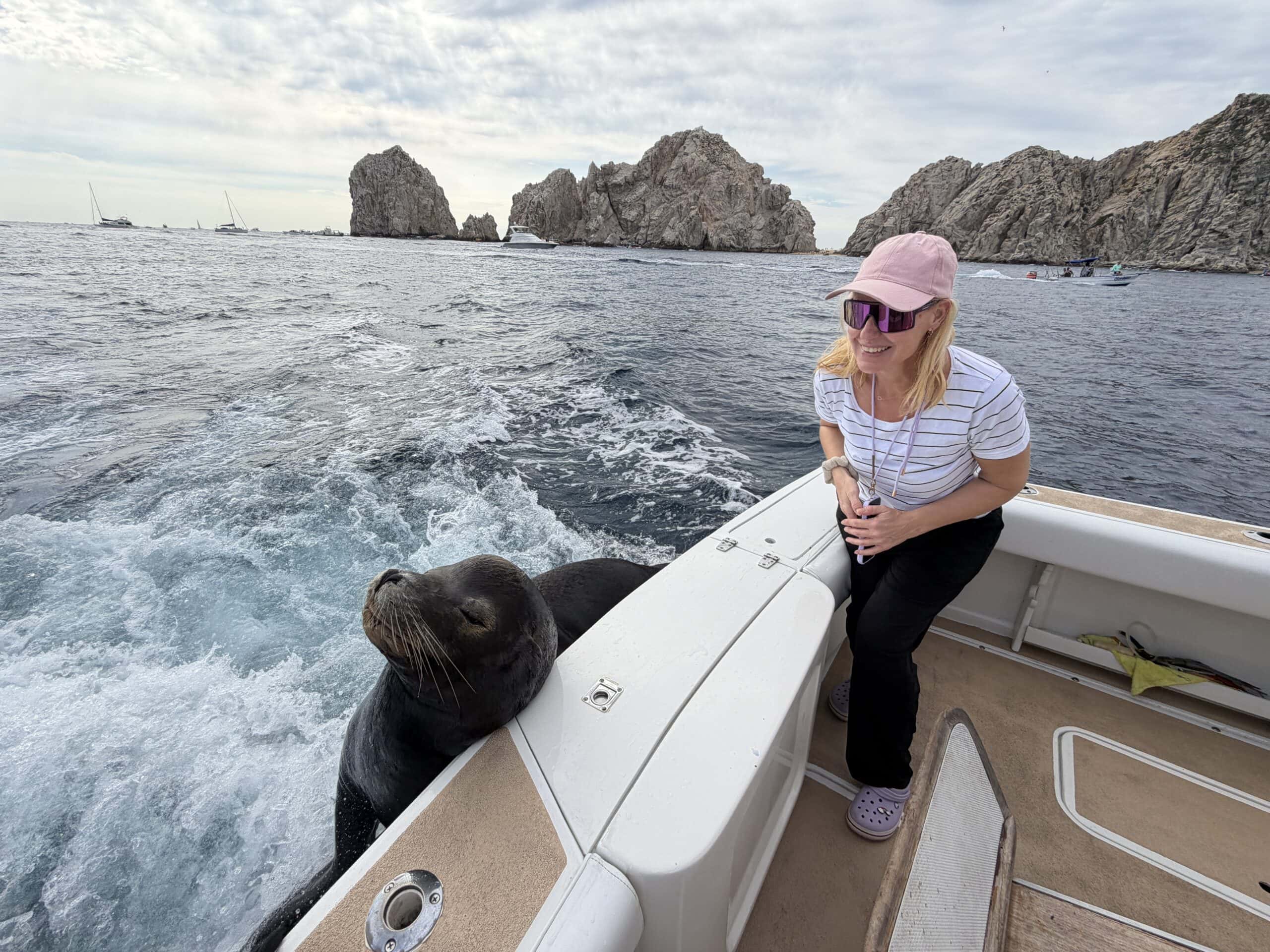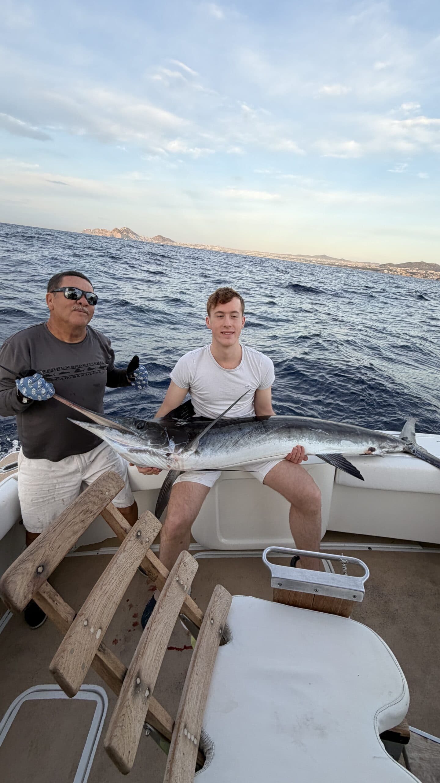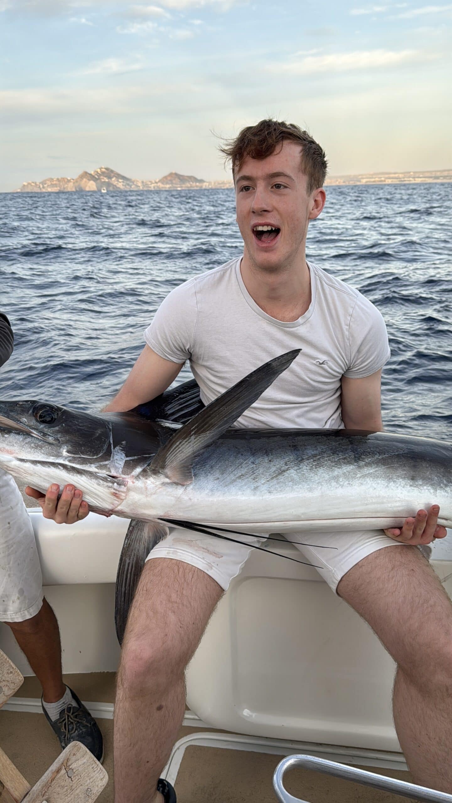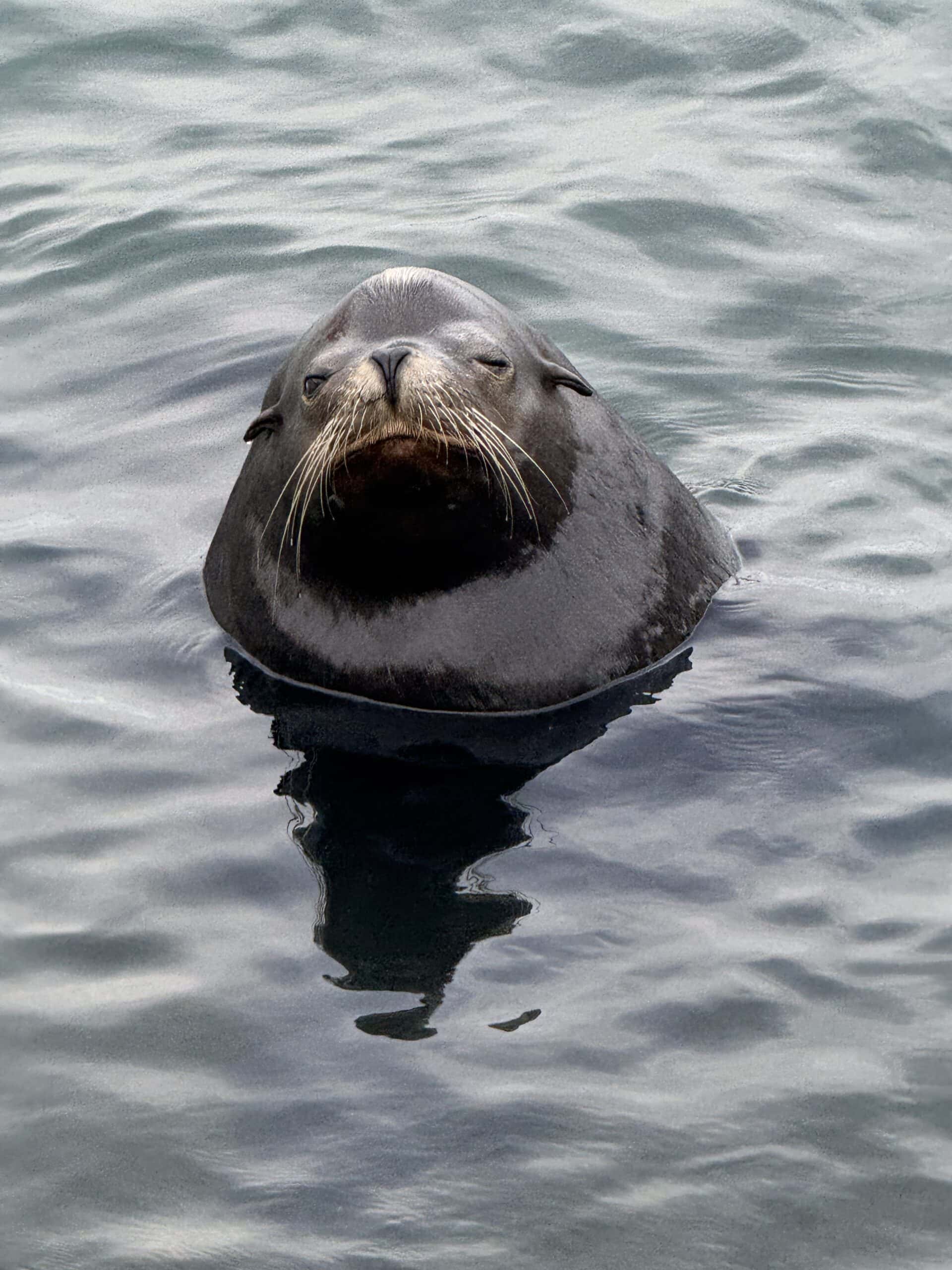 Um 7:20 Uhr Nico den Malin in der Hand für rund 30 Sekunden und gleich danach haben wir den Fisch wieder ins Wasser gelassen. Die Wellen verbunden mit der Anstrengung haben Nikan seekrank werden lassen. Wir sind dann gegen 10:30 Uhrwieder zurück zum Hafen gefahren. Dabei hat uns auch ein großer Seelöwe begleitet und ist doch kurz auf unser Boot gesprungen. Das war echt cool.