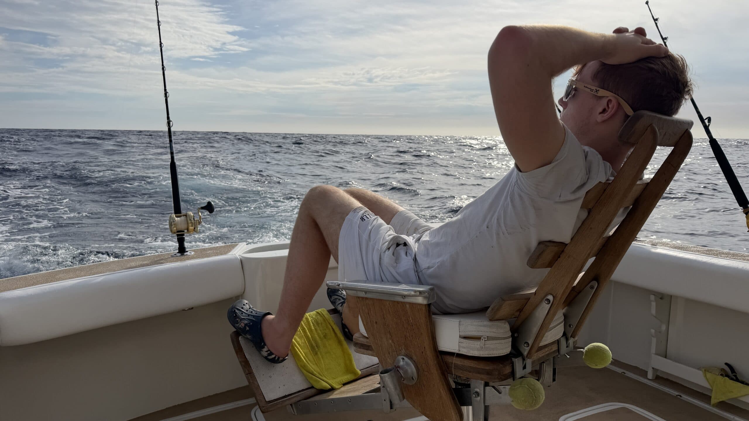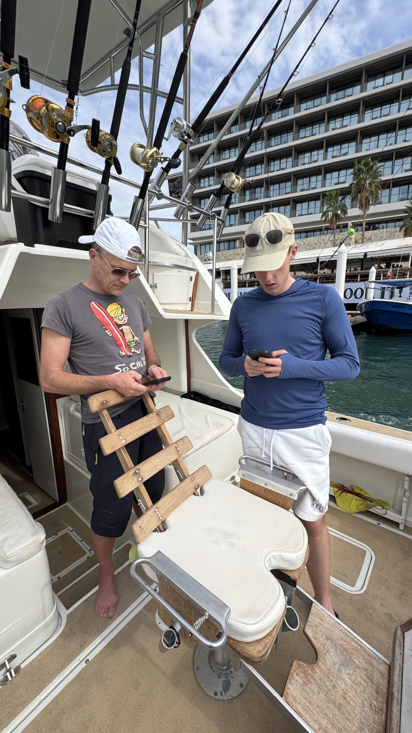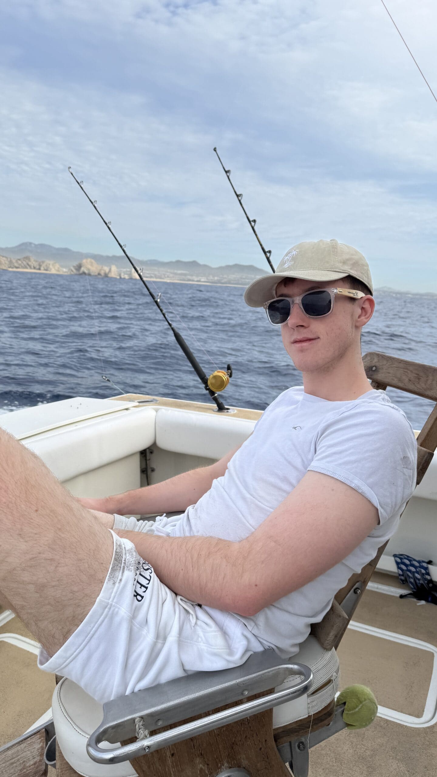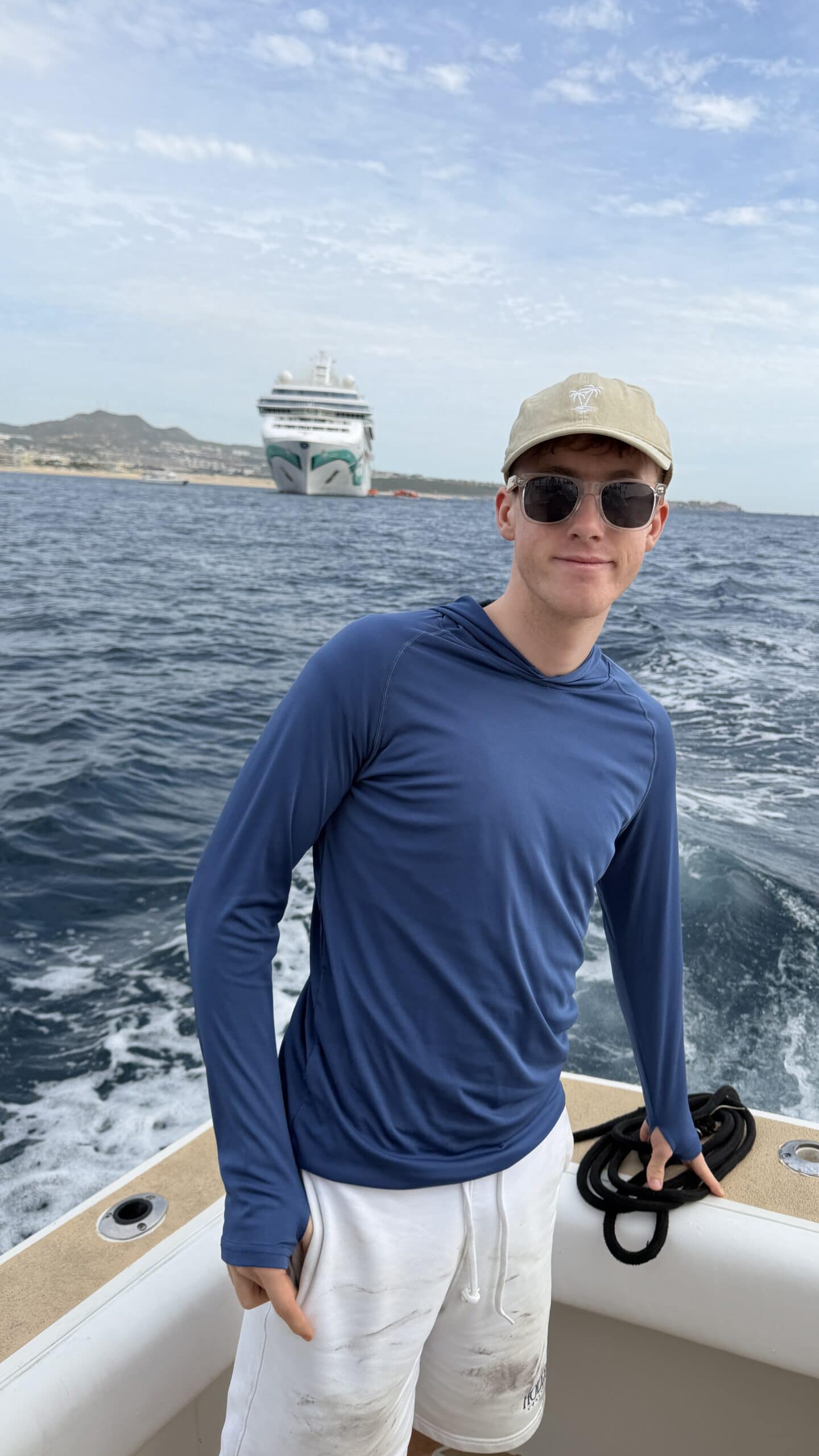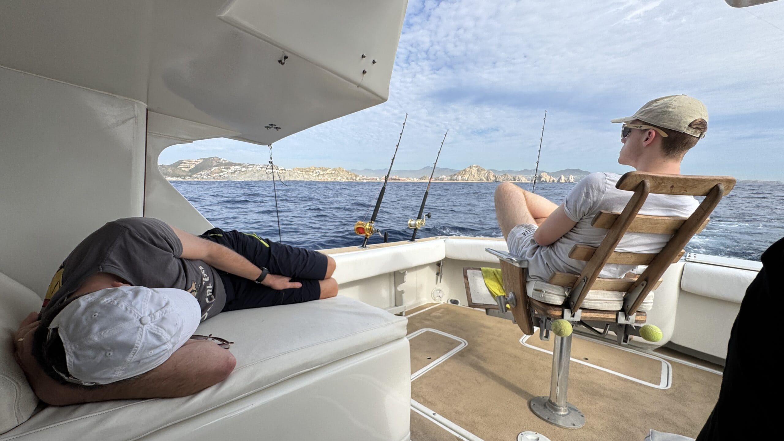 Um 7:20 Uhr Nico den Malin in der Hand für rund 30 Sekunden und gleich danach haben wir den Fisch wieder ins Wasser gelassen. Die Wellen verbunden mit der Anstrengung haben Nikan seekrank werden lassen. Wir sind dann gegen 10:30 Uhrwieder zurück zum Hafen gefahren. Dabei hat uns auch ein großer Seelöwe begleitet und ist doch kurz auf unser Boot gesprungen. Das war echt cool.