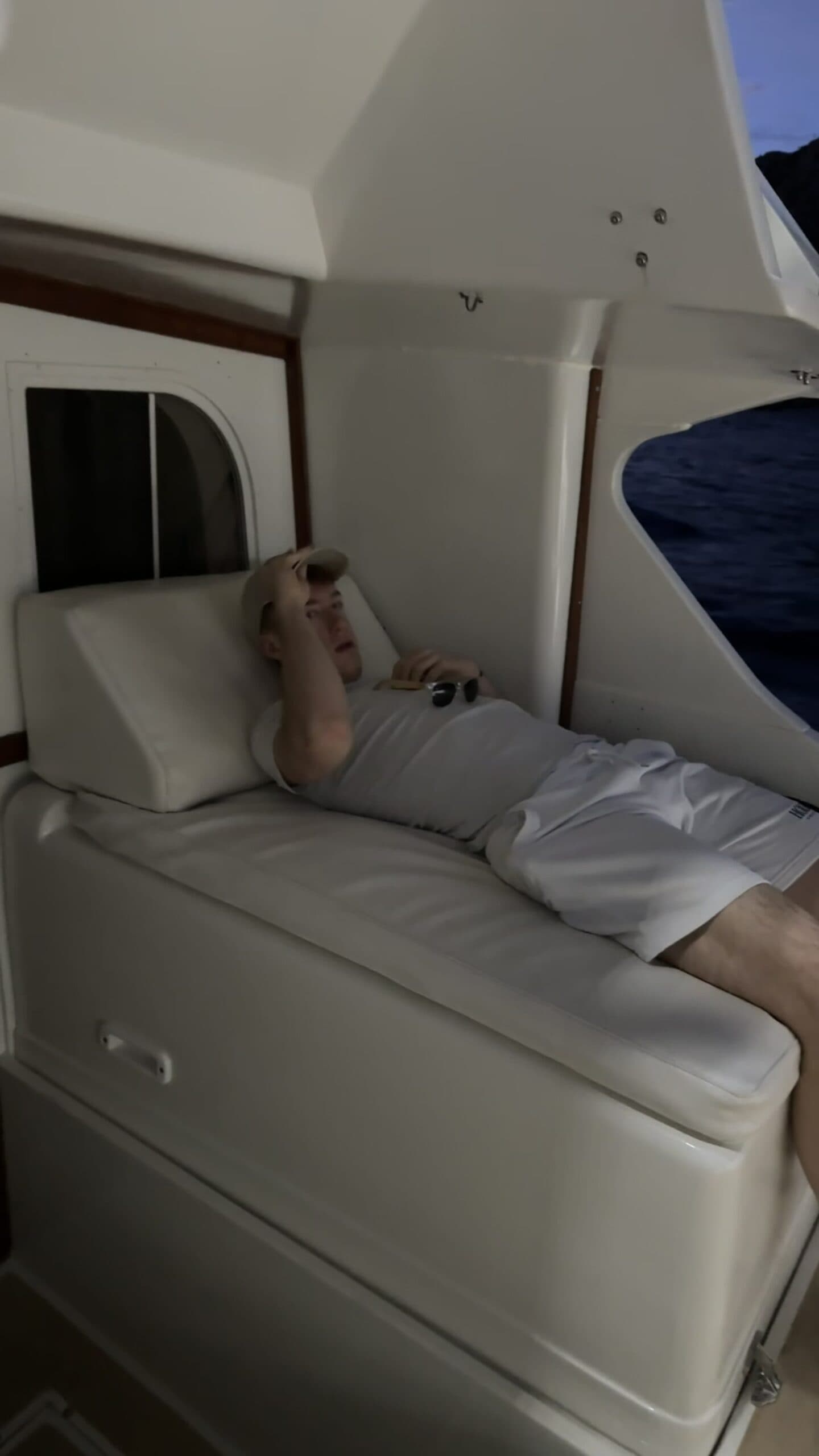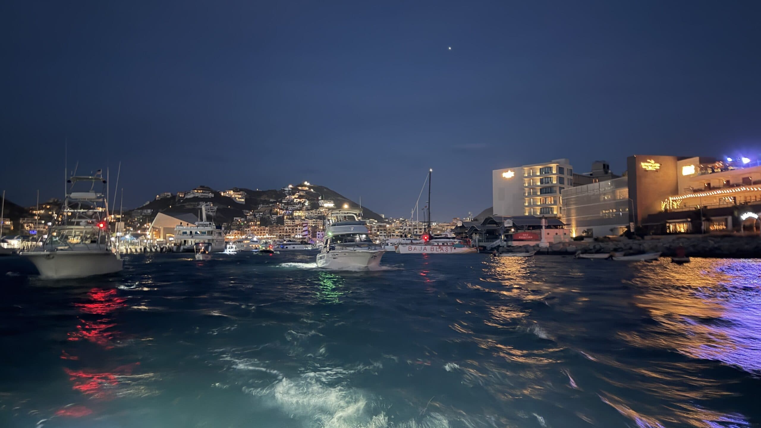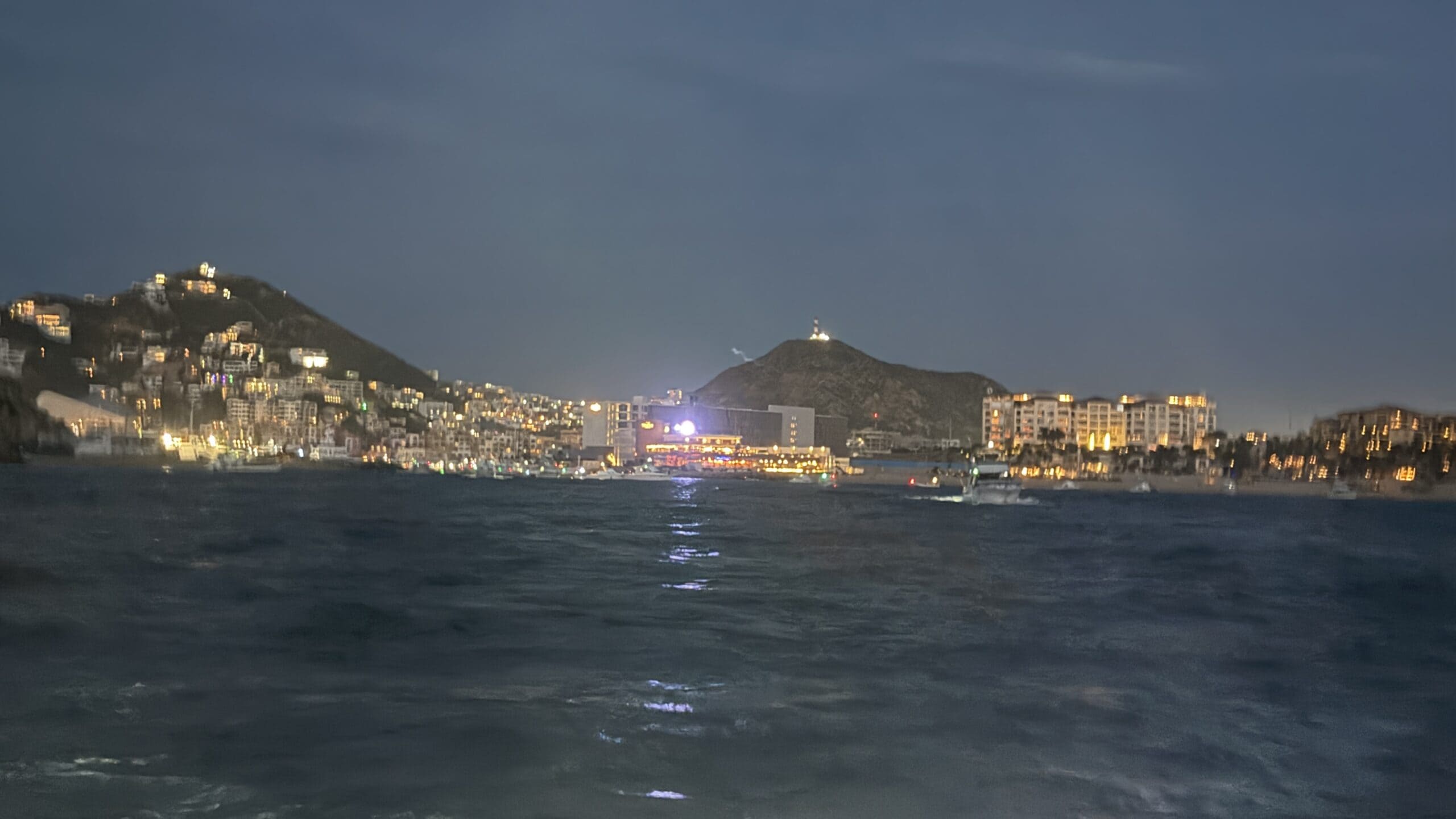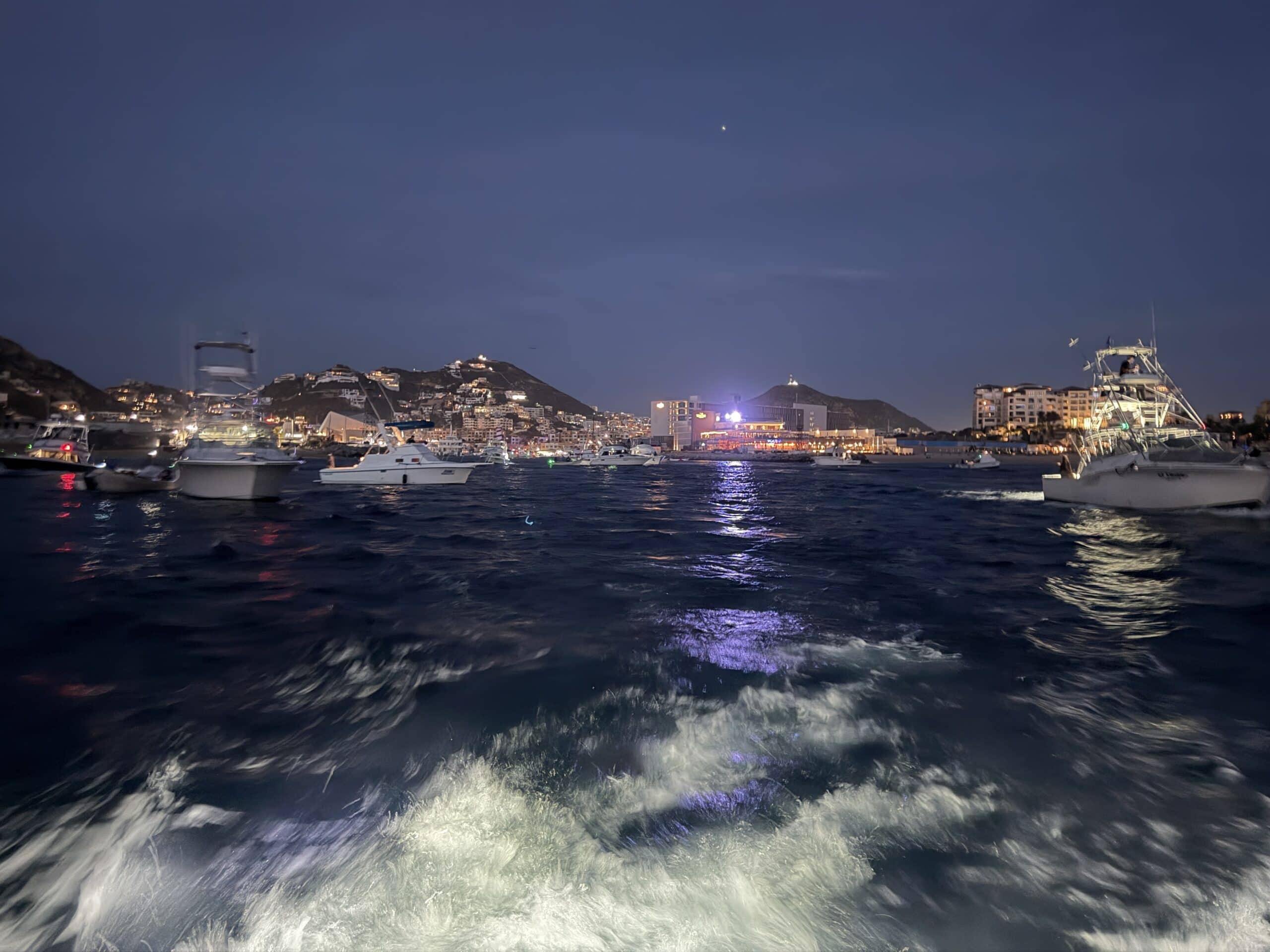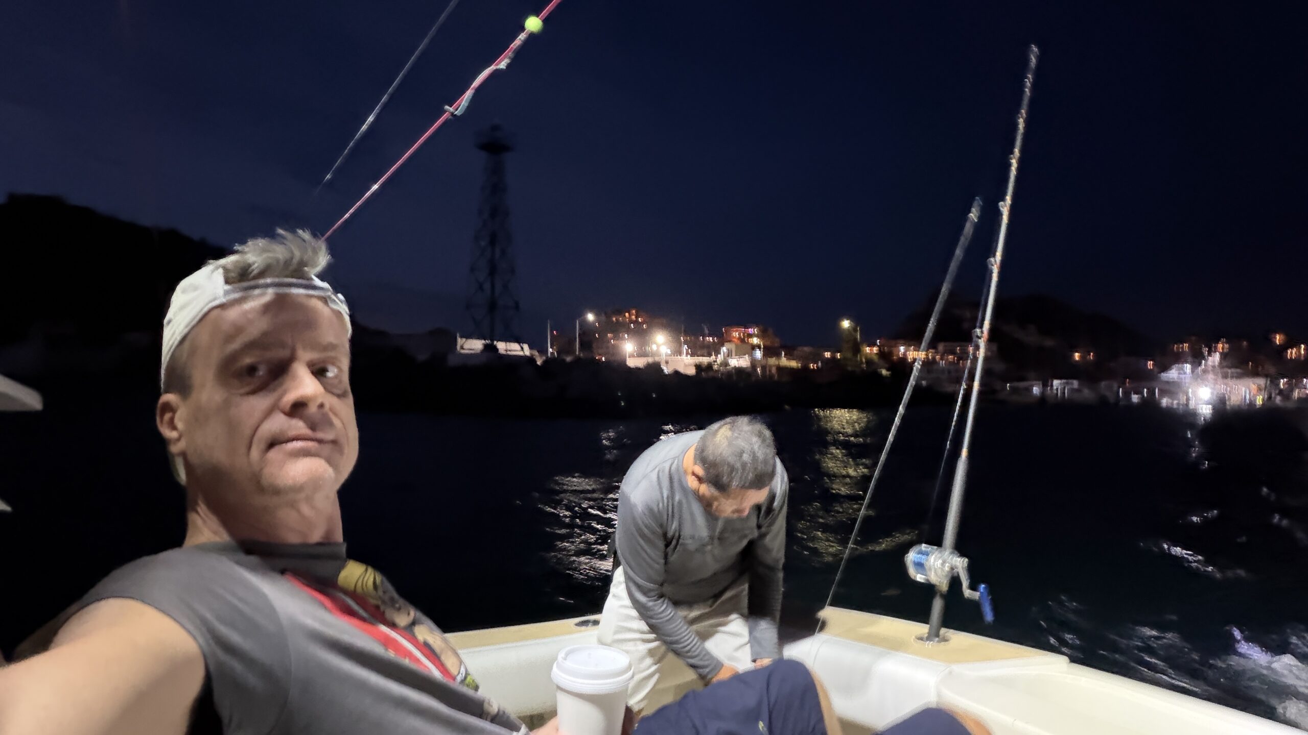 Vorbei an der Felsformation noch in der Dämmerung, wunderschön. Um 7:00 Uhrwar es soweit, Nico hatte einen Marlin an der Angel. Es war ein 2 m großer Marlin und Nico tat sich wirklich sehr sehr schwer die Anke einzuziehen. Der Fisch hatte eine sehr starke Kraft, aber am Ende hat er verloren.