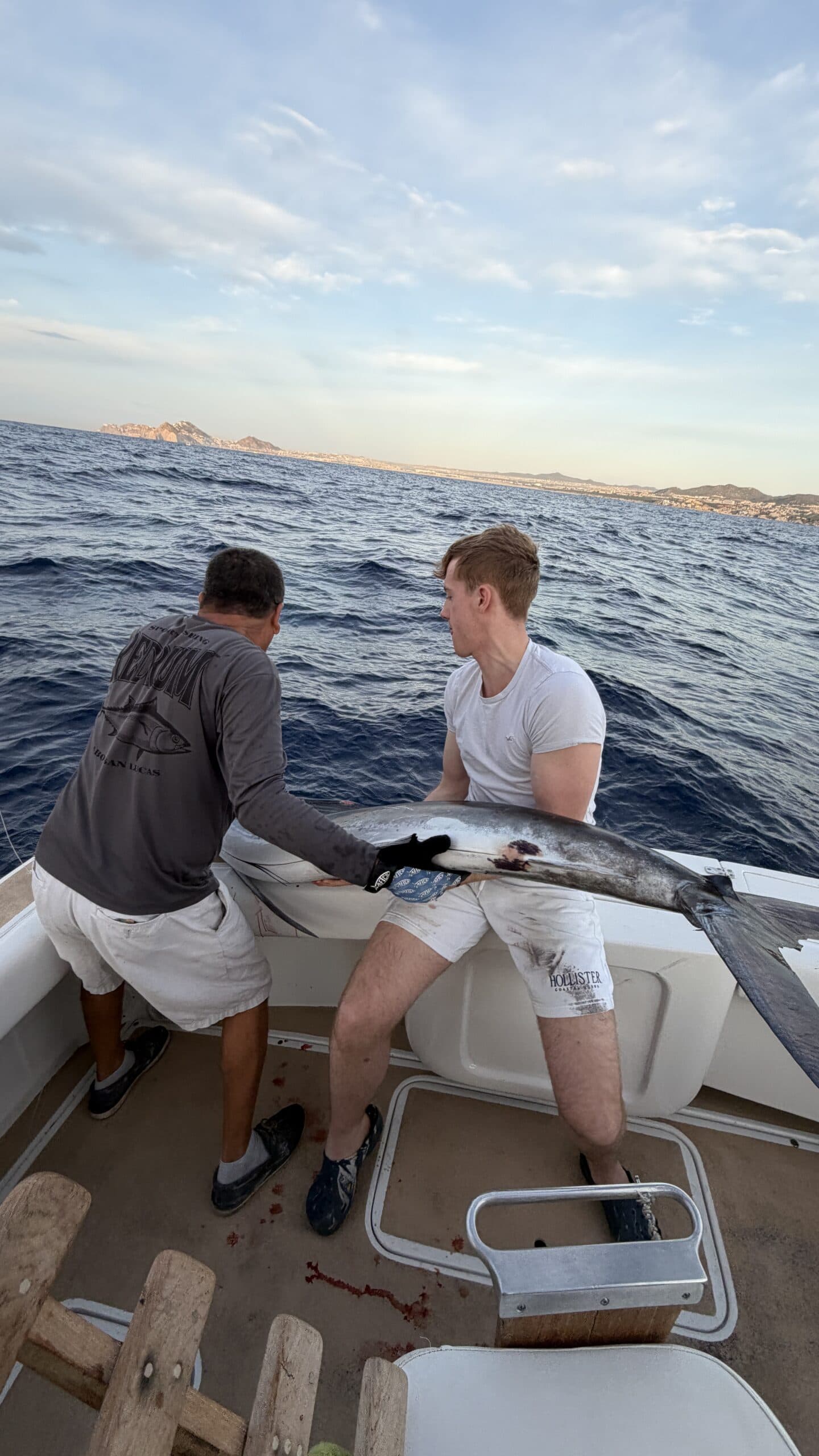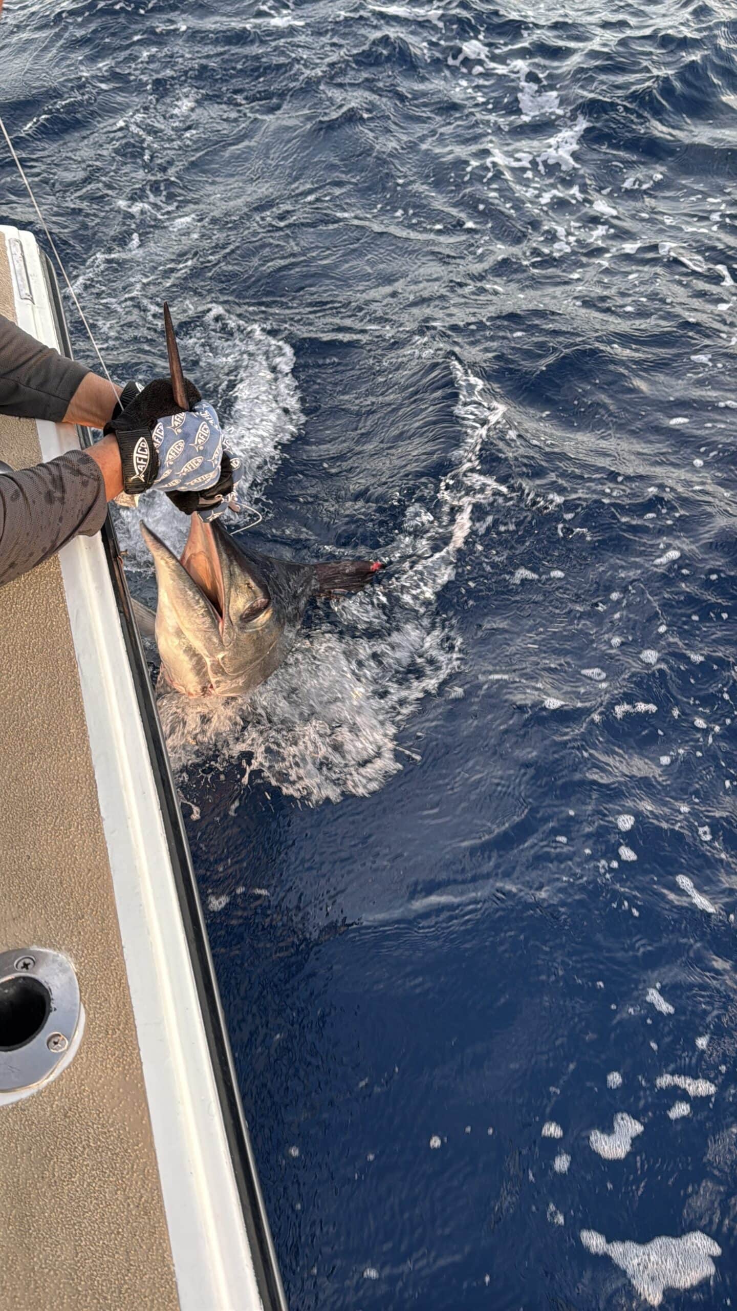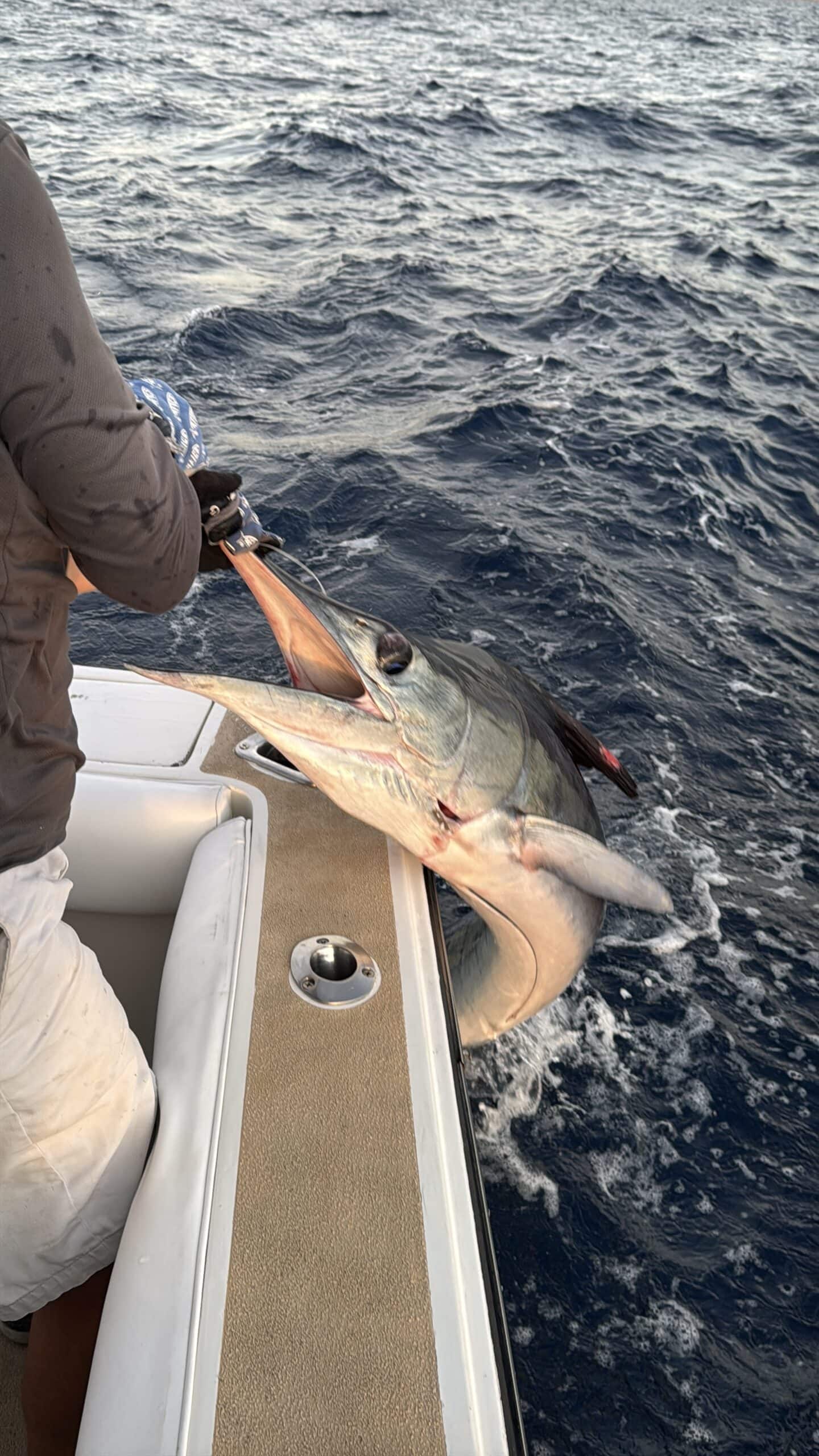 Heute um 6:00 Uhr in der Früh waren wir bereits am Hafen und sind mit einem Hochseefischer Boot hinaus gefahren. Ziel war es, einen großen Marklin zu fangen und wieder freizulassen.