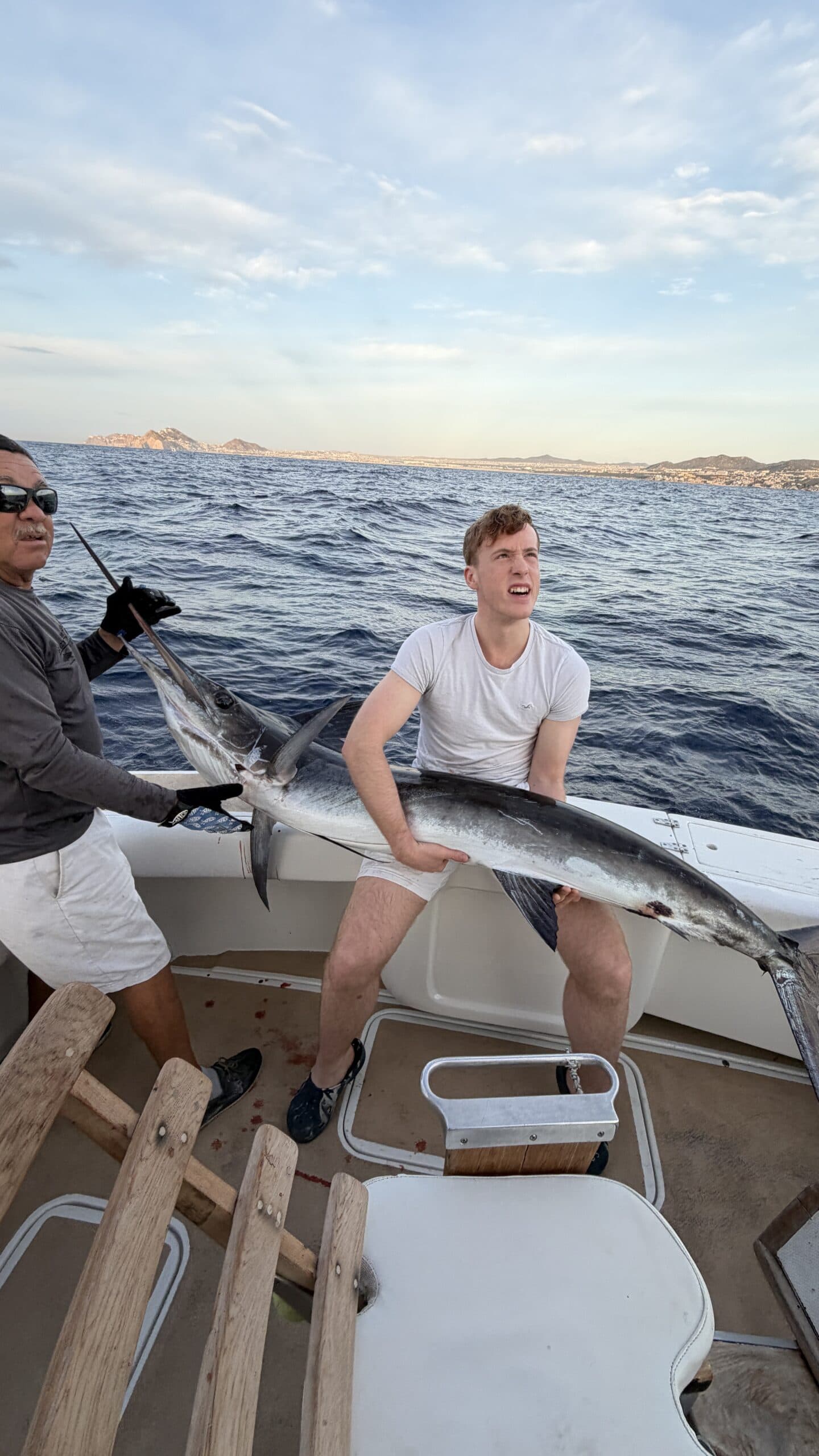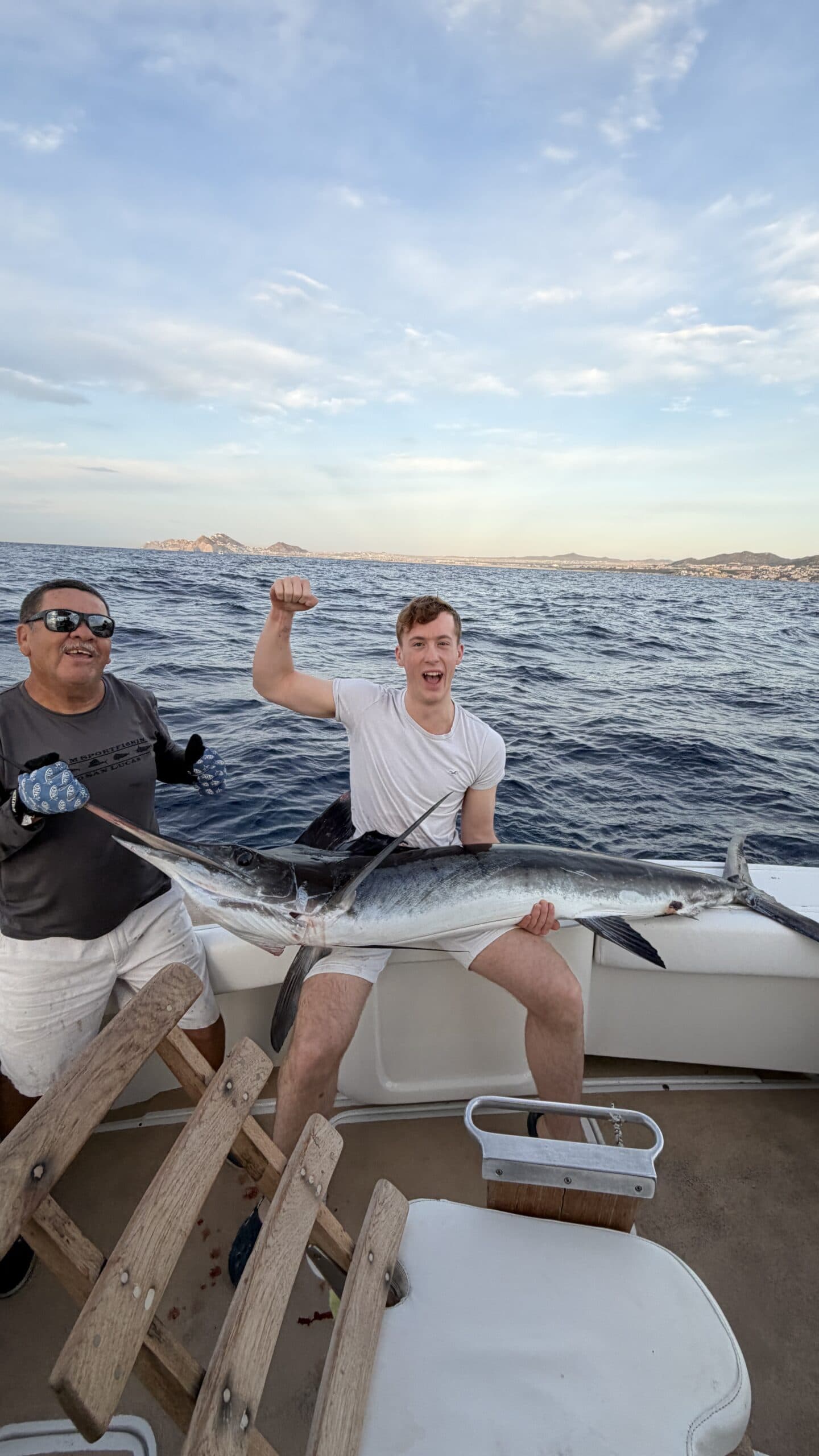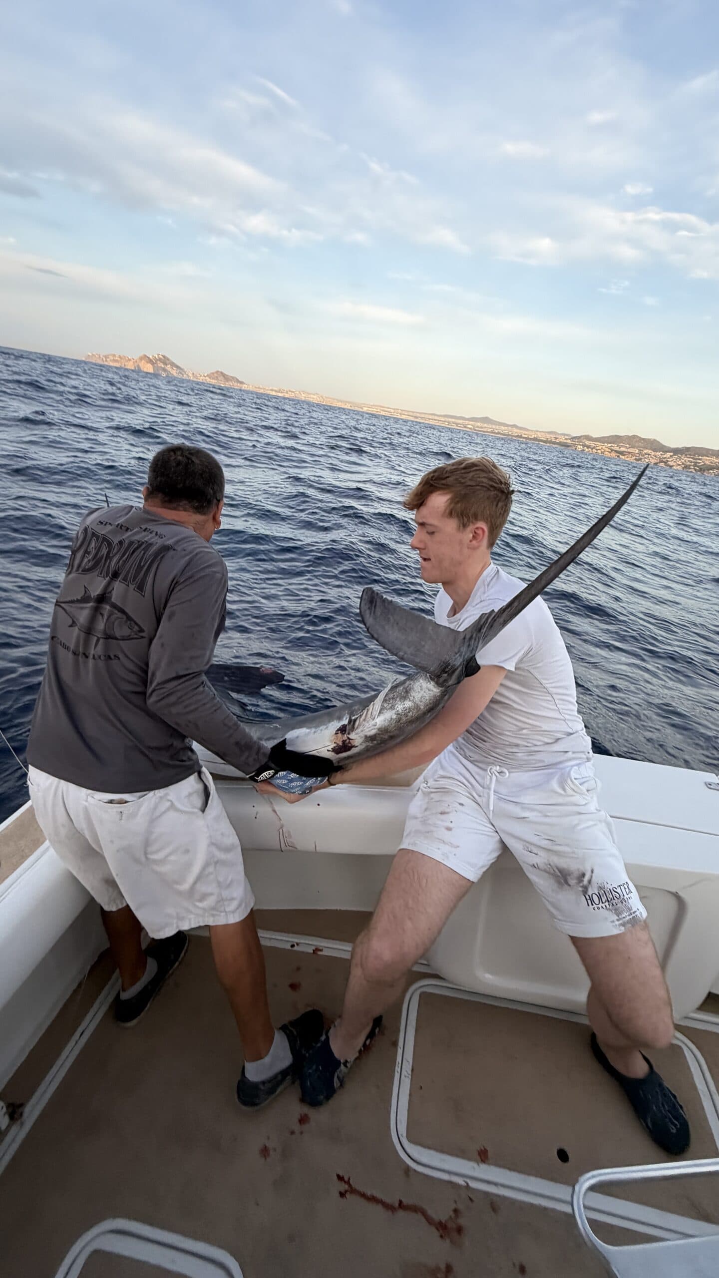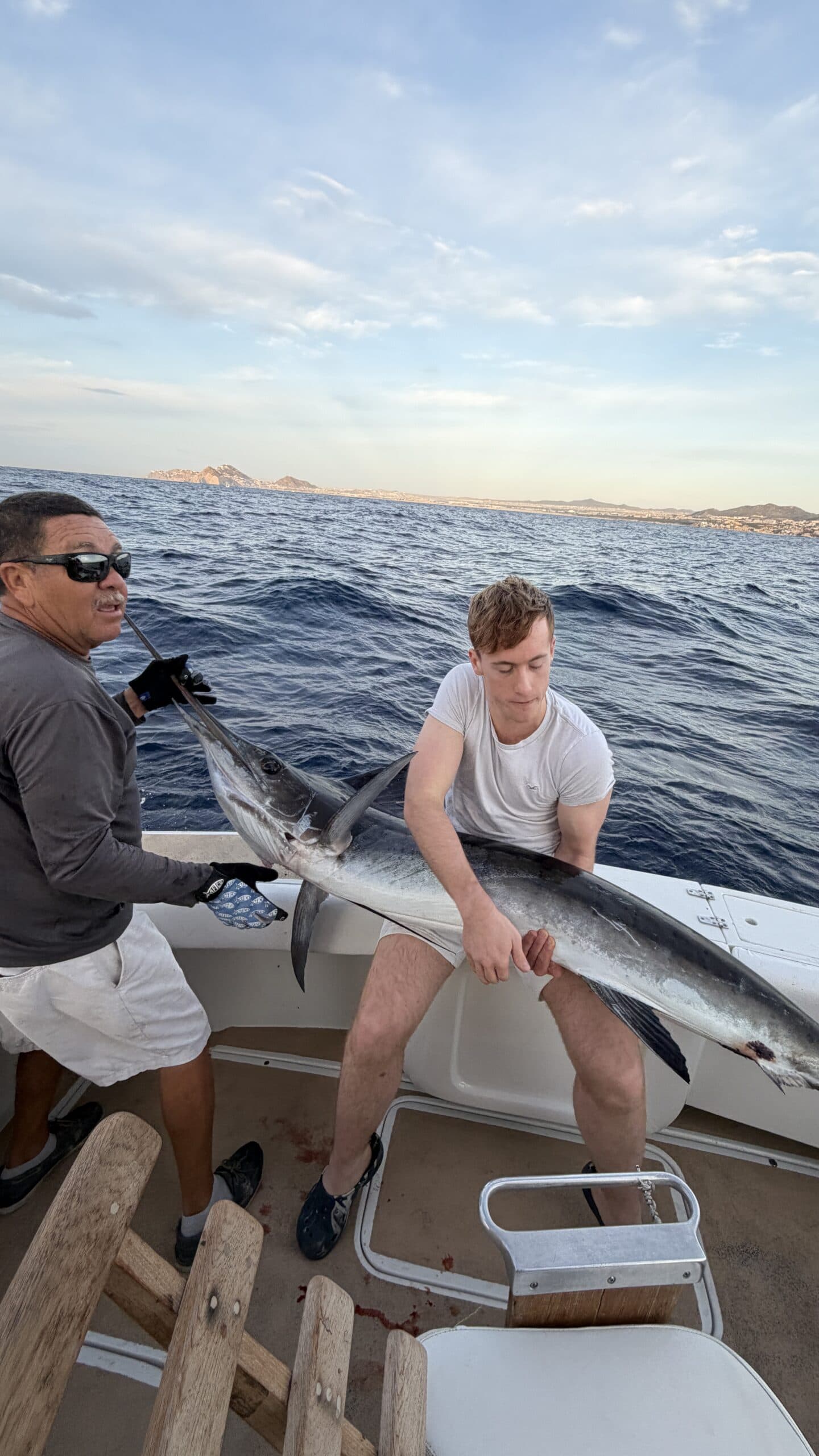 Heute um 6:00 Uhr in der Früh waren wir bereits am Hafen und sind mit einem Hochseefischer Boot hinaus gefahren. Ziel war es, einen großen Marklin zu fangen und wieder freizulassen.