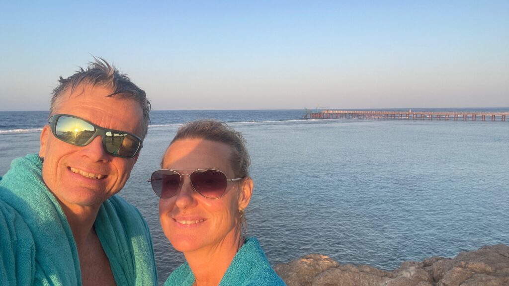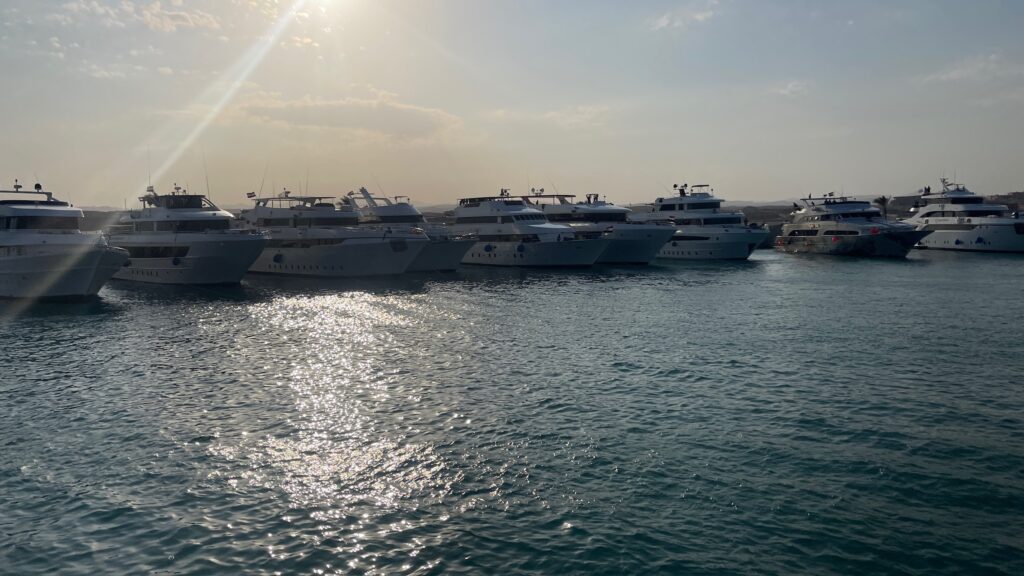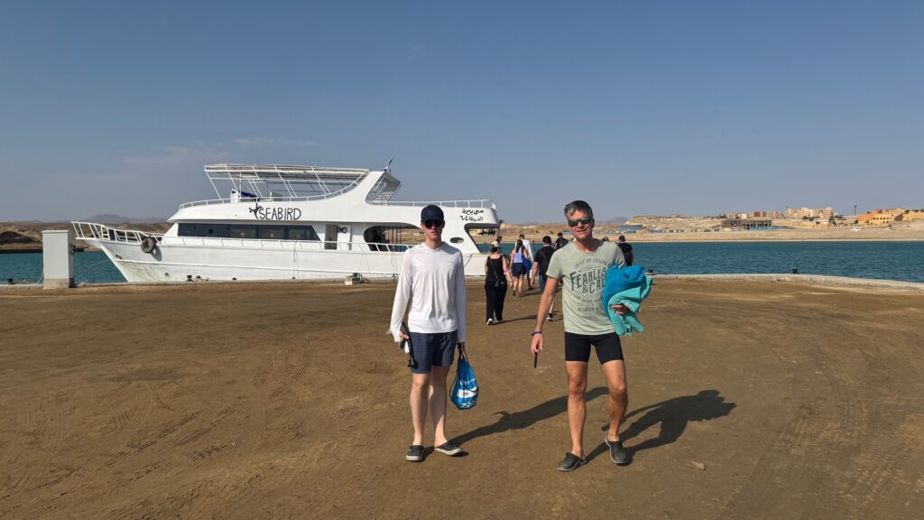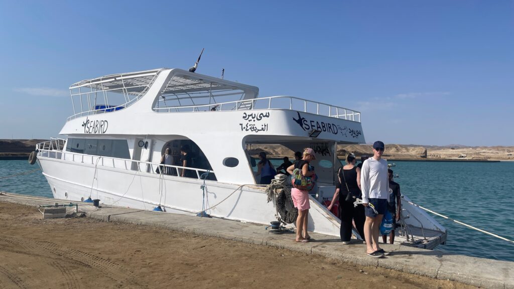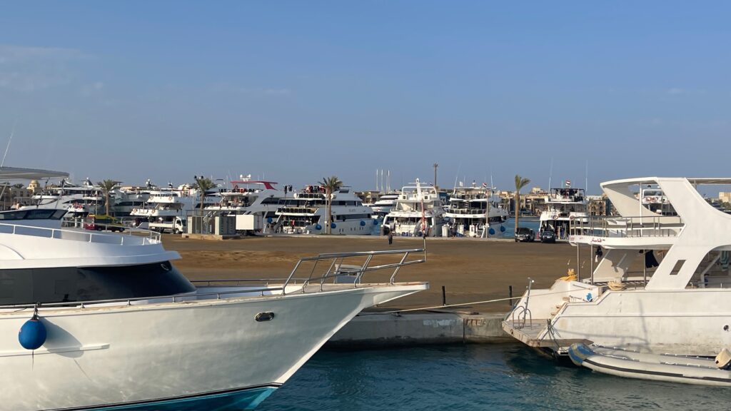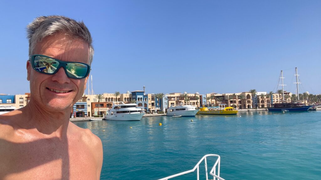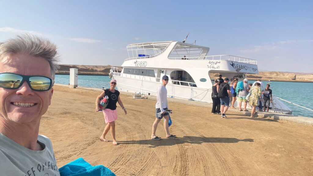 Heute ist schon um 7 Uhr 15 Abfahrt zum Port Ghalib. Glücklicherweise ist hier heute Zeitumstellung und wir haben eine Stunde mehr bekommen und es war defakto erst 8:15 Uhr. Heute wollten wir Seekühe beim Tauchen sehen.