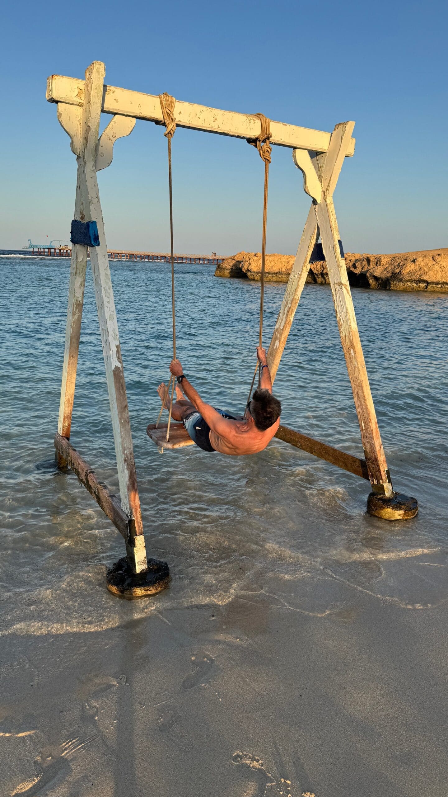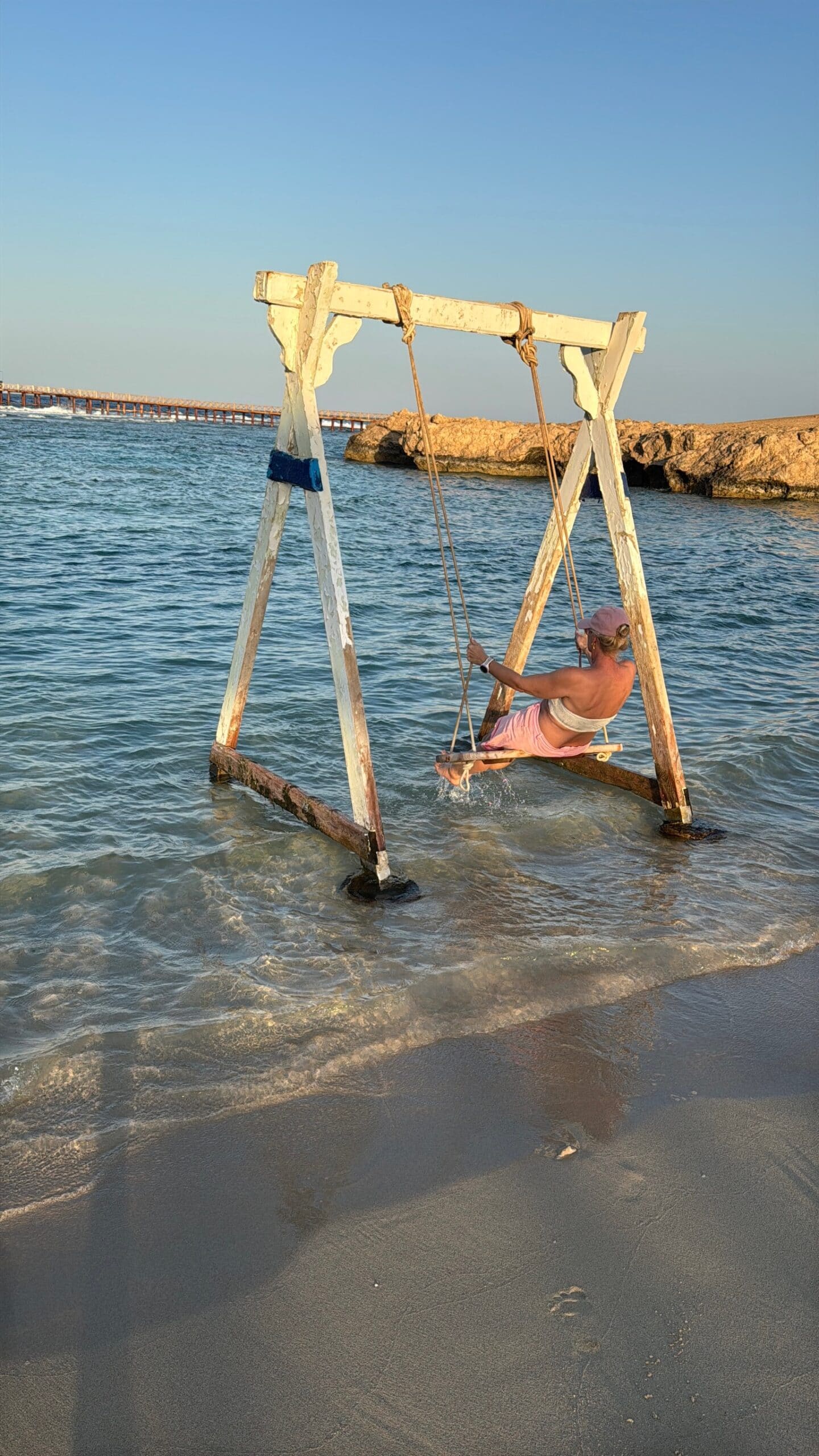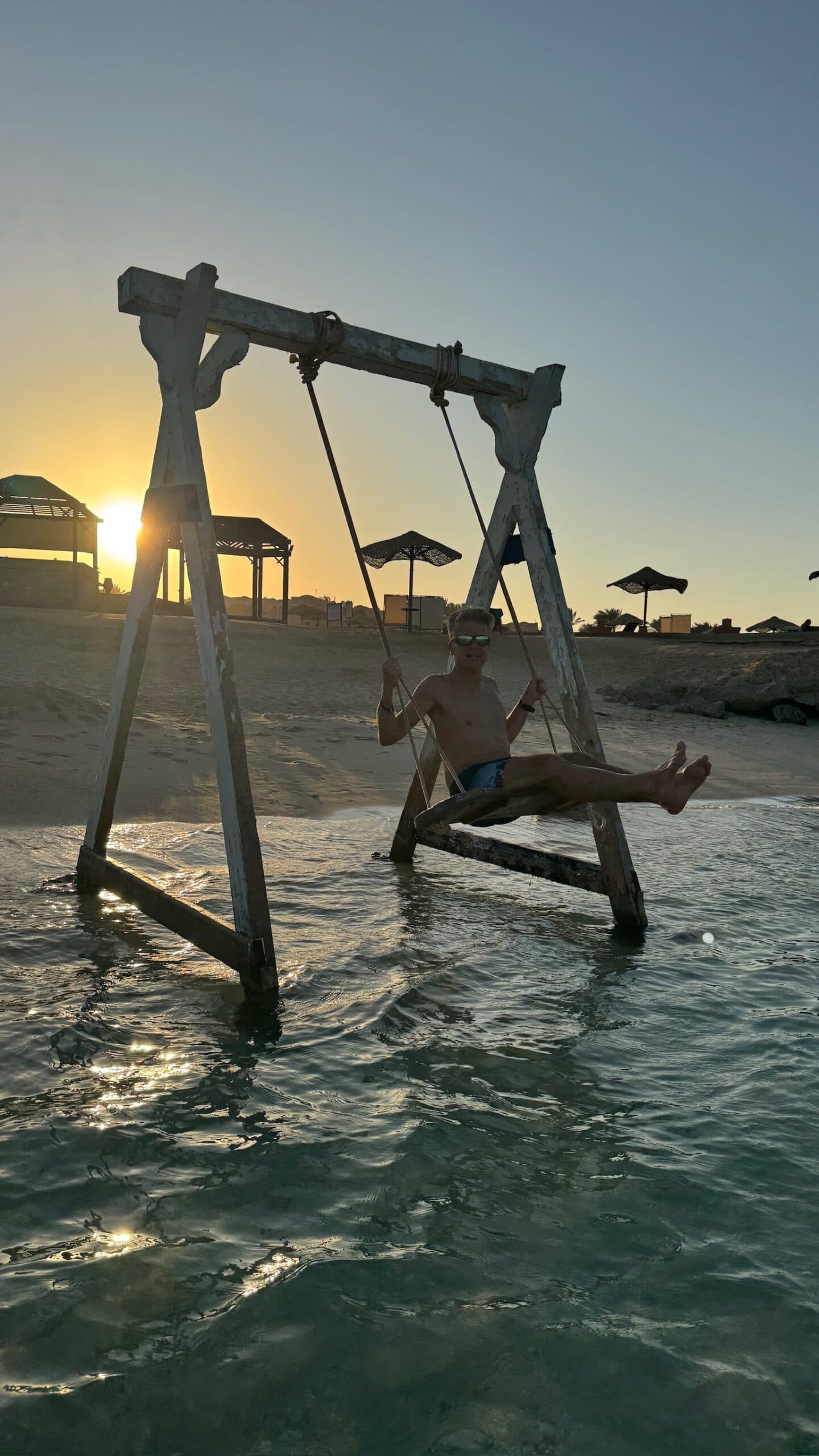 Um 14 Uhr waren wir wieder im Hotel und gingen Mittagessen. Dann legten wir uns an den Strand und Nico in sein Zimmer. Später gingen wir kurz in die Poolaera und dann nochmals an die Beach zum Sonnenuntergang schauen und Schaukeln