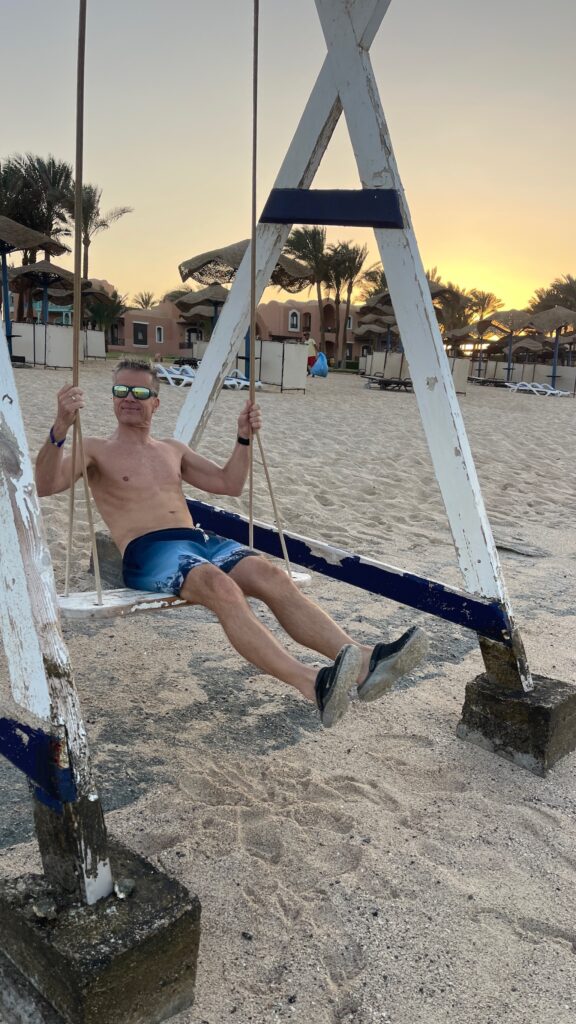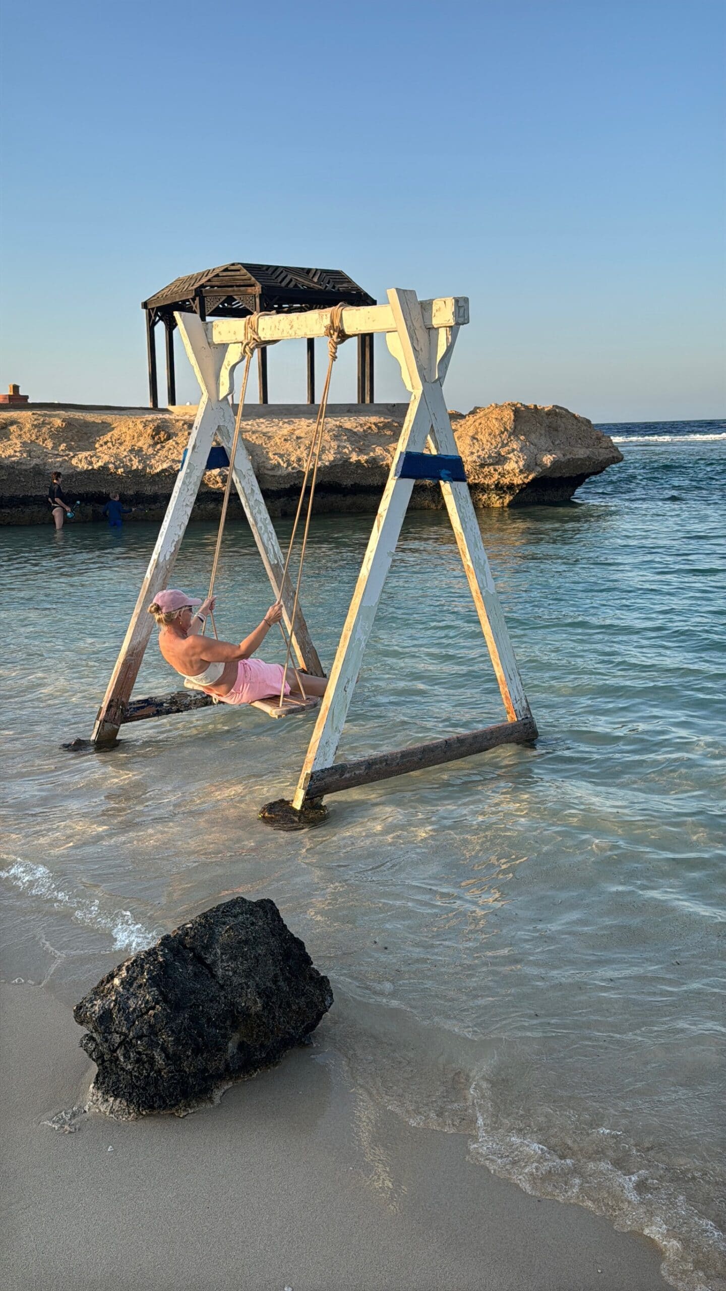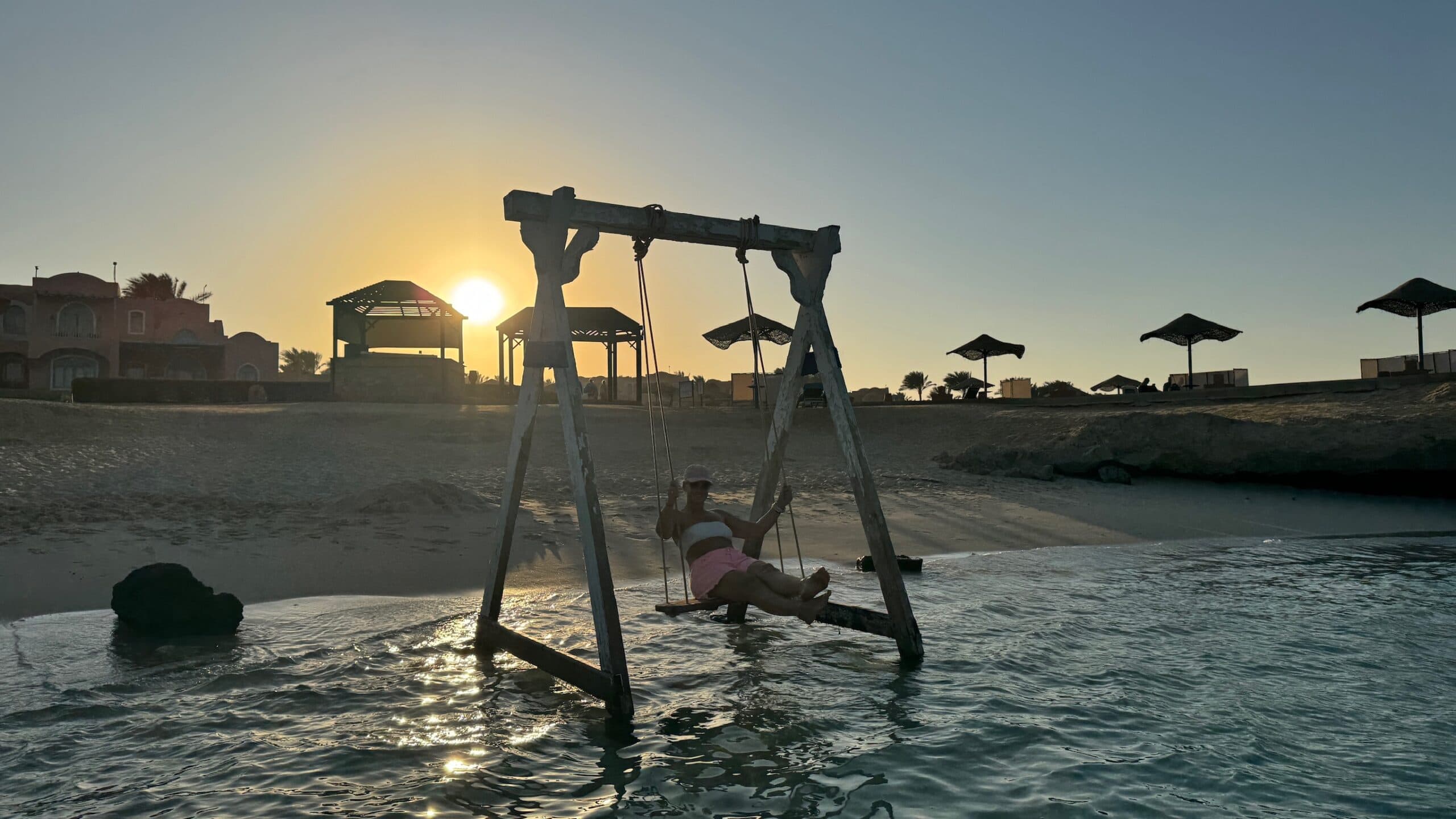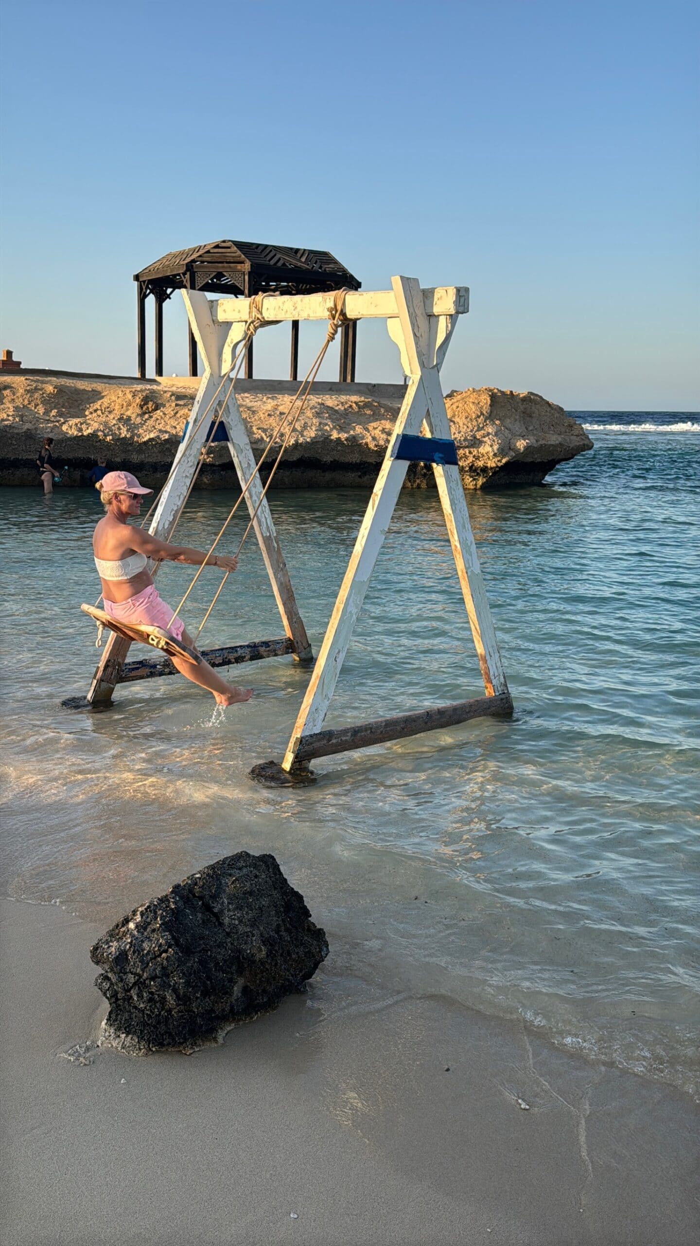 Um 14 Uhr waren wir wieder im Hotel und gingen Mittagessen. Dann legten wir uns an den Strand und Nico in sein Zimmer. Später gingen wir kurz in die Poolaera und dann nochmals an die Beach zum Sonnenuntergang schauen und Schaukeln
