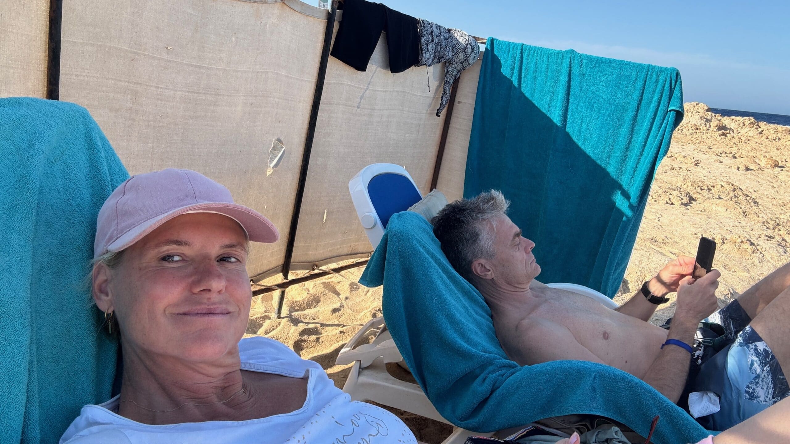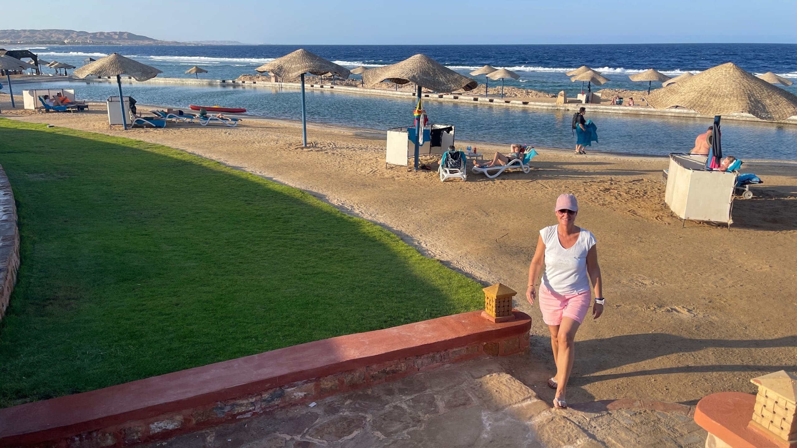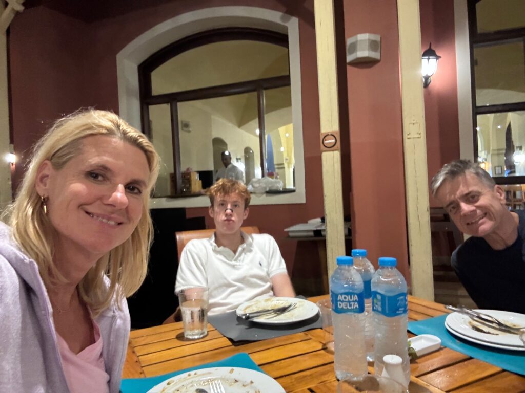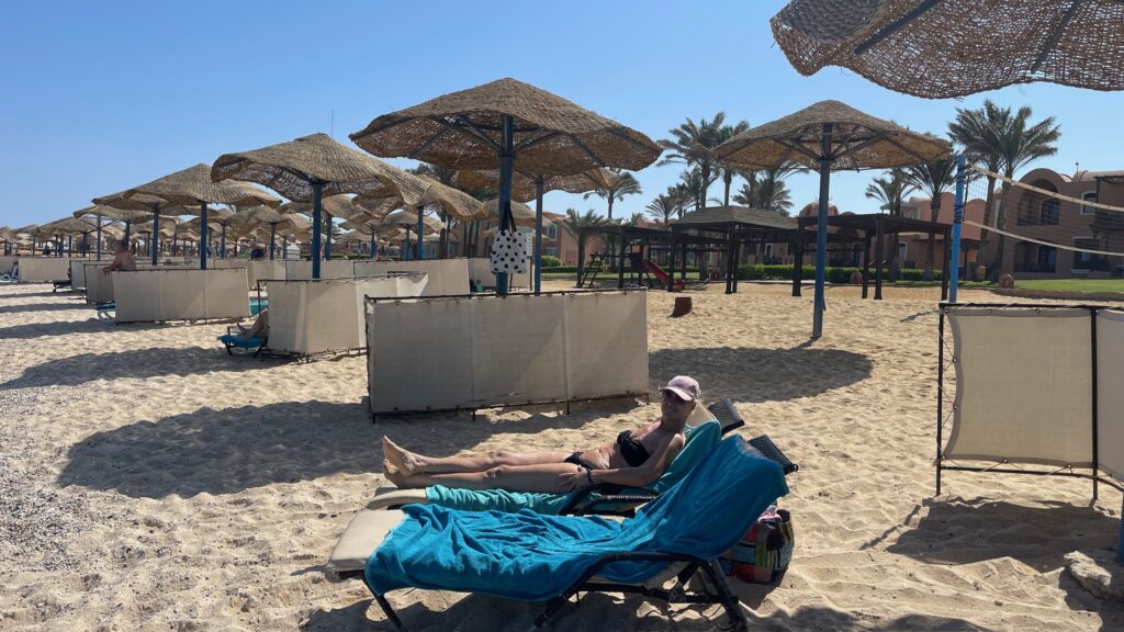 Dann bin ich in unser Zimmer zurückgegangen und mit Birgit um 10:00 Uhr noch einmal frühstücken gegangen. Danach haben wir uns an den Strand gelegt. Um 2:00 Uhr ist Nico zurückgekommen und wir waren gemeinsam Mittagessen.
