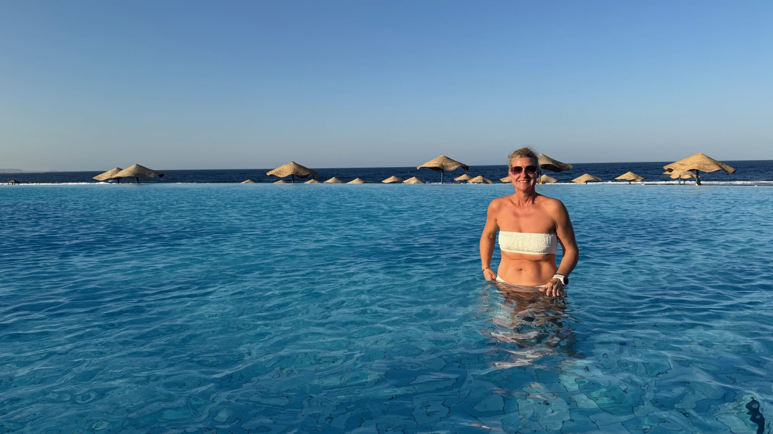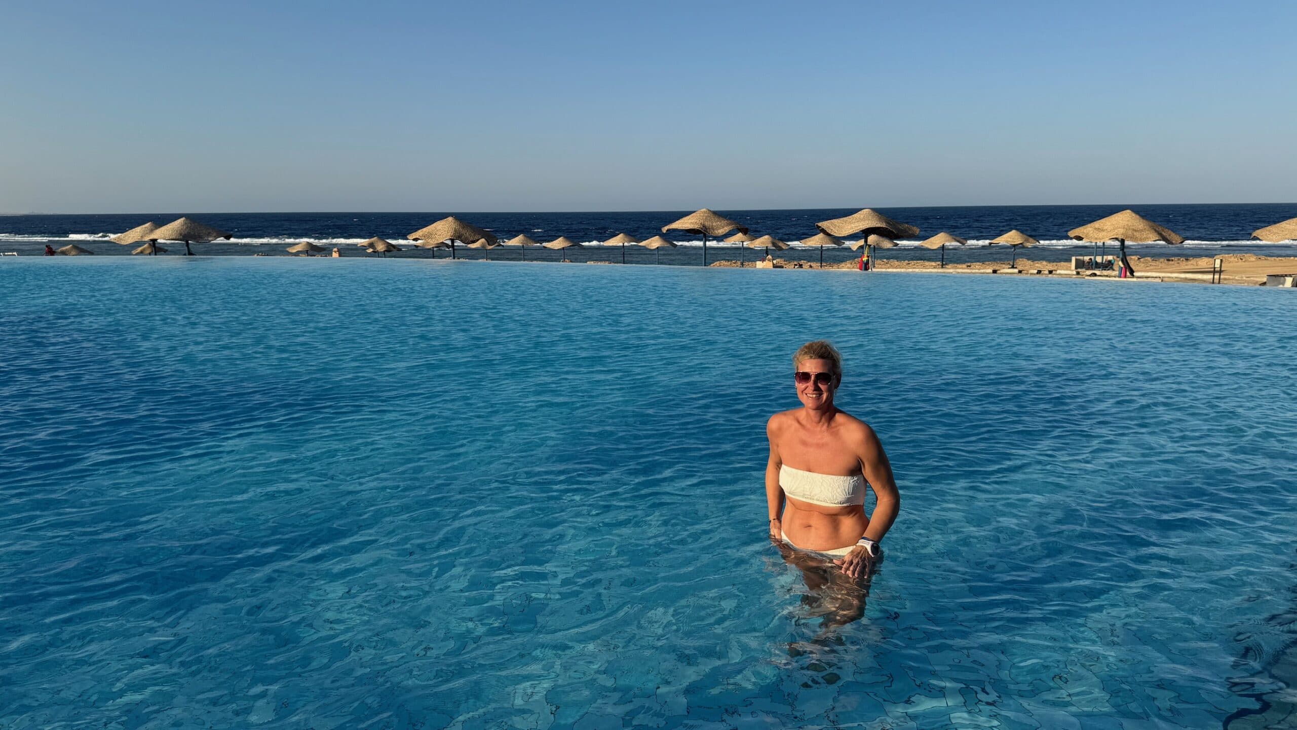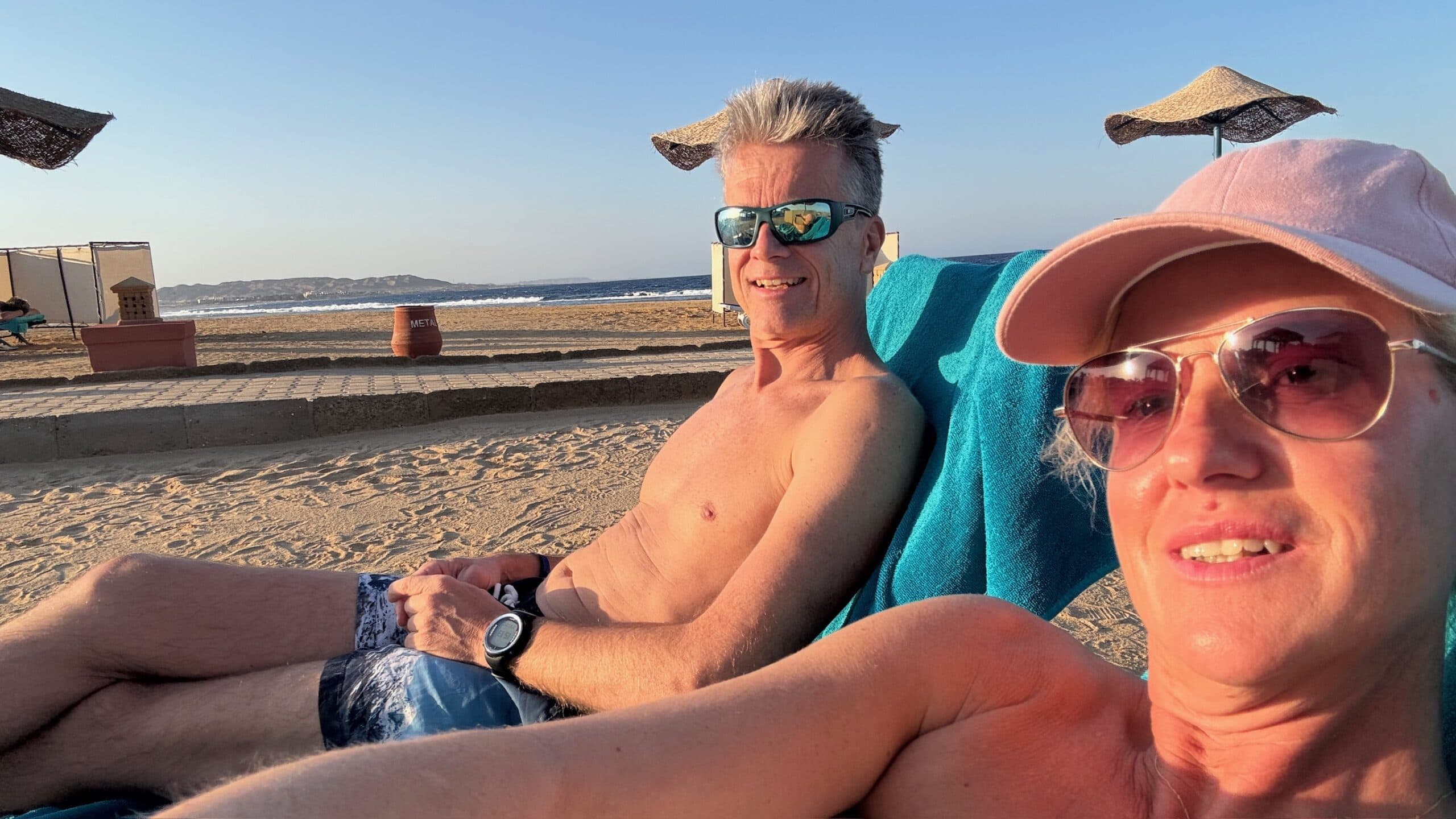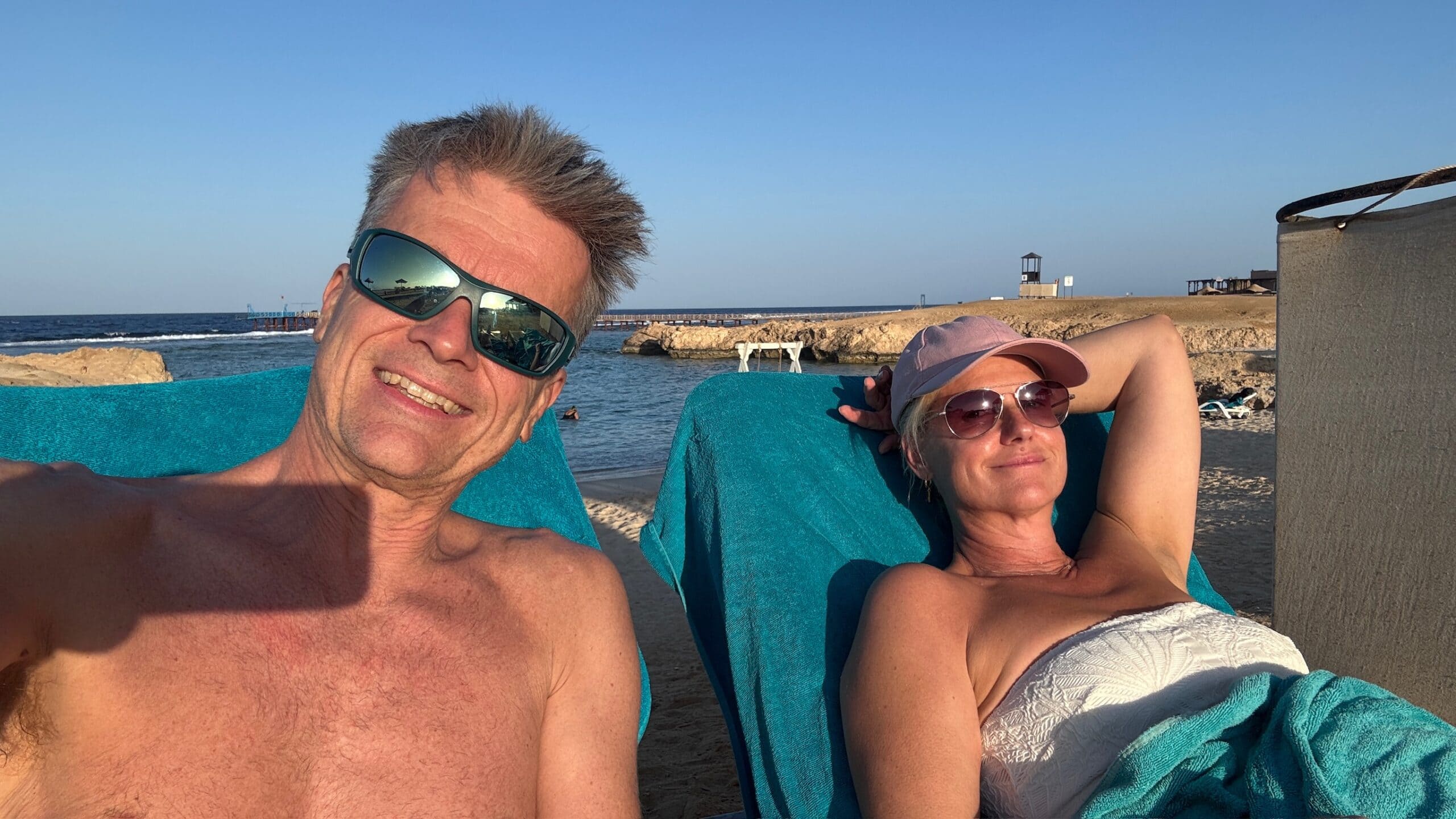 Dann bin ich in unser Zimmer zurückgegangen und mit Birgit um 10:00 Uhr noch einmal frühstücken gegangen. Danach haben wir uns an den Strand gelegt. Um 2:00 Uhr ist Nico zurückgekommen und wir waren gemeinsam Mittagessen.