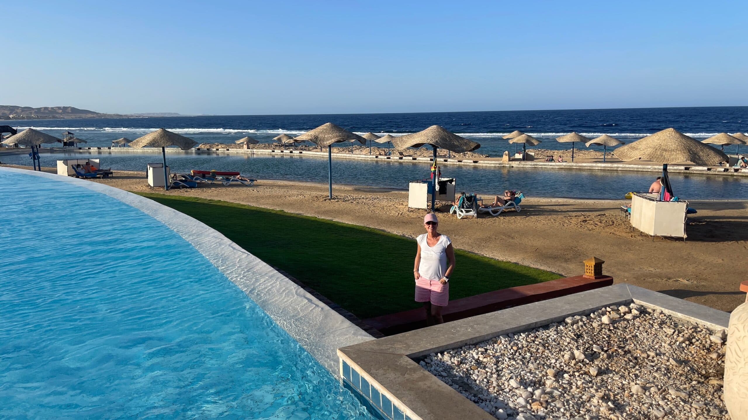 Mit einem Taxi sind wir dann knapp 2 Stunden nach El Quseir zum Radisson Blue Resort gefahren. das liegt neben dem Möcenpick Resort, wo wir ursprünglich sein wollten (schade ist viel besser). Daneben liegt das Flamenco Reaort, wo wir vor über 25 Jahren waren, damals war es neu und wir das 1. Mal am Roten Meer.