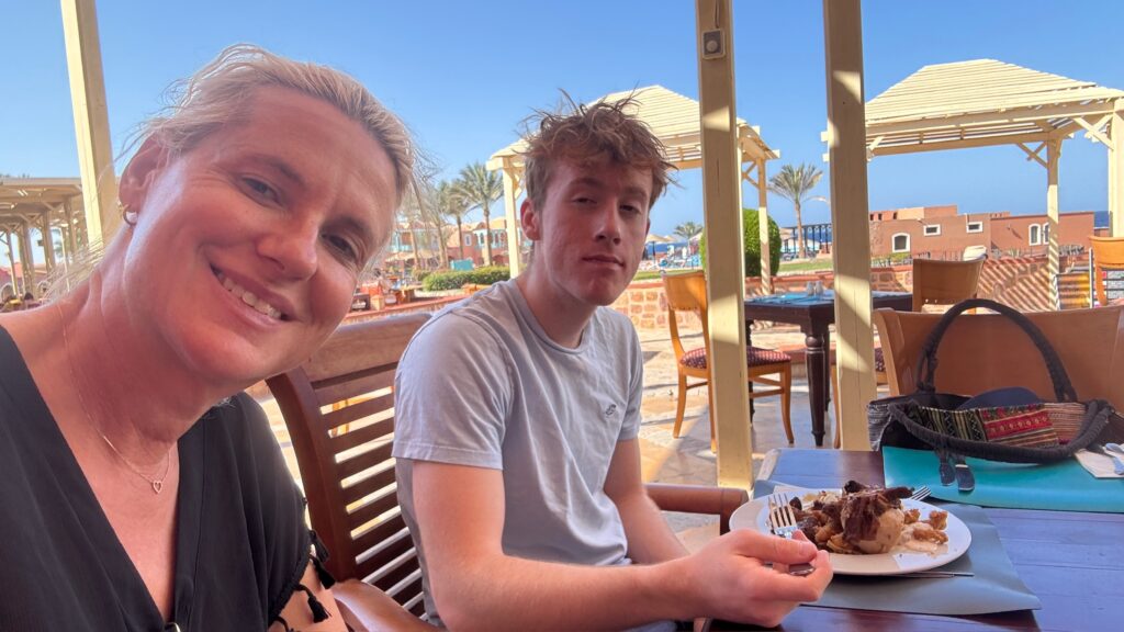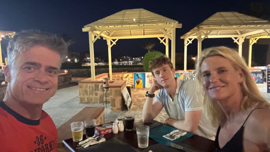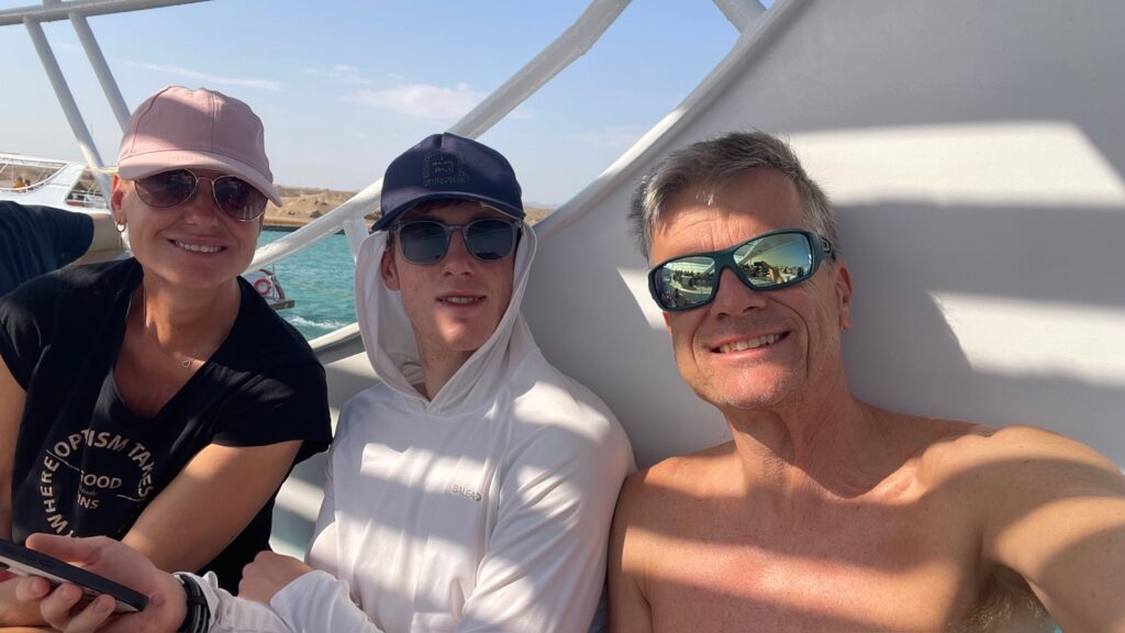 Heute hat uns Luca um 11:20 Uhr zum Flughafen gebracht. Birgit, Nico und ich fliegen 6 Tage nach Ägypten tauchen. Luca bleibt das erste Mal zu Hause und zwar aus 2 Gründen, er hat einige Lehrveranstaltungen und er will auch nicht so viel tauchen.