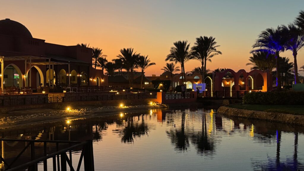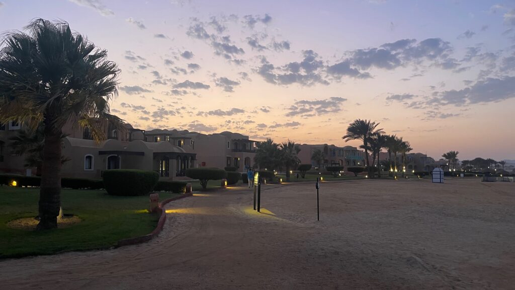 Abflug war um 14:30 Uhr und knapp 4 Stunden später sind wir in Hurghada mit Air Cairo gelandet wo es mit 2 Stunden Zeitverschiebung schon 20:30 Uhr war.