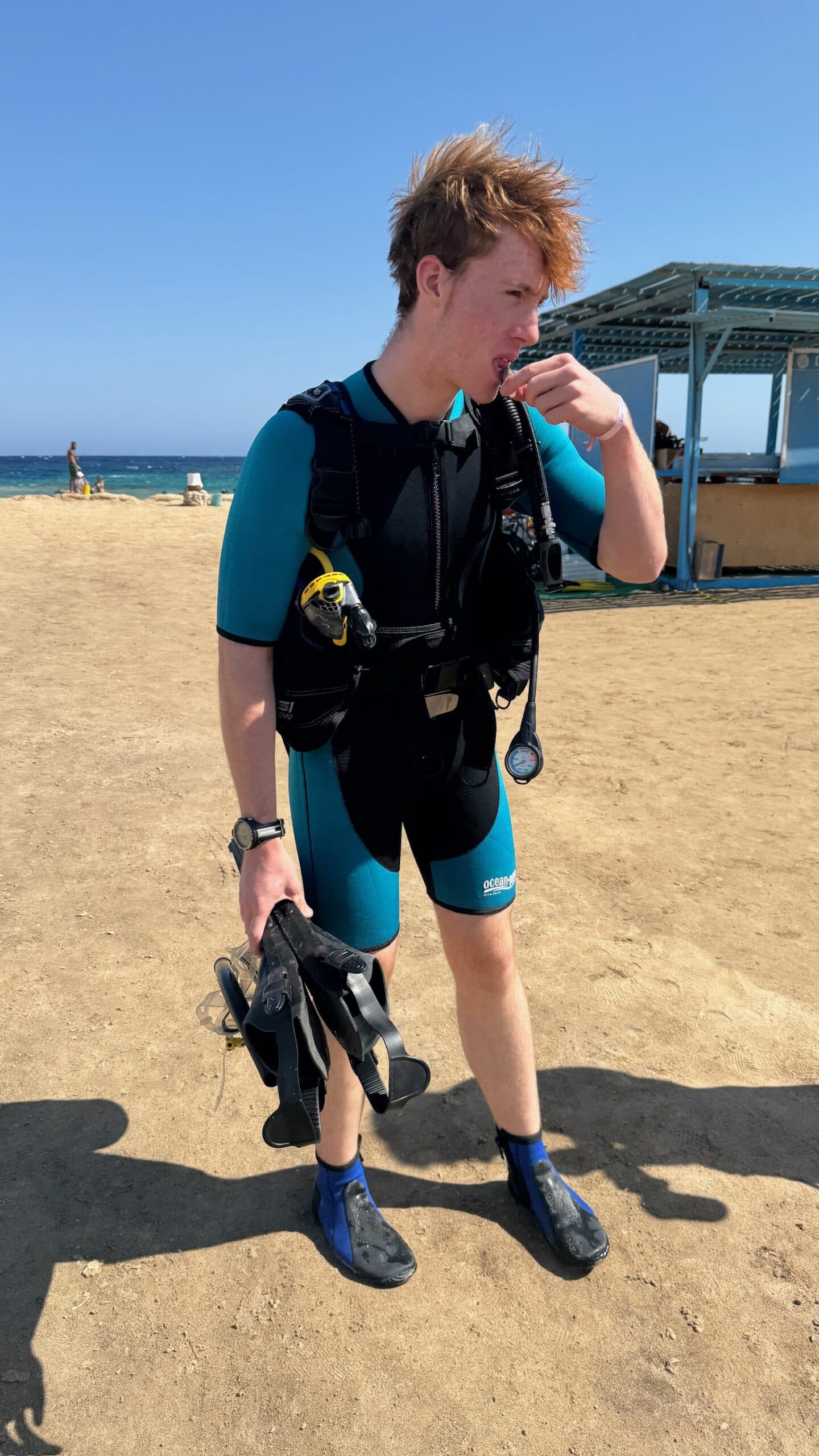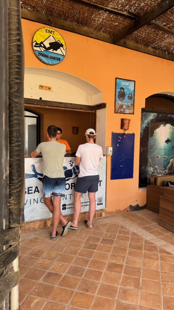 Danach sind wir zum Dive Center gegangen und haben eingecheckt und paperwork gemacht. Nico macht hier den Rescue Diver.