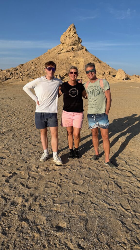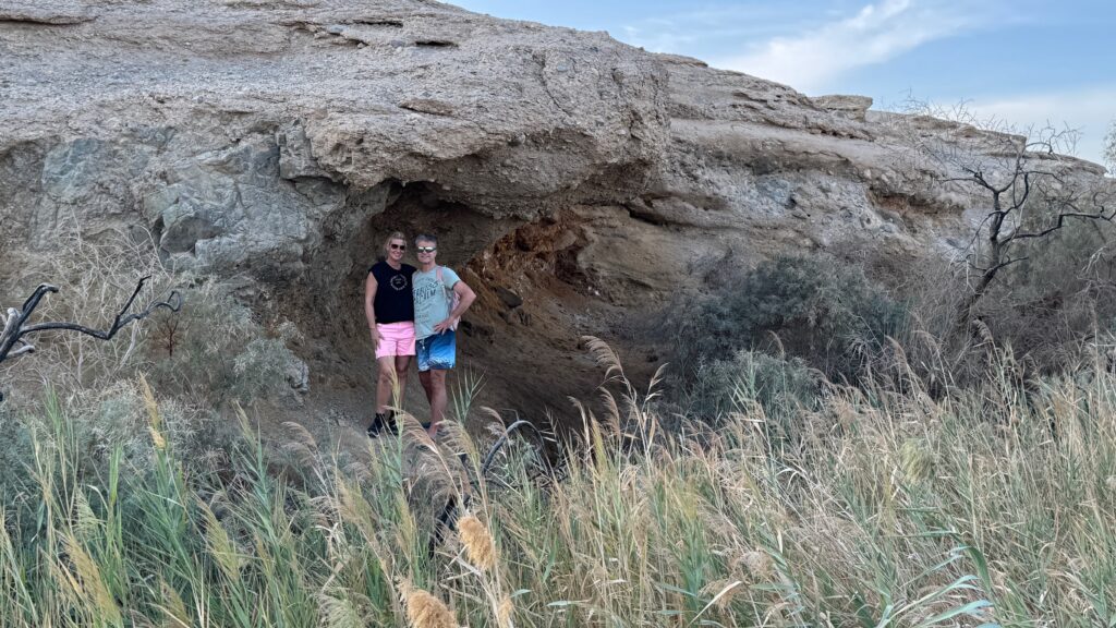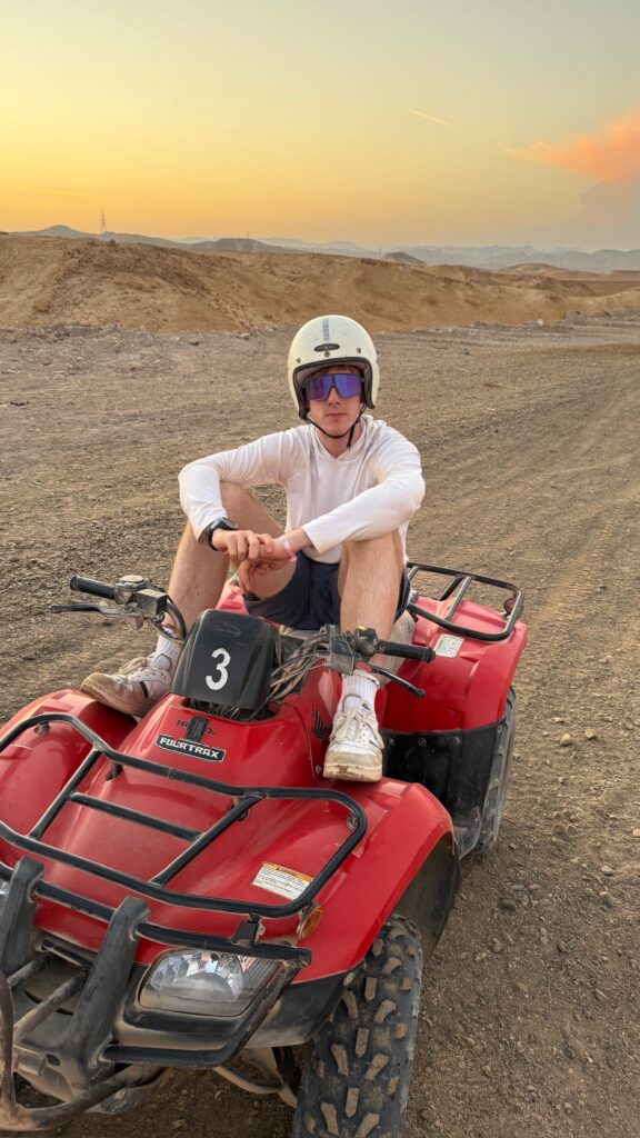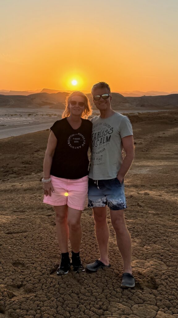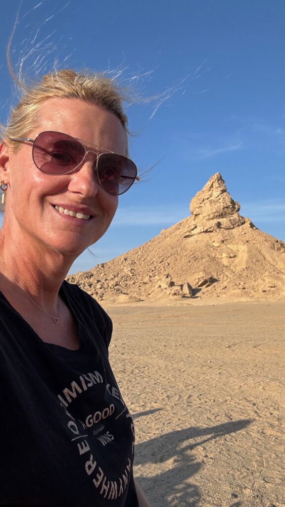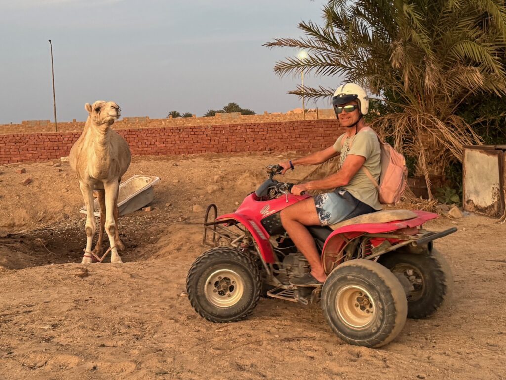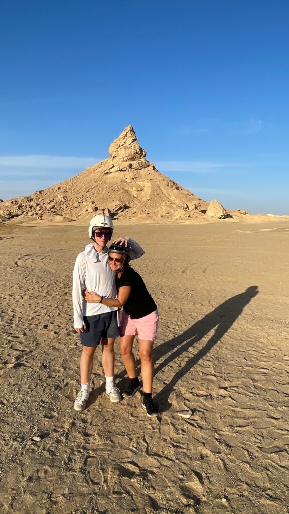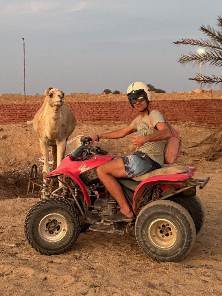 Um 15 Uhr gingen wir dann Quadfahren. Das war recht lustig. Wir sind bis zu 65 KMH gefahren durch die Steinwüste des Hinterland. Birgit hat voll mit dem Tempo mitgehalten. Beim ägyptischem Matterhorn haben wir einen Photostop gemacht. Das war witzig. Den nächsten Stop Haben wir bei einer Oase gemacht, der im Winter Wasser hat und recht viel Salzgehalt hat.