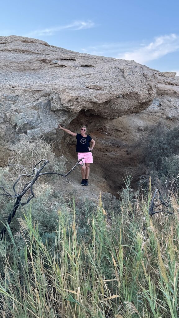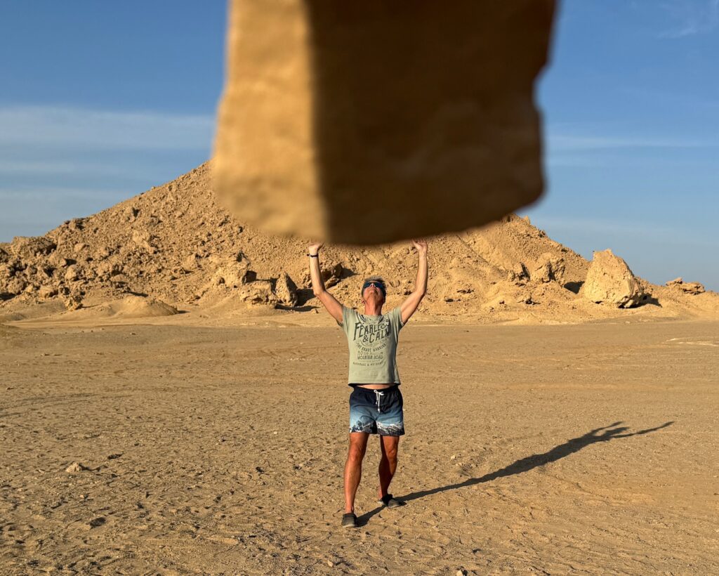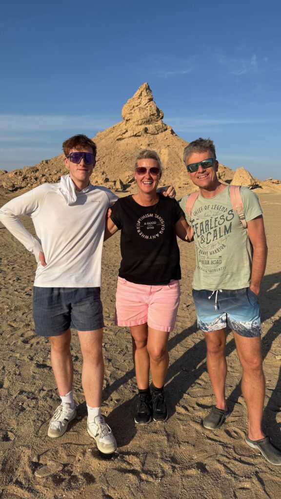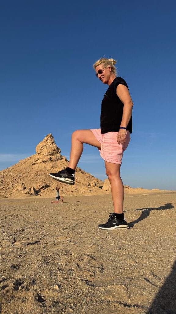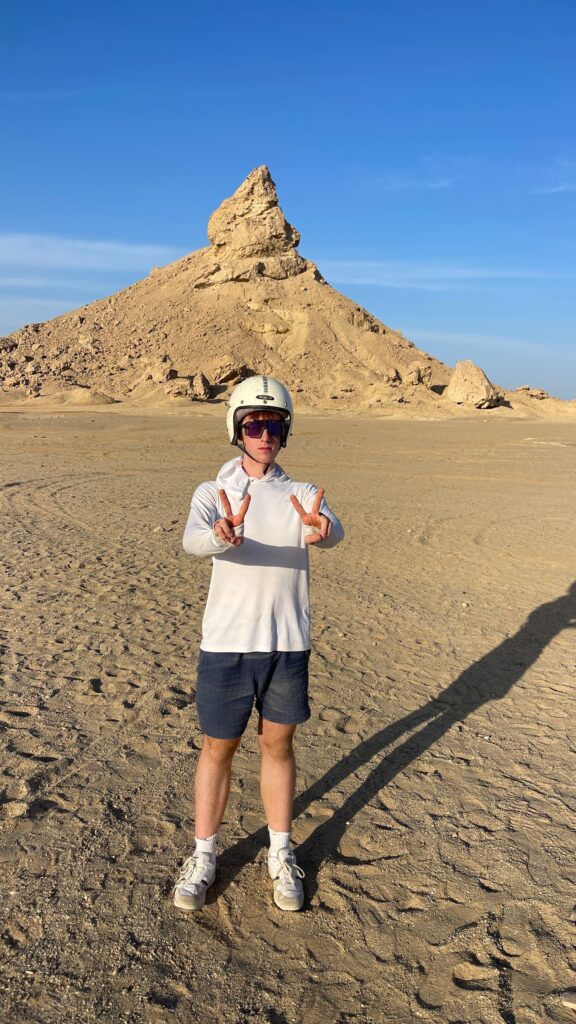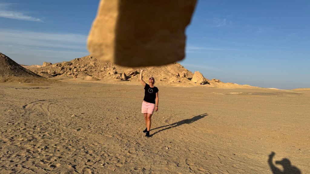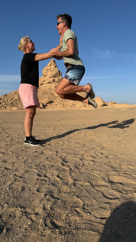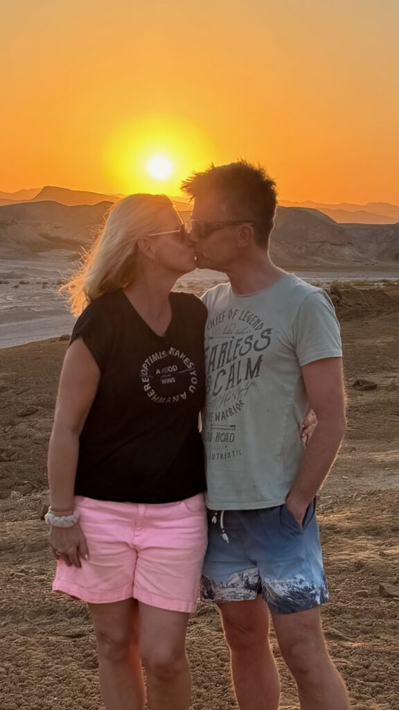 Um 15 Uhr gingen wir dann Quadfahren. Das war recht lustig. Wir sind bis zu 65 KMH gefahren durch die Steinwüste des Hinterland. Birgit hat voll mit dem Tempo mitgehalten. Beim ägyptischem Matterhorn haben wir einen Photostop gemacht. Das war witzig. Den nächsten Stop Haben wir bei einer Oase gemacht, der im Winter Wasser hat und recht viel Salzgehalt hat.