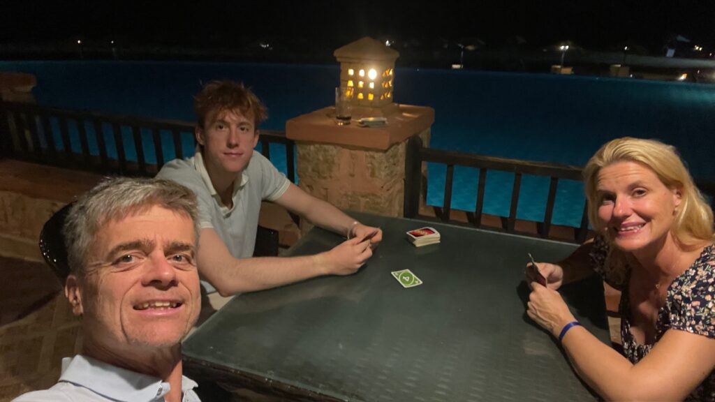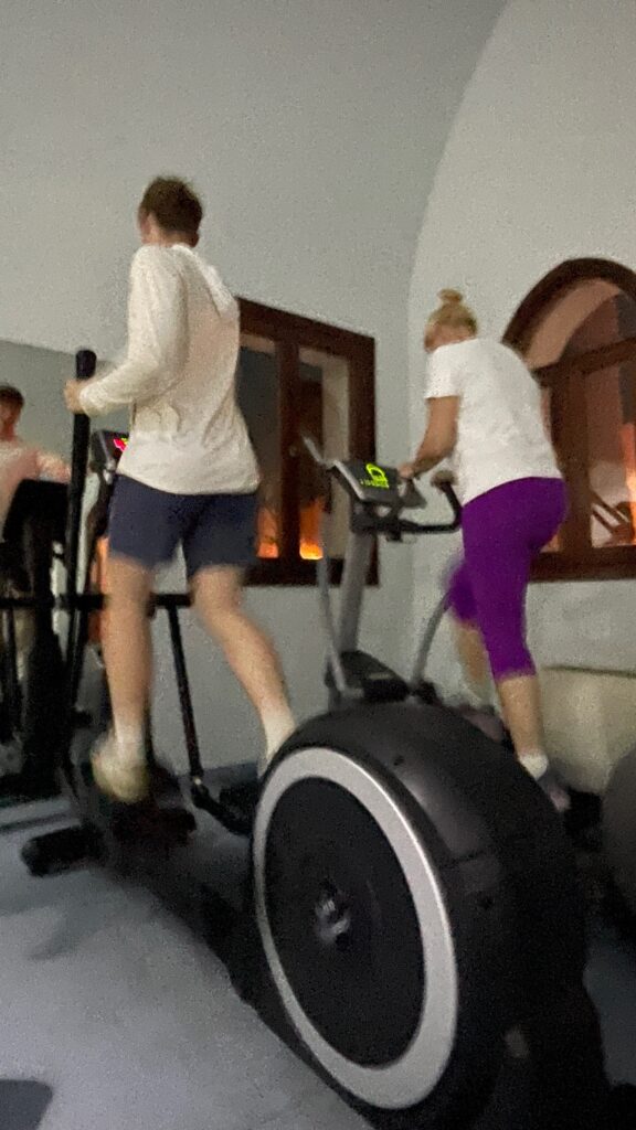 Nach dem Quadfahren waren wir im Fitnessstudio und haben ein bisschen Workout betrieben. Heute haben wir vor dem Abendessen noch UNO gespielt