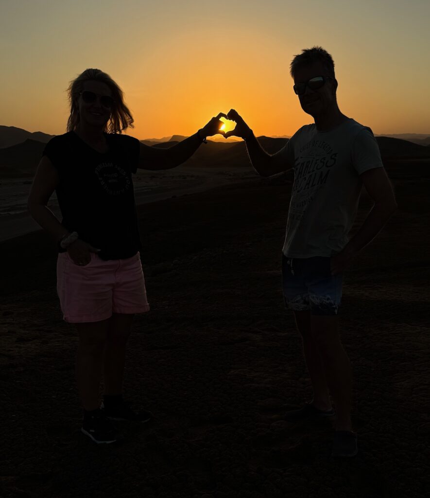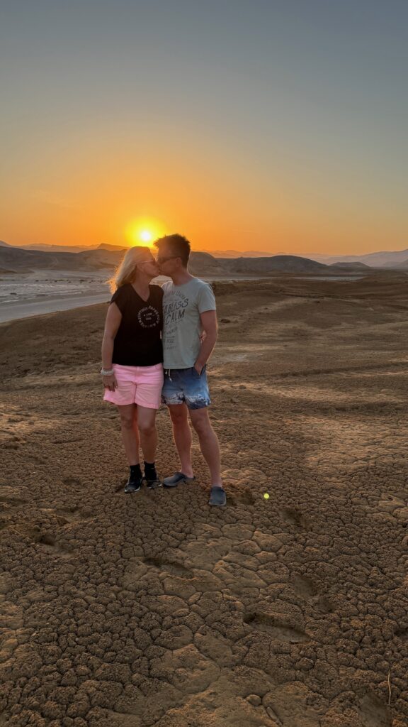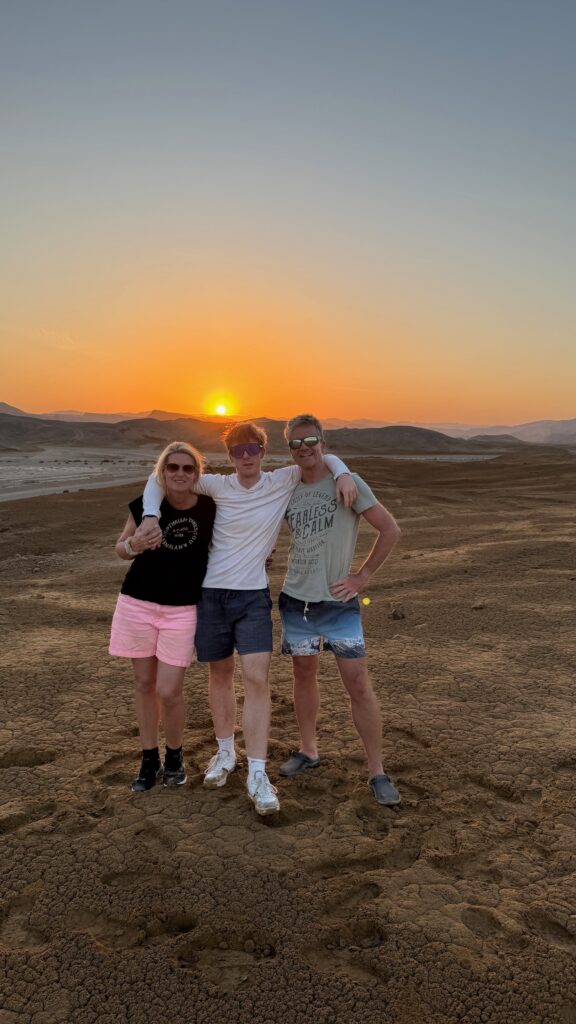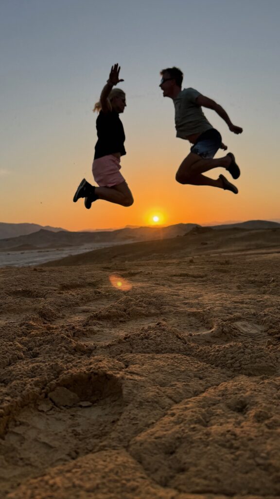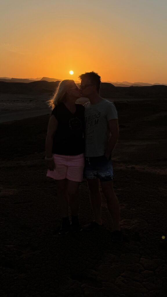 Der nächste Stop war beim Sonnenuntergang und da haben wir ganz nette Fotos gemacht. Da ein Quad kaputtgegangen ist, haben wir drei abwechselnd unseren Guide geschoben. Das war auch recht lustig.