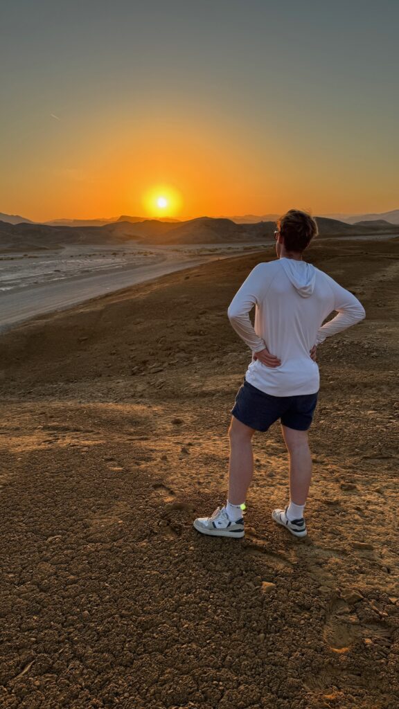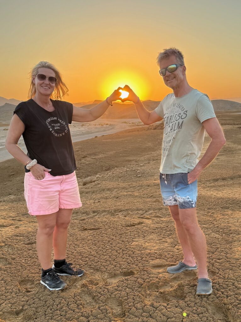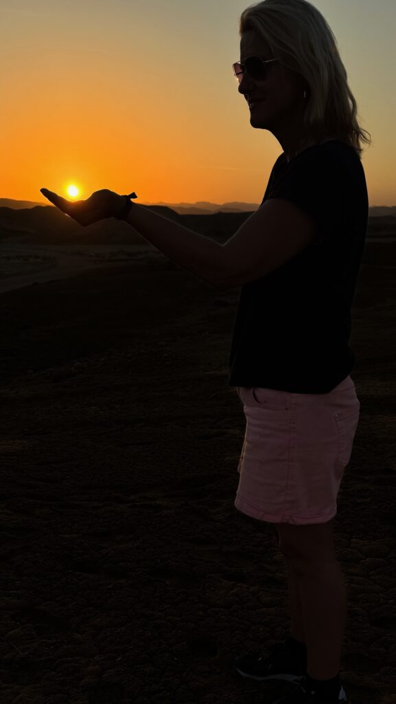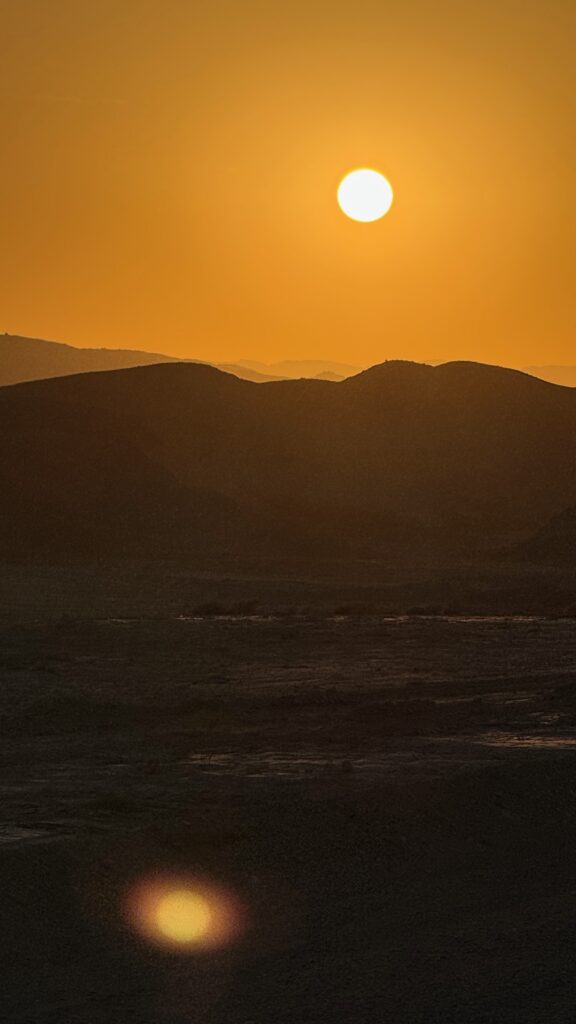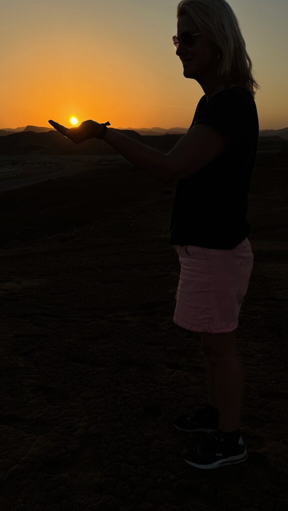 Der nächste Stop war beim Sonnenuntergang und da haben wir ganz nette Fotos gemacht. Da ein Quad kaputtgegangen ist, haben wir drei abwechselnd unseren Guide geschoben. Das war auch recht lustig.