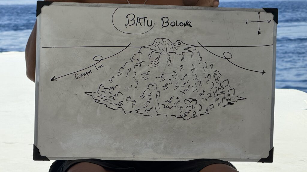 Heute haben wir zwei Durchgänge am Vormittag wieder mit Beginn 7:45 UhrBeginn beim Tauchboot. Heute haben wir einen Tauchgang in Batu Balong, auch sehr berühmt.
