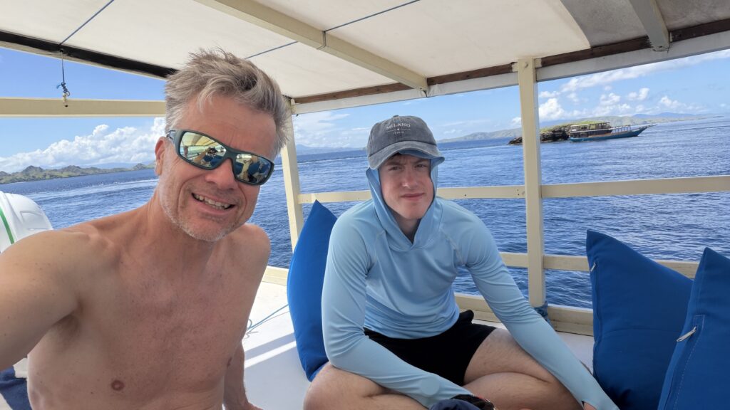 Nächster Aufenthalt war der Besuch von Komodo Dragons / Warane auf der großen Komodo Insel, das Highlight hier im Nationalpark. Grundsätzlich sind diese Dragons gefährlich, da sie ein Gift beim Beißen abgeben und man dadurch schnell umkommt. Mit einem Ranger sind wir zweieinhalb Kilometer eine Runde gegangen und haben einige Warane / Dragons gesehen. Er hat uns einiges erklärt und wir konnten tolle Fotos machen. Es hat uns sehr gut gefallen. Am Ende der Runde, haben wir am Strand Mittagessen gehabt und haben beim Mittagessen auch Dragons gesehen, die das Essen gerochen haben. Der Aufenthalt hier war sehr besonders.