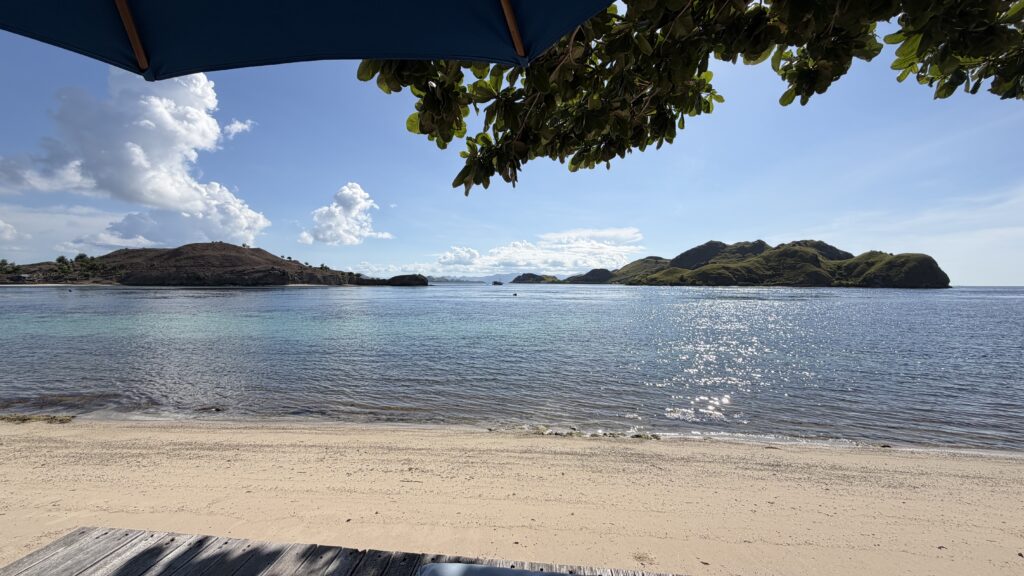 Padar Island ist eine von zahlreichen Inseln mit Hügeln. Hier geht man 880 Treppen (170 Höhenmeter) einen Hügel hinauf (PETA Jalur Trekking Wisata auf Pulau Padar). Es ist zwar erst 8:30 Uhr aber bereits sehr heiß, und mit uns geht eine Schlange an Touristen den Hügel hinauf. Während dem Aufstieg und von oben hat man unglaublich dolle Ausblicke und viele Instagramspots auf die Umgebung. Nach über 1 Stunde waren wir wieder zurück