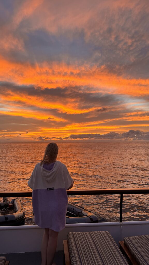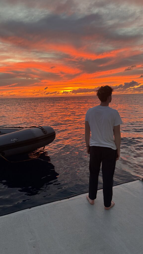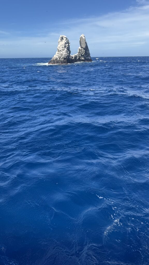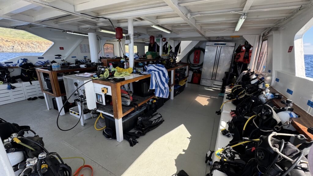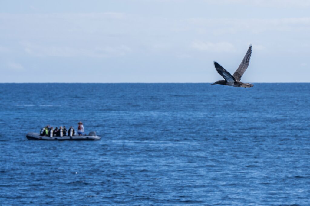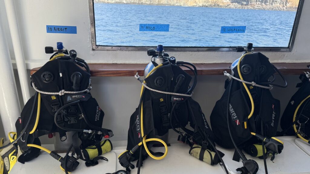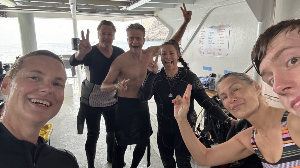 Wir sind also mitten im Ozean ohne wirklichen Schutz vor einem Festland. Aus diesem Grund ist es immer besonders herausfordernd dort zu tauchen, da stets ein starker Wind weht und stets auch ein hoher Wellengang besteht.