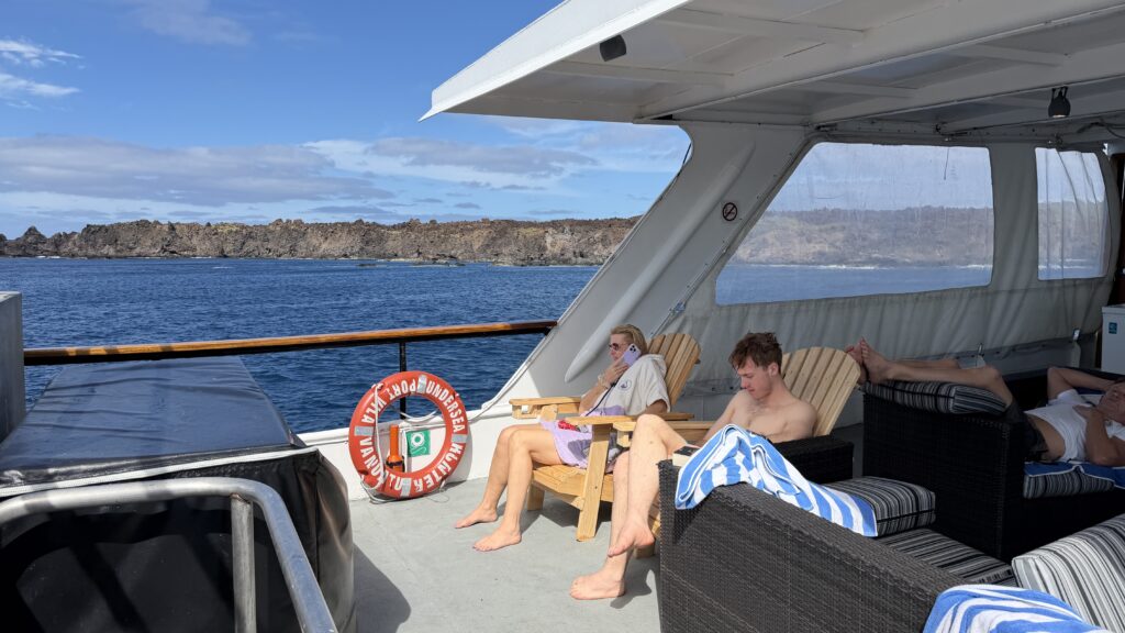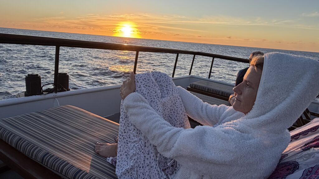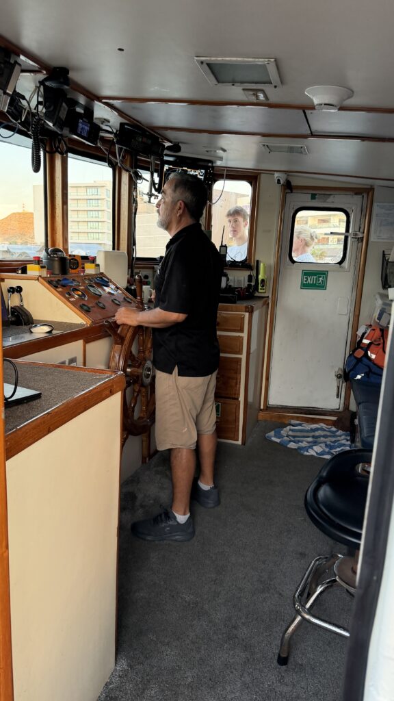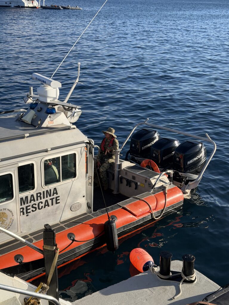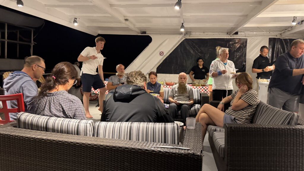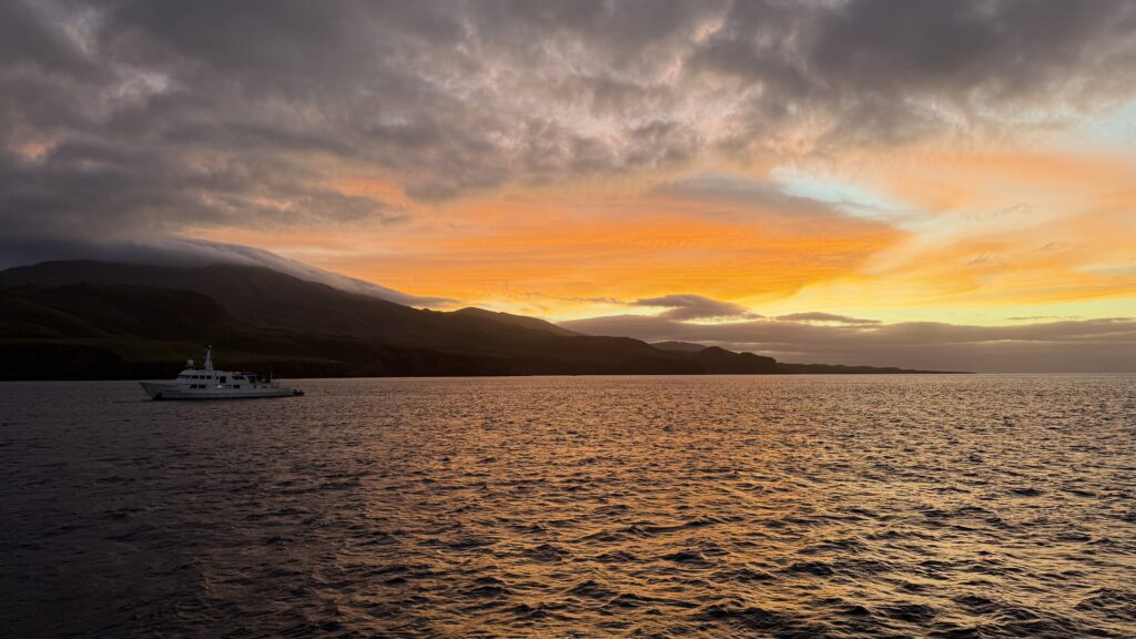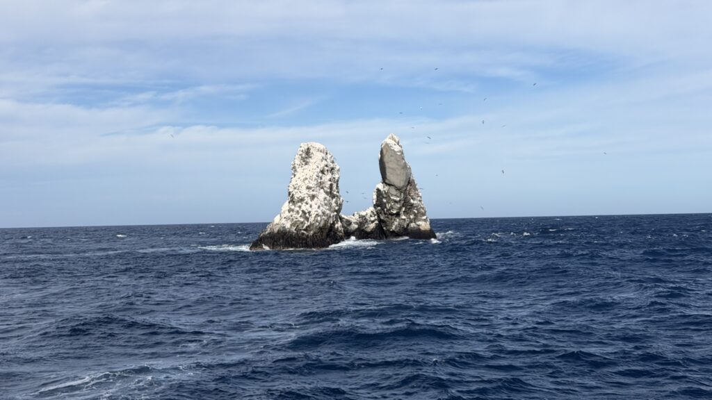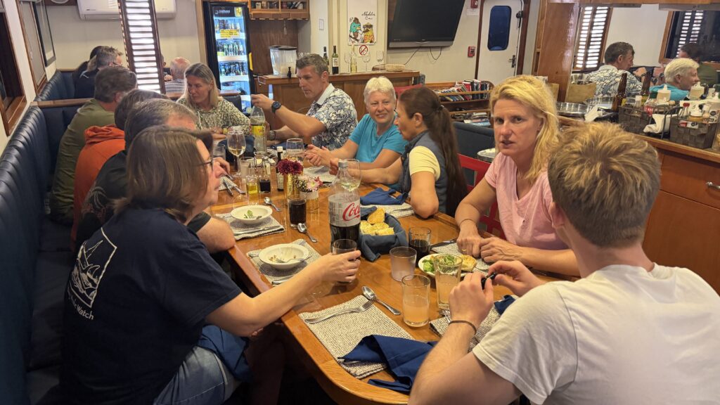 Das ein und aussteigen vom Schiff auf das Skiff hier ist eine weitere Herausforderung. Da heute nach dem dritten Dorf und die Wellen immer höher wurden, mussten wir den vierten Durchgang streichen bereits gegen 15:00 Uhr zur nächsten Insel, nun nach Socorro, wiederum über 10 Stunden.