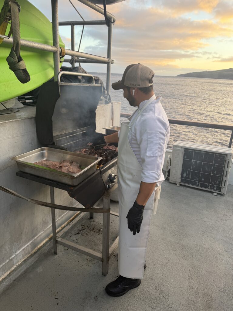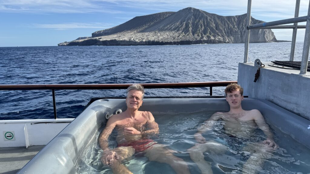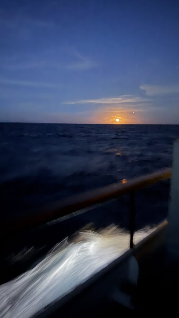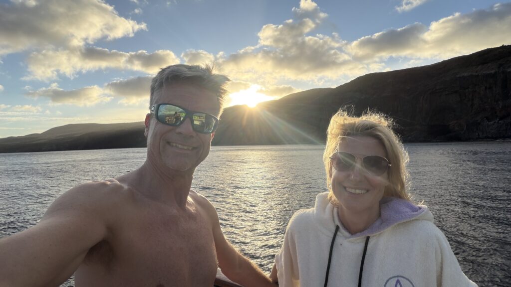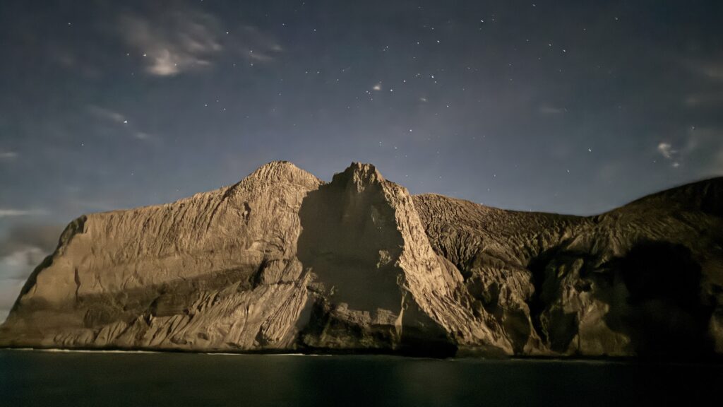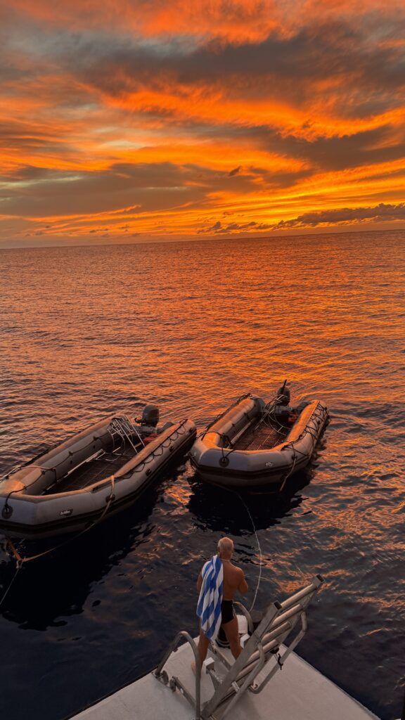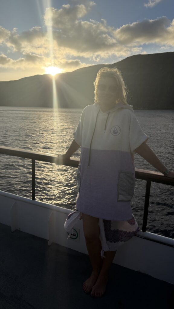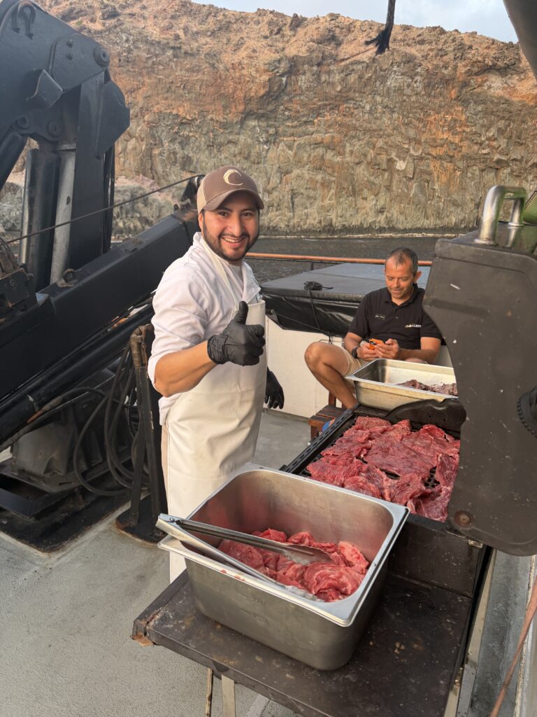 Das ein und aussteigen vom Schiff auf das Skiff hier ist eine weitere Herausforderung. Da heute nach dem dritten Dorf und die Wellen immer höher wurden, mussten wir den vierten Durchgang streichen bereits gegen 15:00 Uhr zur nächsten Insel, nun nach Socorro, wiederum über 10 Stunden.