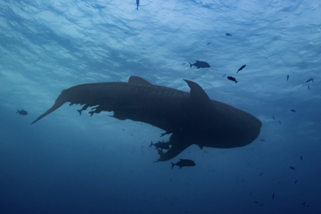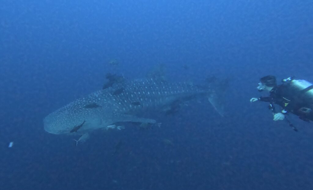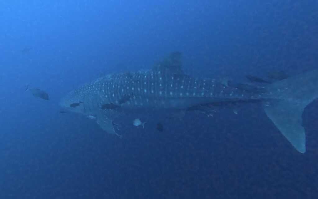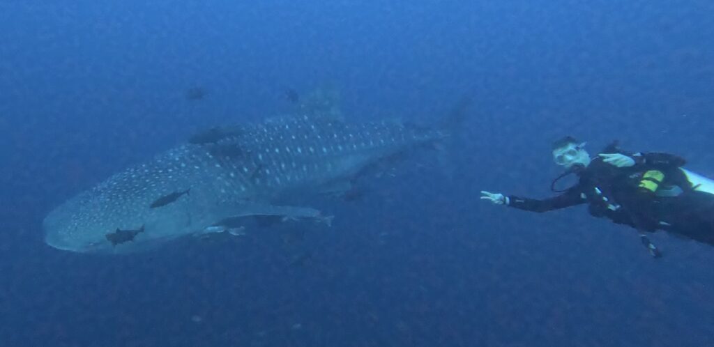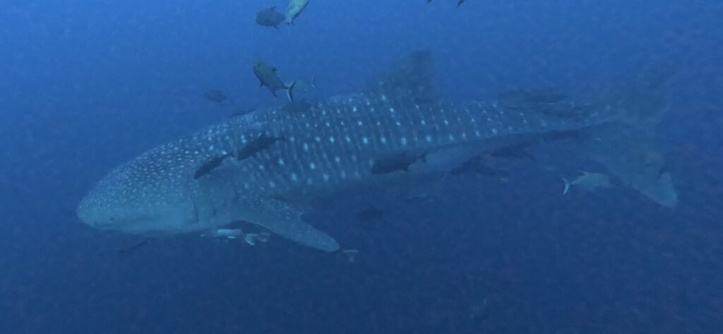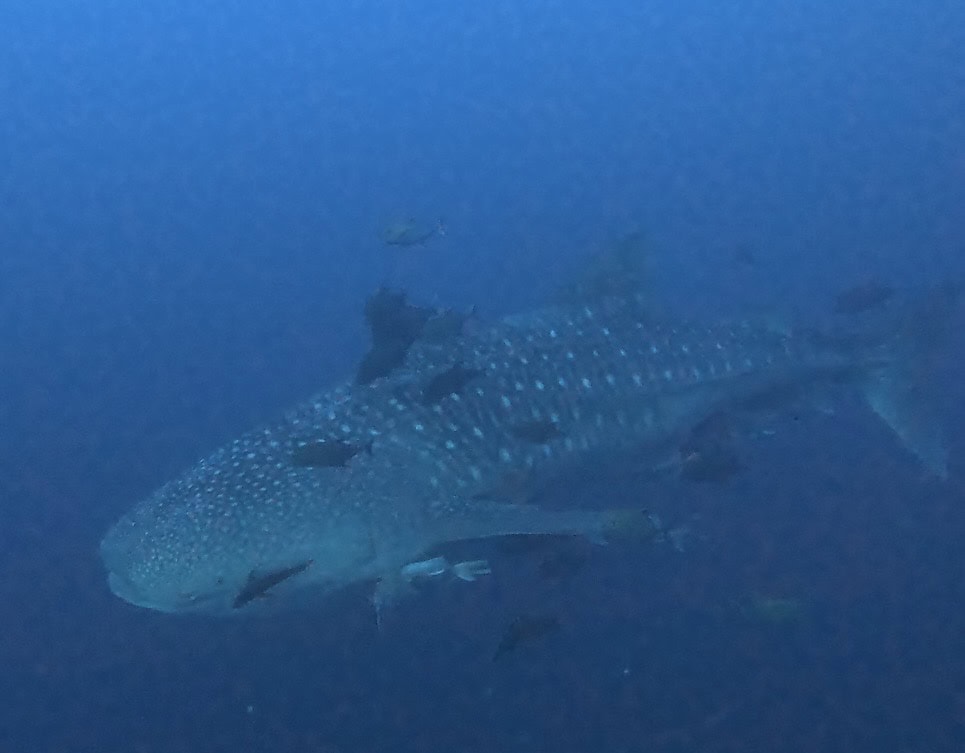 Die Tauchgänge hier waren die absolut besten. Unter anderem haben wir einen 10 Meter großen Walhai direkt vor uns aus der Tiefe auftauchen gesehen und einmal bei uns vorbeischweben, ganz majestätisch, cool. Es gab Schwärme an Barracudas und anderen Fischen.