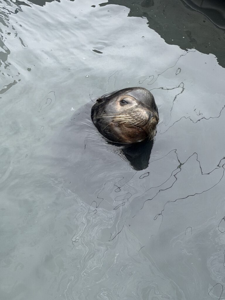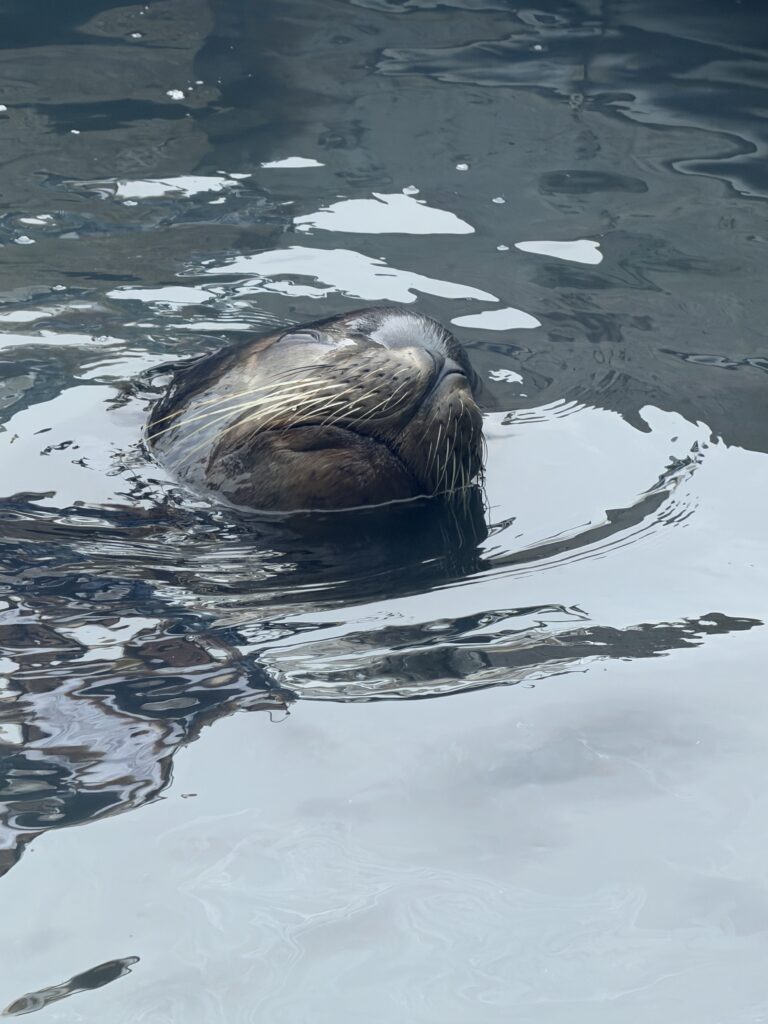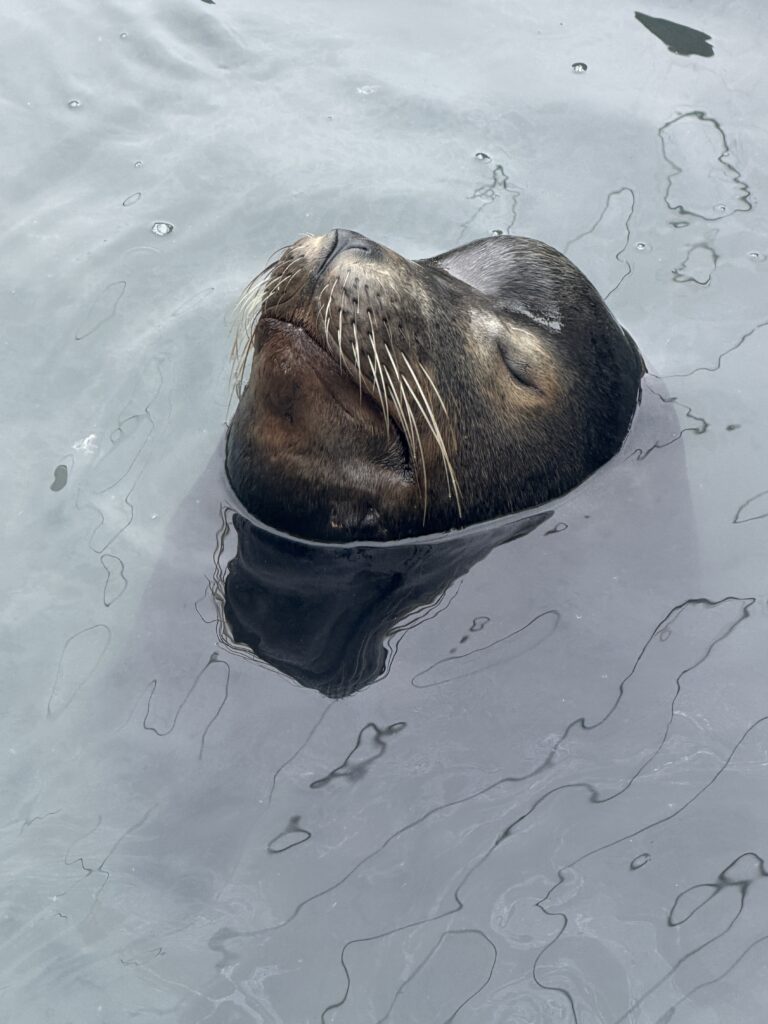 Um 7:20 Uhr Nico den Malin in der Hand für rund 30 Sekunden und gleich danach haben wir den Fisch wieder ins Wasser gelassen. Die Wellen verbunden mit der Anstrengung haben Nikan seekrank werden lassen. Wir sind dann gegen 10:30 Uhrwieder zurück zum Hafen gefahren. Dabei hat uns auch ein großer Seelöwe begleitet und ist doch kurz auf unser Boot gesprungen. Das war echt cool.