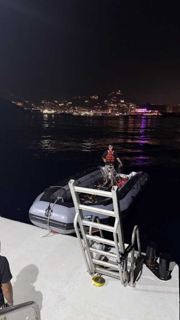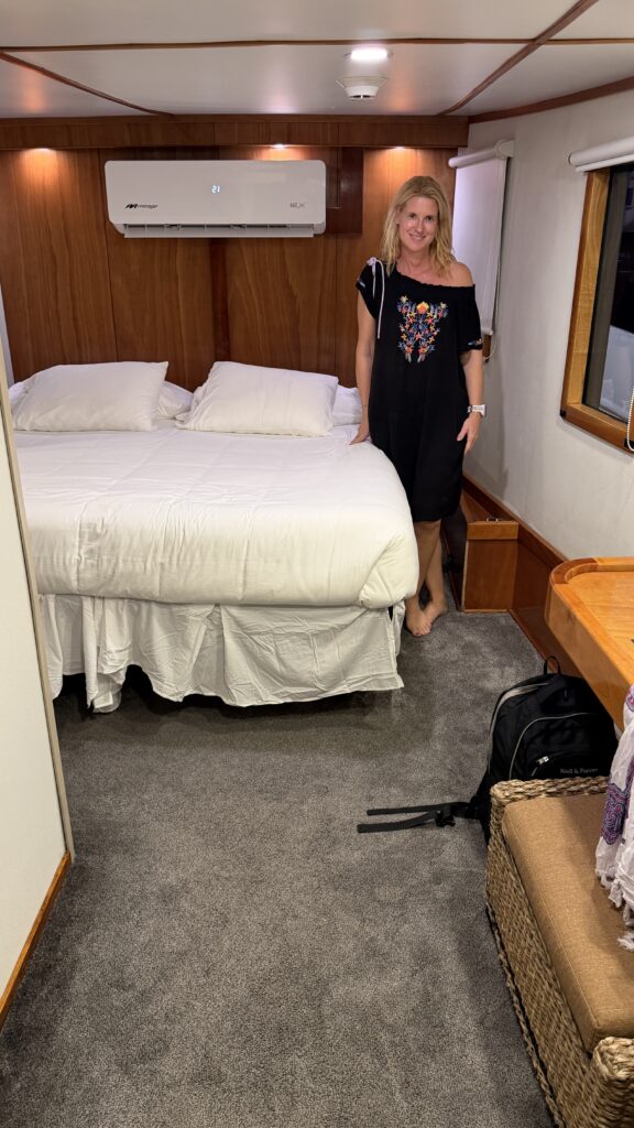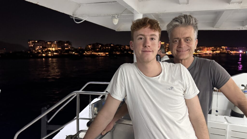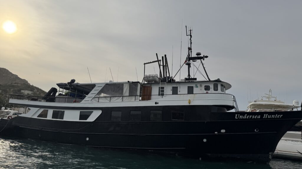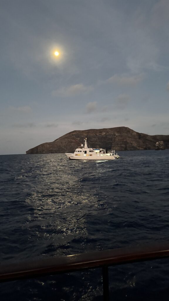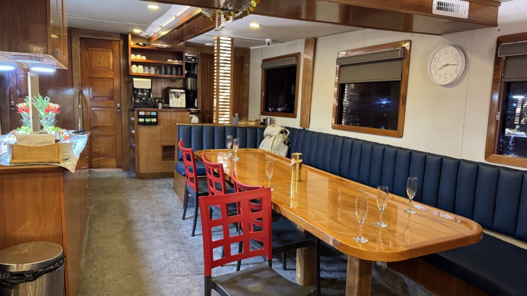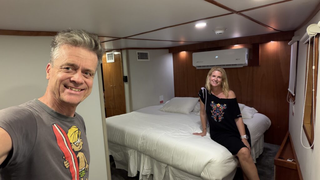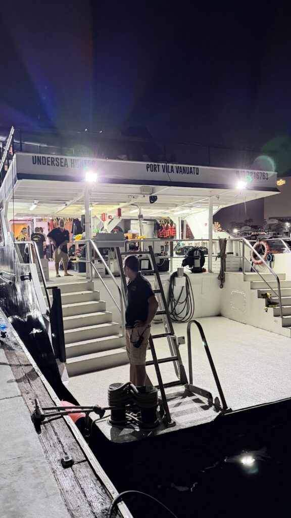 Um 18:00 Uhr war dann großes Treffen in der Tauchbasis mit allen Tauchkollegen und kurz vor 20:00 Uhr sind wir dann zum Schiff gefahren und haben unsere Kabine bezogen. Jetzt stehen 30 Stunden Folter beziehungsweise hohe Wellen vor uns. Und das alles am 31. Dezember 2025 zu Silvester, Juchuuuu (wir machen das aber alles freiwillig 😜).