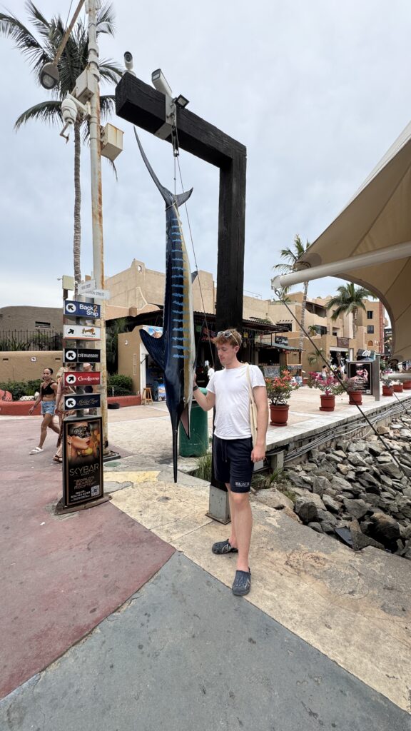 Heute um 6:00 Uhr in der Früh waren wir bereits am Hafen und sind mit einem Hochseefischer Boot hinaus gefahren. Ziel war es, einen großen Marklin zu fangen und wieder freizulassen.