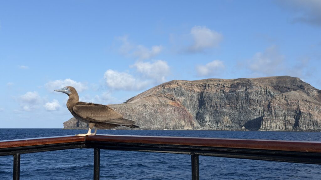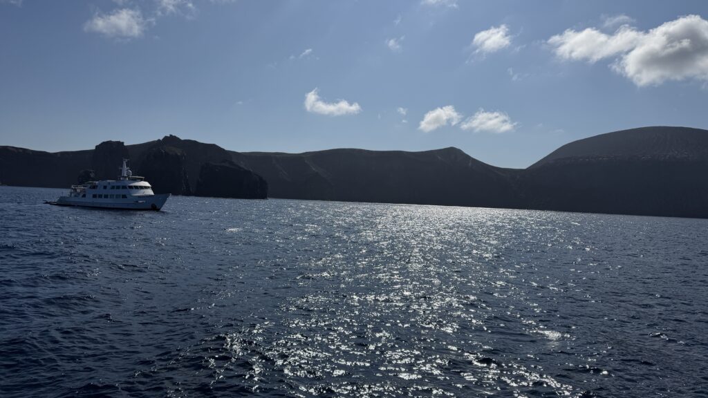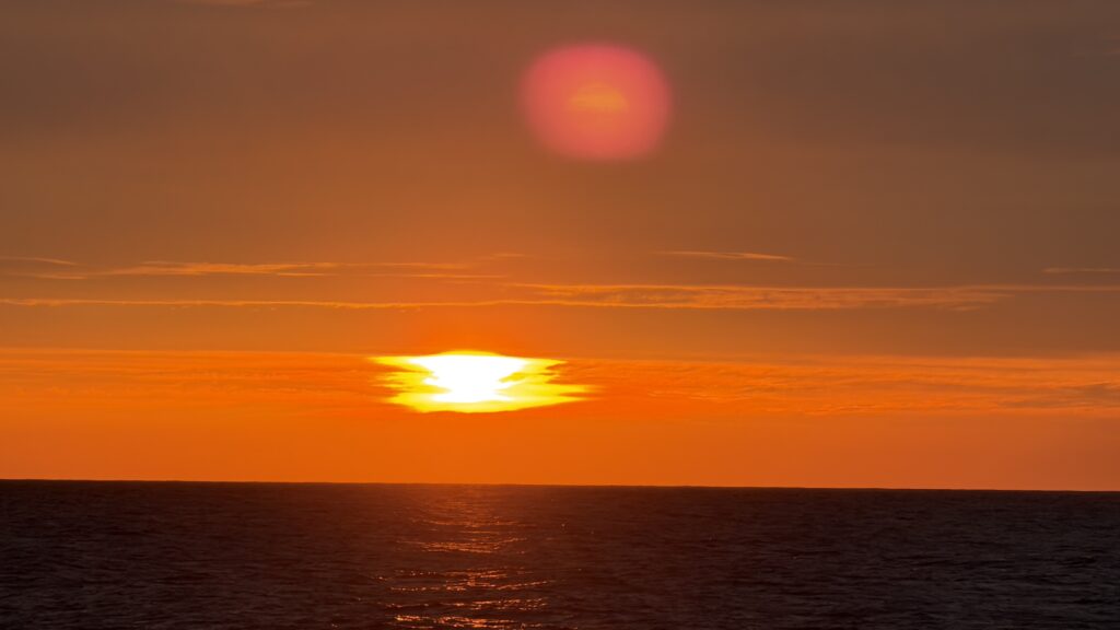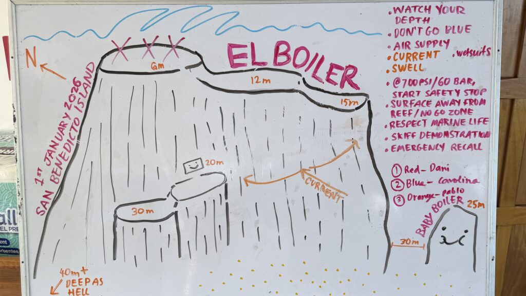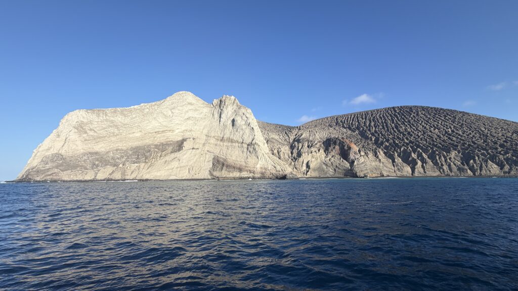 Auf der Fahrt haben wir einige Delfine neben uns schwimmen gesehen. Der Sonnenuntergang zu Silvester war auch sehr schön. Jetzt haben wir noch eine ganze Nacht vor uns bis wir zu unserer ersten Insel San Benedicto in der Inselgruppe „Soccoro“ ankommen.