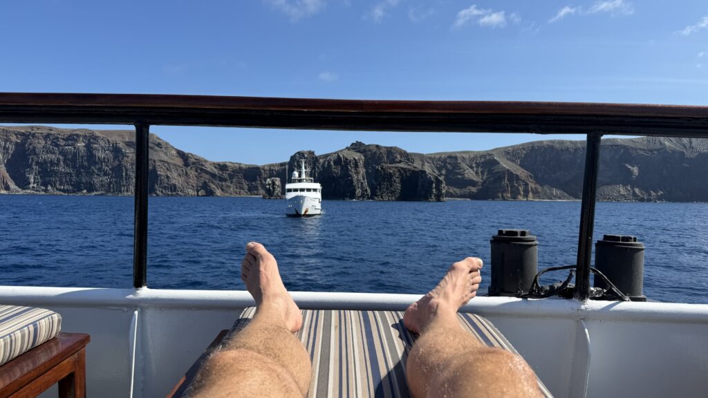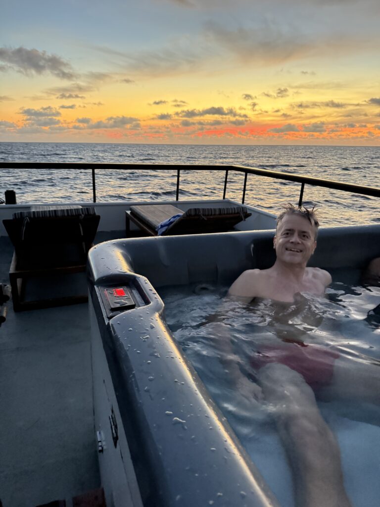 Zwischen 15:30 und 16:30 Uhrdann der 4. Dive. Danach dann ein After Dive Bier bei schönen Sonnenuntergang am obersten Deck auf der Liege oder im heißen Whirlpool 🥰😍