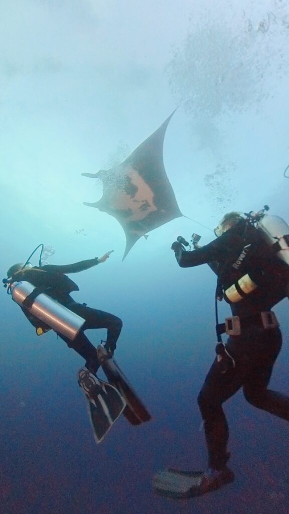 Die ersten Tauchgänge hier waren bereits der Hammer und die Vorfreude auf 4 Tauchgänge pro Tag war riesig. Wir haben bereits viele Mantas und Haie gesehen.