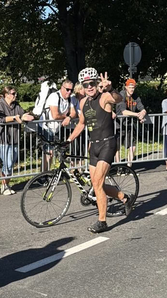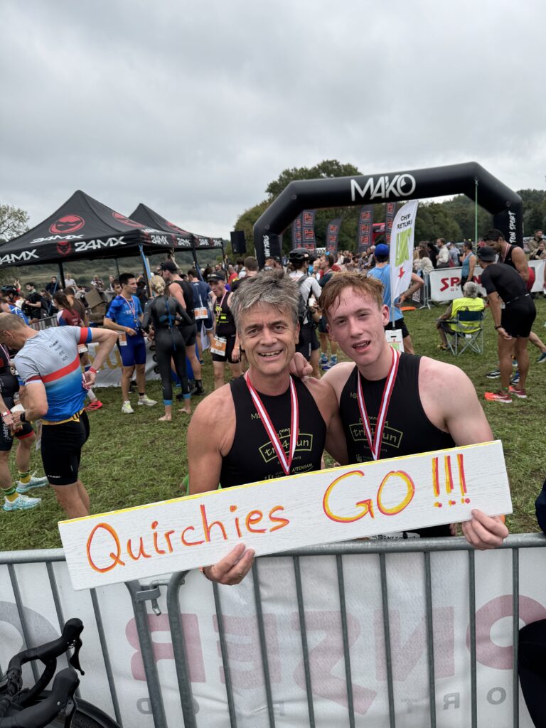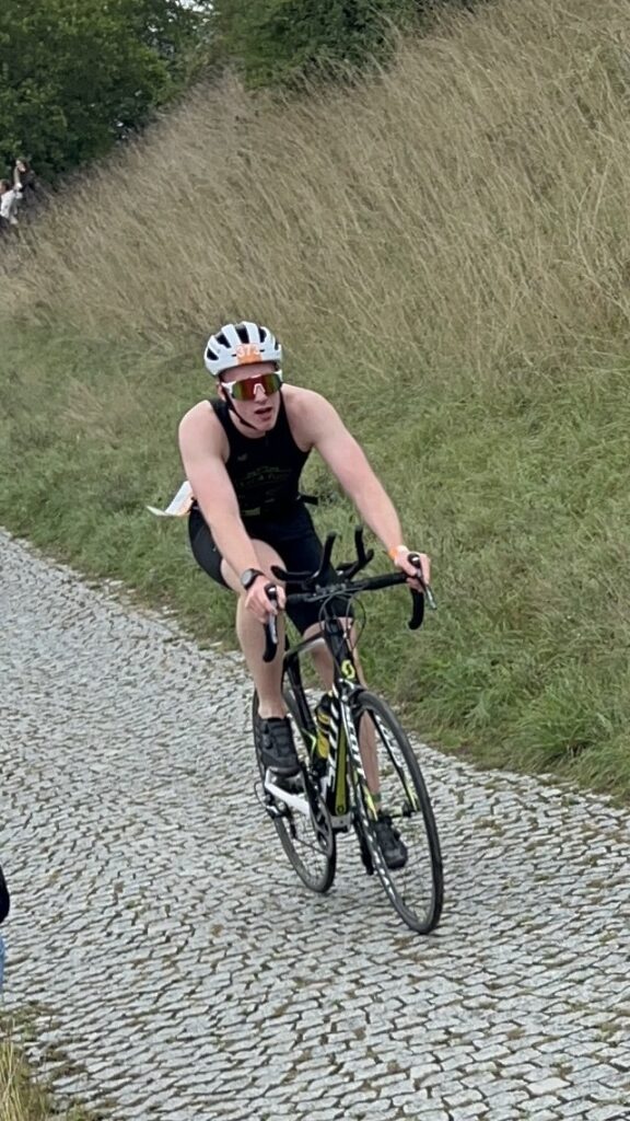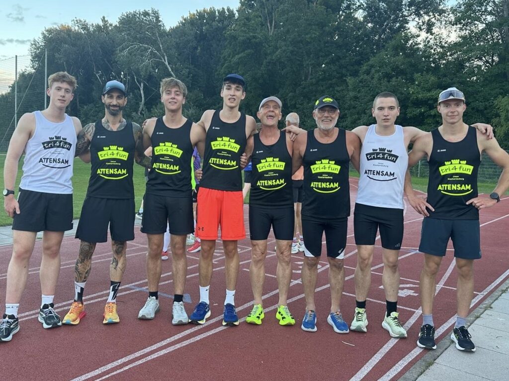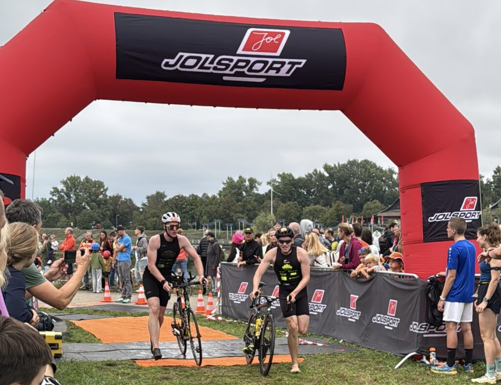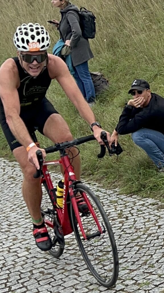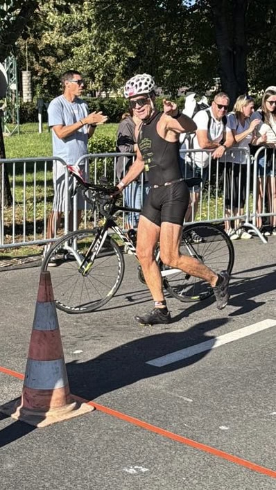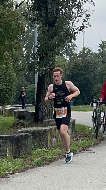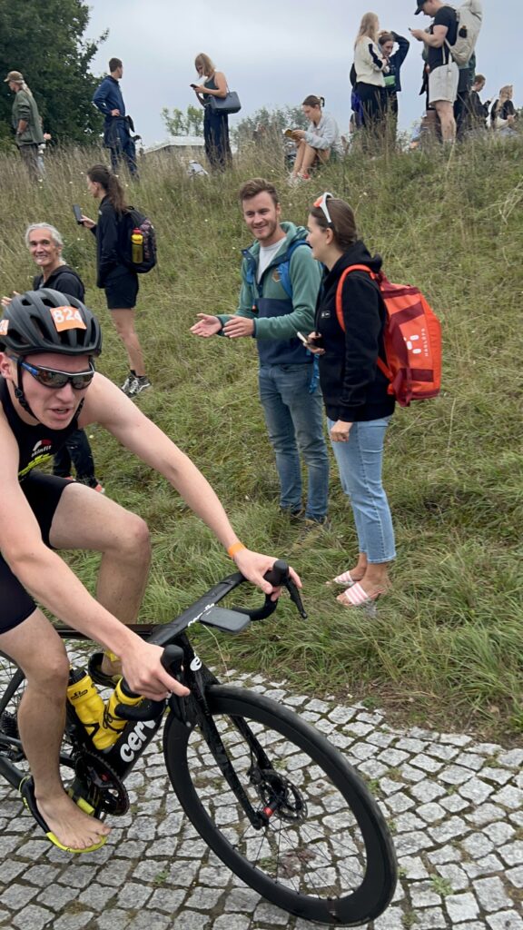 Um 11 Uhr war dann Start und zwar ein Wasserstart. Moritz war unser schnellster (von 250 Startern als 8er aus dem Wasser), Nico war der erste Nichtneopren Schwimmer aus dem Wasser (so rd. 16er) und ich war auch nicht viel langsamer. Wechselzeit schnell absolviert. Am Rad war dann ich der schnellste, obwohl ich nur mit dem roten Canyon gefahren bin (mit vorderem Kotflügel) und zwar knapp unter 30 Minuten. Nico war rd. 15 Sekunden langsamer und Moritz rd. 1 Minute langsamer. Dafür war dann Moritz wieder der Schnellste beim Laufen mit unter 19 Minuten. Ich bin knapp unter 23 Minuten gelaufen und Nico war so 15 Sekunden wieder langsamer als ich. Moritz ist mit einer Gesamtzeit von knapp unter 1 Stunde 6 Minuten overall 10. geworden. Nico hat mit einer Zeit von knapp unter 1 Stunde 10 Minuten die Jugendwertung klar gewonnen und ich war mit meiner Zeit von 1 Stunde 10 Minuten und 15 Sekunden sehr happy. Wir waren alle super happy. Unsere Supporter waren großartig und haben uns zu Höchstleistungen angespornt. Mit einer Laufpace von unter 5 Minuten auf den Km war ich auch überrascht. Leider hat am Abend dann mein Knie zum Schmerzen begonnen und es dauerte rd. 3 Wochen bis wieder alles gut wurde. Um 13 Uhr war dann die Siegerehrung und Nico stand ganz oben am Podium und hat seinen ersten Triathlonpokal gewonnen. Moritz ist in der Juniorenwertung Dritter geworden. Ich bin in der age group 55-60 Jahre 6. geworden.