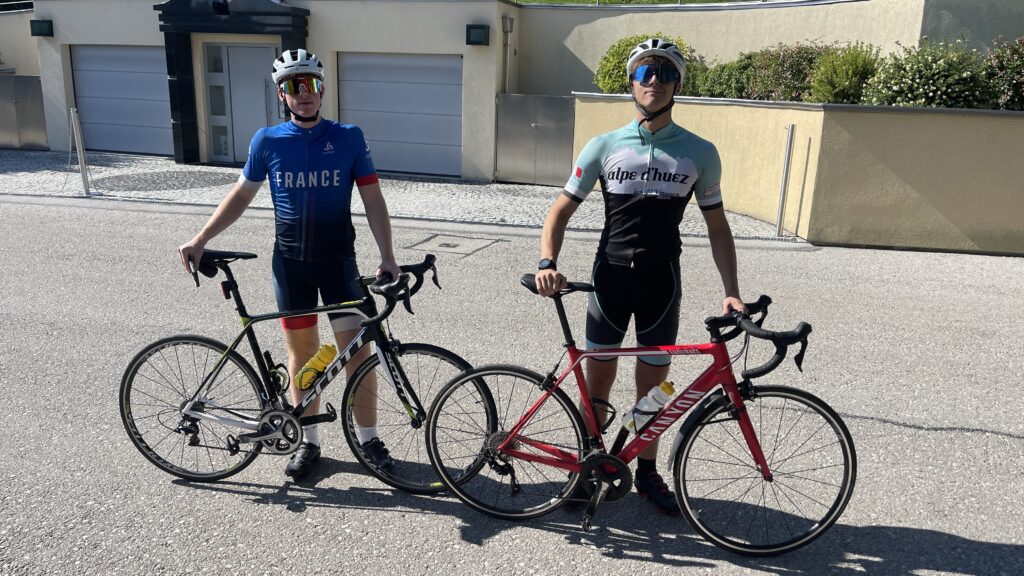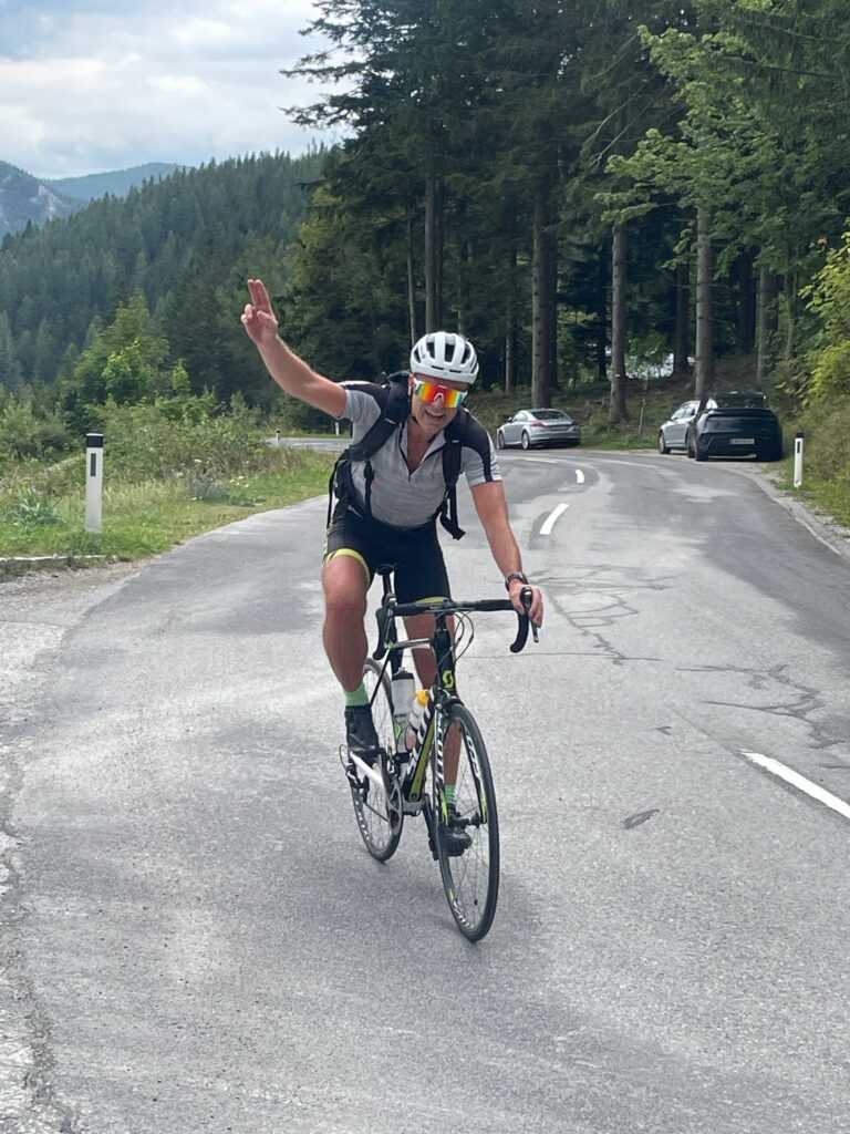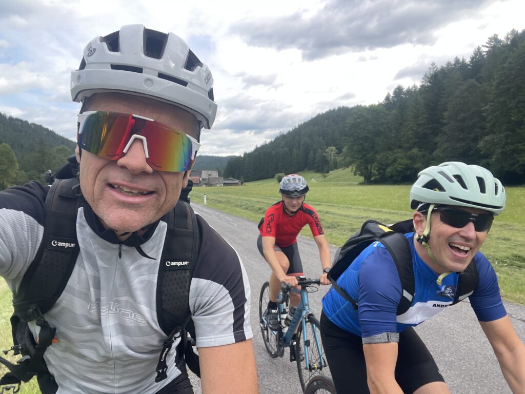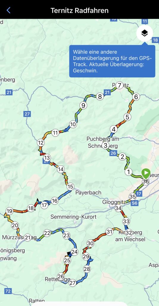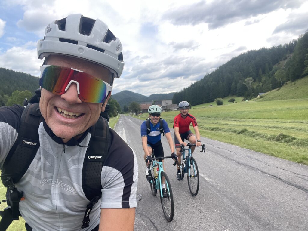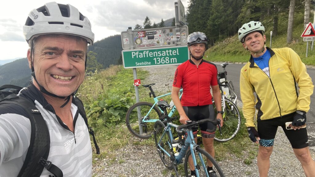 Bereits genau vor 7 Jahren bin ich mit Christian nach Ternitz gefahren und sind die Radstrecke damals schon ident gefahren. Heute war später Treffpunkt um 08.00 Uhrbei mir, weil ich am Abend davor am Neustifter Kirtag war. Ich habe leider viel zu viel Wein und Shots getrunken und bin erst um 1:30 Uhr ins Bett gekommen. Aufgrund späten Schlafengehens und viel Alkohol habe ich nicht gut geschlafen. Ich habe mich um 7 Uhr aufwecken lassen und meine Bodybatterie war bei nur 25 %, mir ging es auch nicht gut. Aber wenn man sich was ausmacht, dann sagt man nicht ab. Die erste halbe Stunde bin ich nur am Boden gelegen, dann habe ich mir ein bisserl was zum Frühstücken gemacht und Wasserflaschen mit Carbo und Iso vorbereitet. Um 8 Uhr war Christian dann vor der Tür, mit rd. 8 Minuten Verspätung sind wir dann losgefahren, Christian musste fahren. So gegen 9:30 Uhr waren wir dann in Ternitz, wo wir Andi getroffen haben. Christian und Andi bereiten sich auf den Ötztaler Radmarathon in Sölden (Kütai – Brenner – Jaufenpass – Timmelsjoch mit 5.500 Höhenmeter) vor.