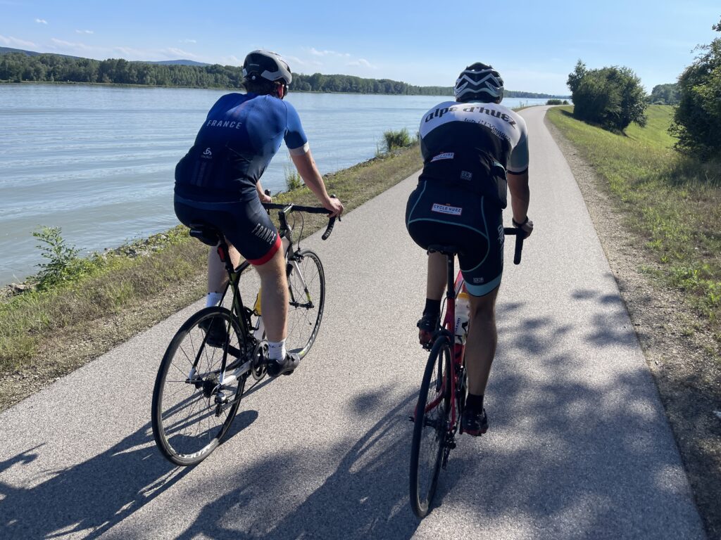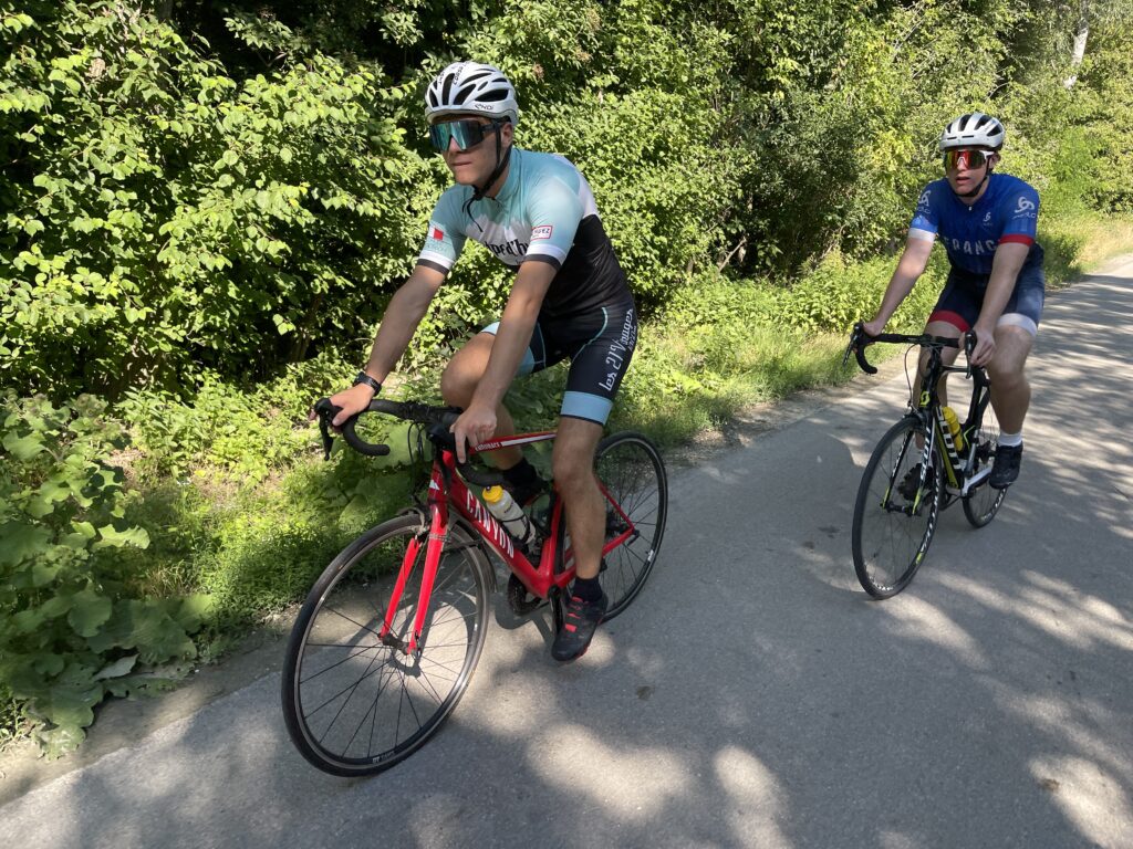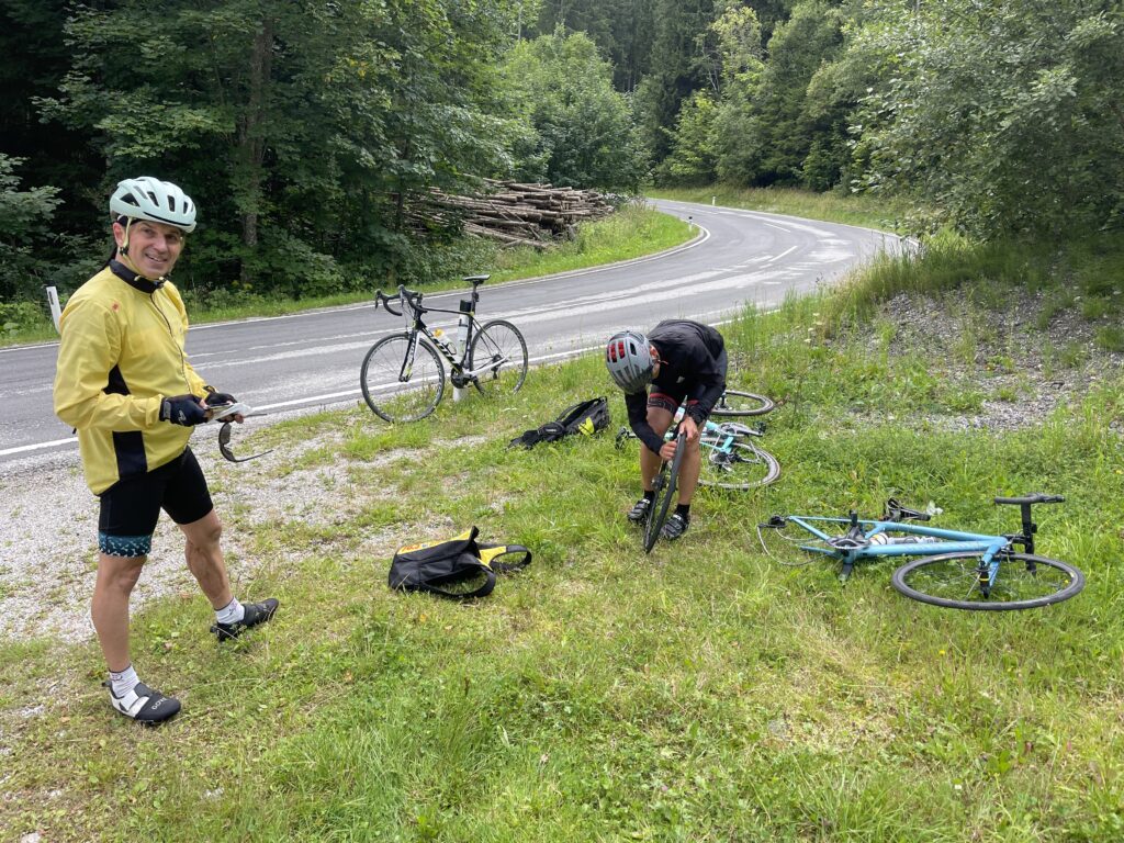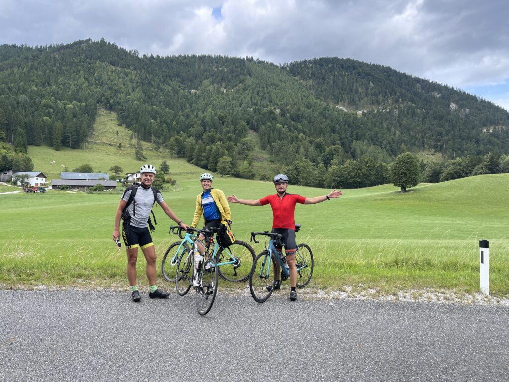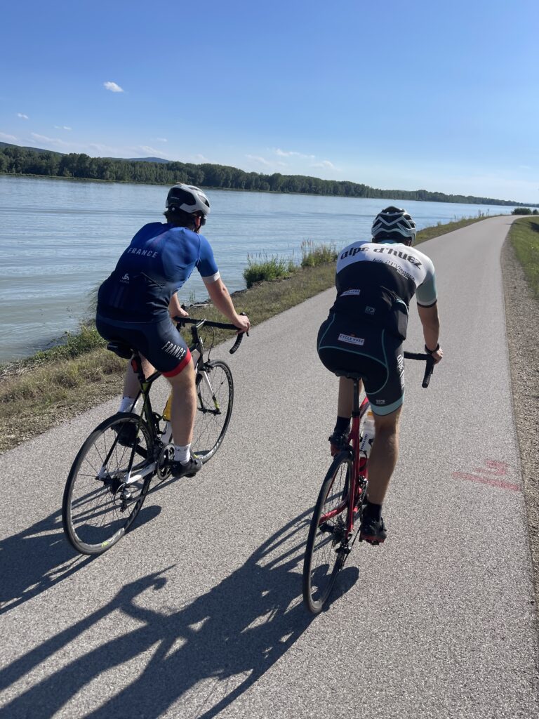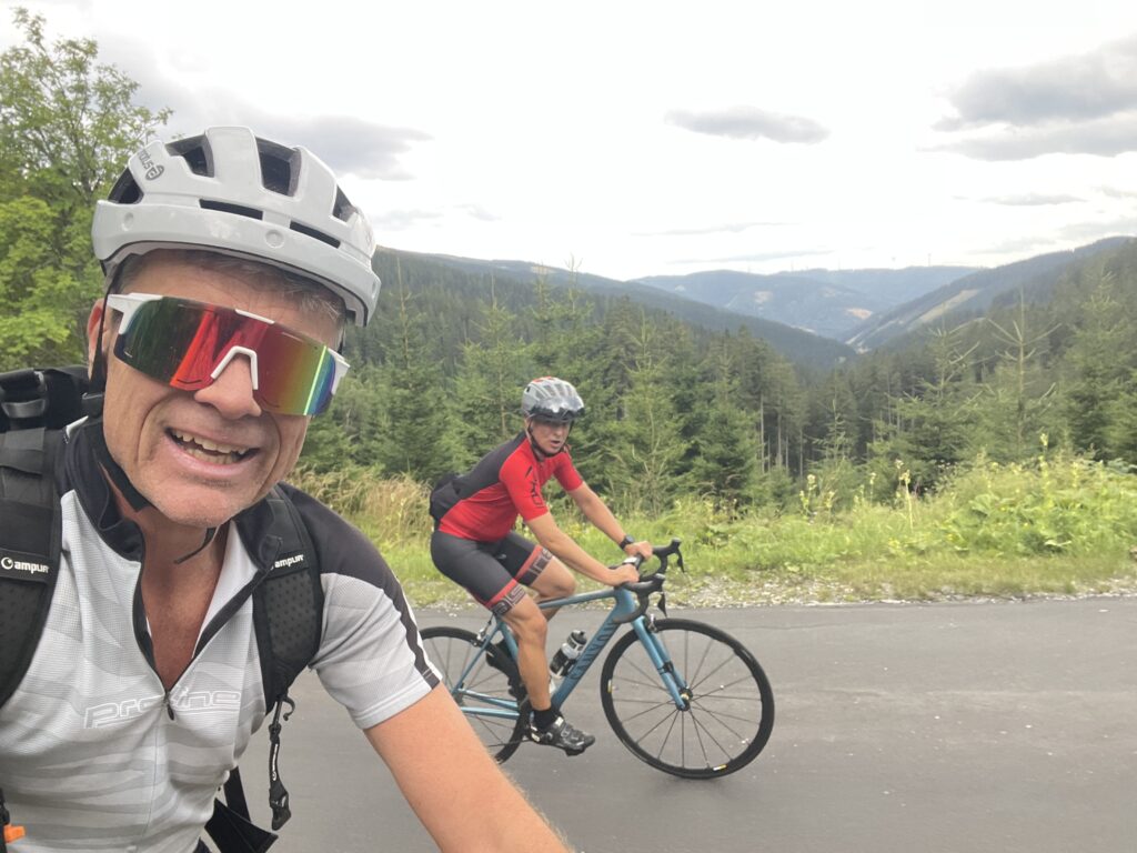Bereits genau vor 7 Jahren bin ich mit Christian nach Ternitz gefahren und sind die Radstrecke damals schon ident gefahren. Heute war später Treffpunkt um 08.00 Uhrbei mir, weil ich am Abend davor am Neustifter Kirtag war. Ich habe leider viel zu viel Wein und Shots getrunken und bin erst um 1:30 Uhr ins Bett gekommen. Aufgrund späten Schlafengehens und viel Alkohol habe ich nicht gut geschlafen. Ich habe mich um 7 Uhr aufwecken lassen und meine Bodybatterie war bei nur 25 %, mir ging es auch nicht gut. Aber wenn man sich was ausmacht, dann sagt man nicht ab. Die erste halbe Stunde bin ich nur am Boden gelegen, dann habe ich mir ein bisserl was zum Frühstücken gemacht und Wasserflaschen mit Carbo und Iso vorbereitet. Um 8 Uhr war Christian dann vor der Tür, mit rd. 8 Minuten Verspätung sind wir dann losgefahren, Christian musste fahren. So gegen 9:30 Uhr waren wir dann in Ternitz, wo wir Andi getroffen haben. Christian und Andi bereiten sich auf den Ötztaler Radmarathon in Sölden (Kütai – Brenner – Jaufenpass – Timmelsjoch mit 5.500 Höhenmeter) vor.