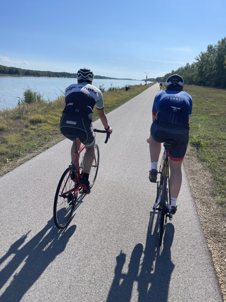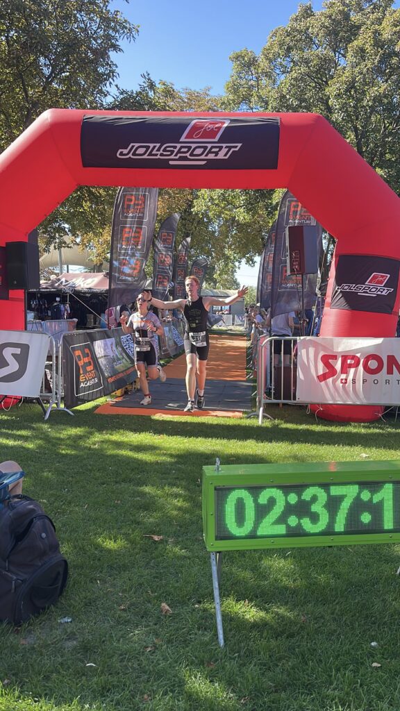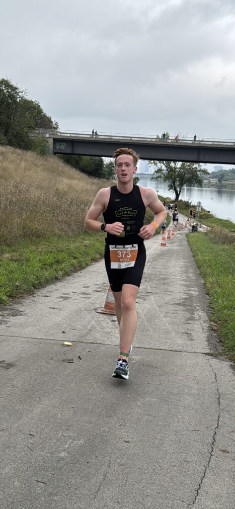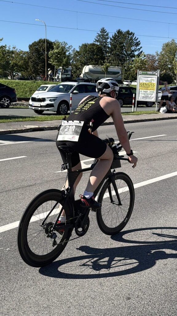Nachdem Nico der Vienna City Triathlon Sprint letzte Woche so gut gefallen hat, wollte er unbedingt in diesem Jahr noch einen Triathlon machen und zwar eine Olympische Distanz, also die doppelte Distanz, nämlich 1.500 m Swim, 40 km Bike und 10 km Run. Da bot sich der Neufeldersee Triathlon an, der von Juni auf September verschoben wurde. Nico konnte Thomas gleich überreden, ich musste auch starten. Nachdem mir aber mein Knie vom 5 km Lauf letzter Woche noch sehr weh tat, bin ich nur beim Aquabike angetreten, also ohne dem – hier 10,4 km – Lauf. Nico musste sich 2 Jahre älter machen, weil man bei der Olympischen Disziplin 18 Jahre alt sein muss.