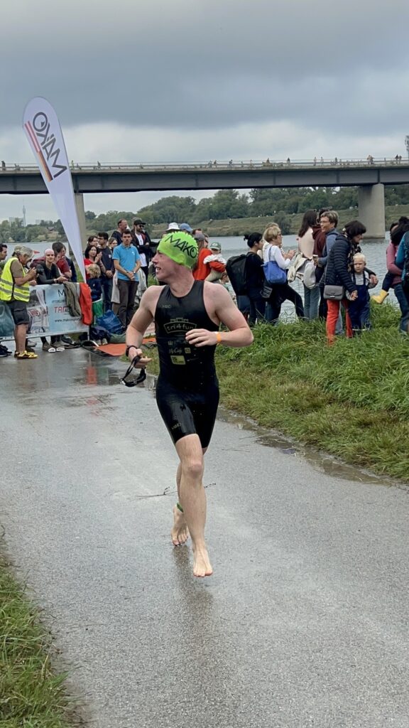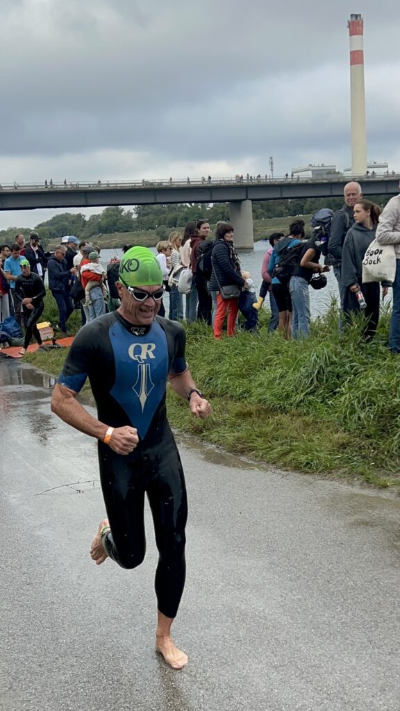 Nico hat sich für den Vienna City Triathlon Sprint (750 m Swimm – 20 km Bike – 5 km Run) schon vor ein paar Wochen angemeldet. Völlig überraschend hat Nico mir dann auch meine Anmeldung via Whatsapp geschickt und war stolz, dass ich mich auch angemeldet habe. Nun ja, nach vielen Jahren musste ich wieder einen Triathlon machen. Mein großes Problem ist ja das Laufen. Bis zum Start heute bin ich in Summe dreimal 5 km gelaufen. Gemeinsam mit Thomas und Jan sind wir eine Woche vorher mit dem Rad zur Donauinsel gefahren und haben gemeinsam die drei Disziplinen gemacht, um die Strecken kennenzulernen. Überraschend bin ich schon vor einer Woche eine Pace von rd. 5 Min auf den km gelaufen.