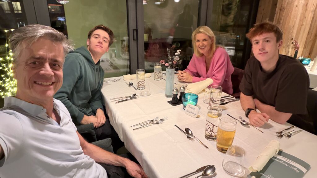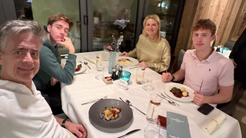 Wir sind dann recht oft die Tal Abfahrt Leogang gefahren. Heute müssen Nico und Luca um 13:40 Uhr spätestens im Hotelzimmer sein. Es findet das letzte F1 Rennen der Saison statt und sie fiebern mit Verstappen mit.
