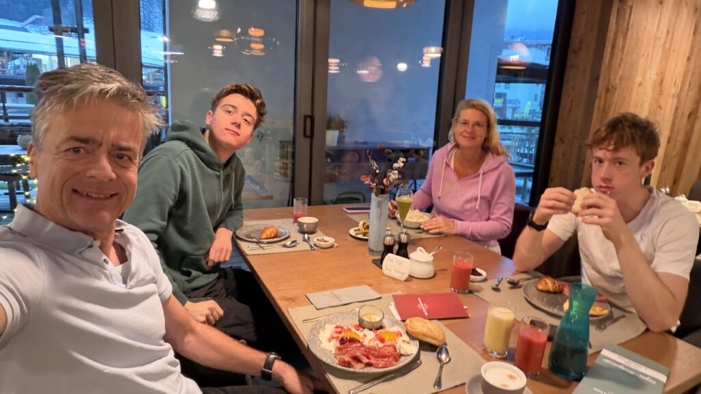Heute wollten wir noch zeitiger auf der Piste sein und wann pünktlich um 7:30 Uhr frühstücken und haben es schon um 8:10 Uhr in die Gondel geschafft. In der Früh sind die Pisten extrem fein zum fahren.