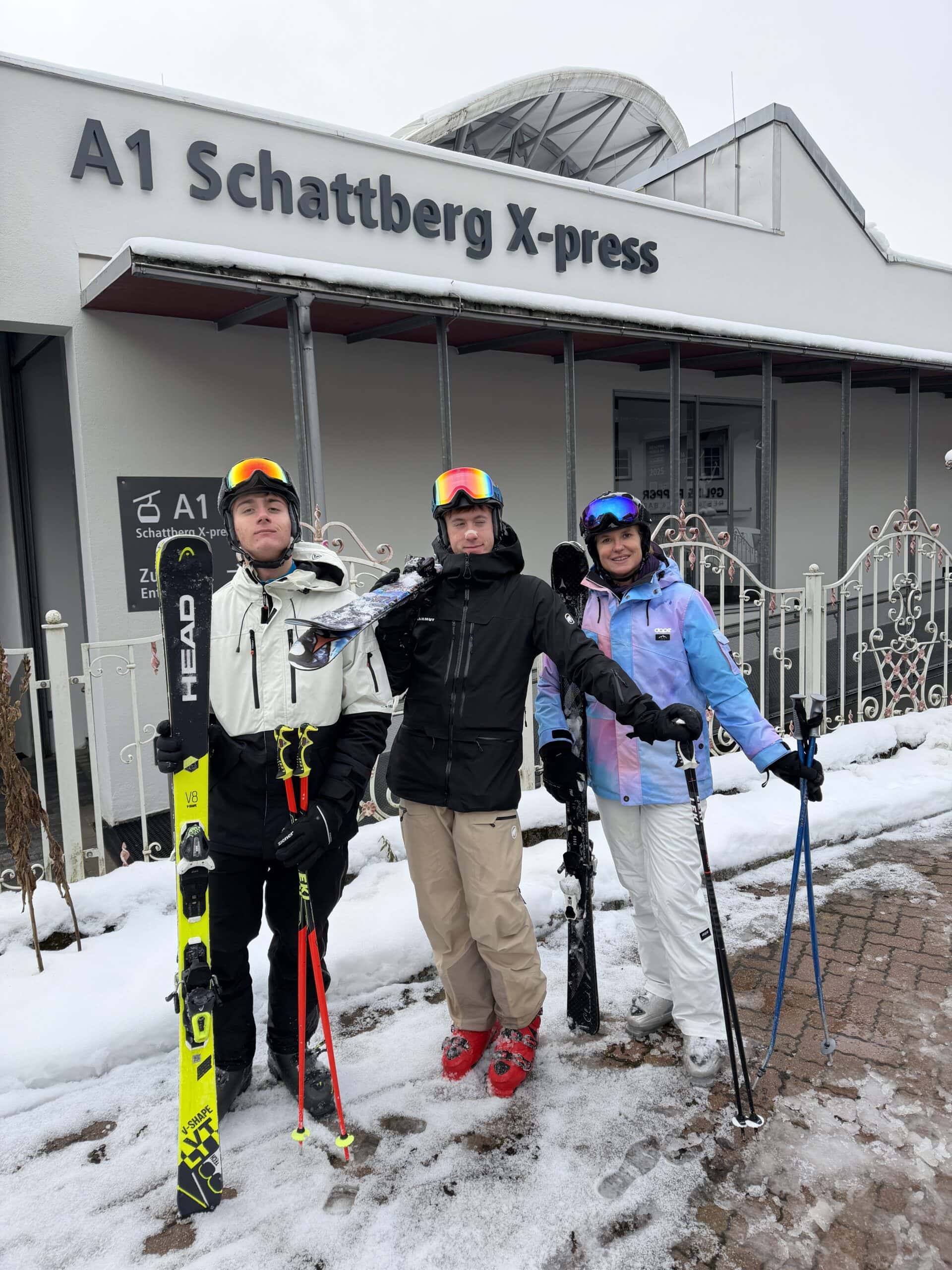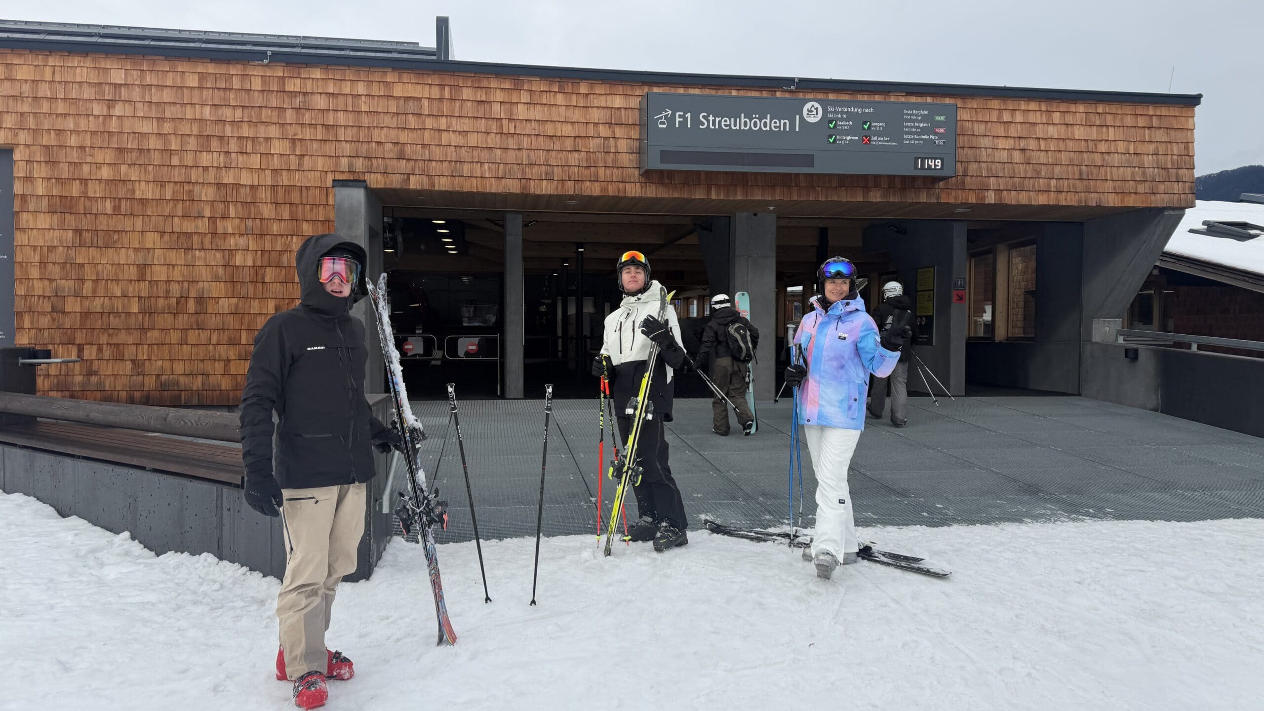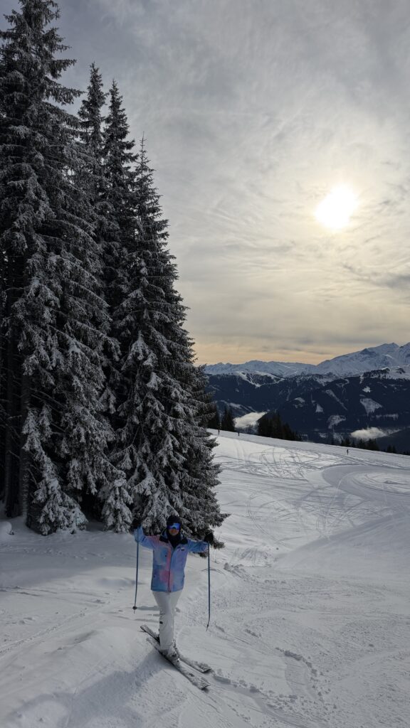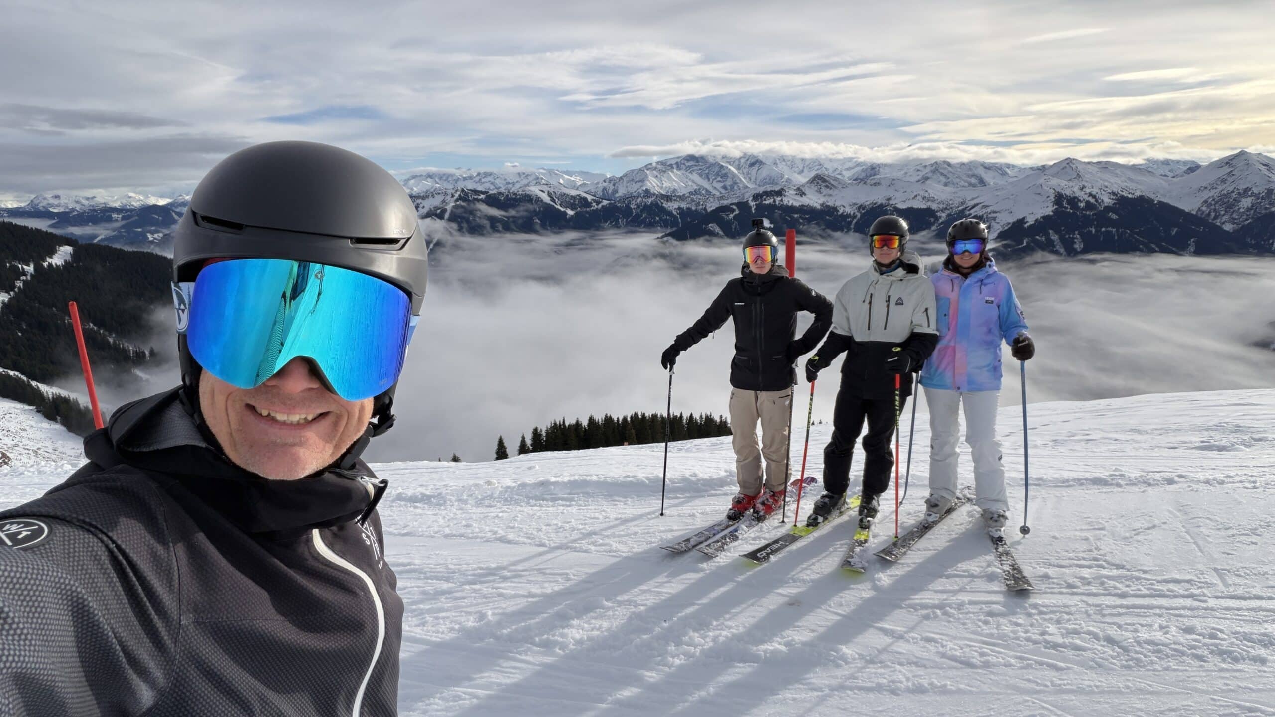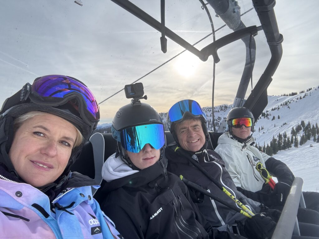 Um 7:35 Uhr waren wir beim Frühstück und um 8:30 Uhr beim Lift. Das Wetter heute ist so perfekt. Zunächst fuhren wir ein bisschen in Leogang und dann nach Saalbach und hinauf auf den Schattberg in Saalbach wo wir dann einige Male Schattenberg West gefahren sind. Zu Mittag waren wir wie vor zwei Jahren auf der Westgipfelhütte. Dort haben wir 1 Stunde auf das Essen gewartet, was aber dann auch gut war.