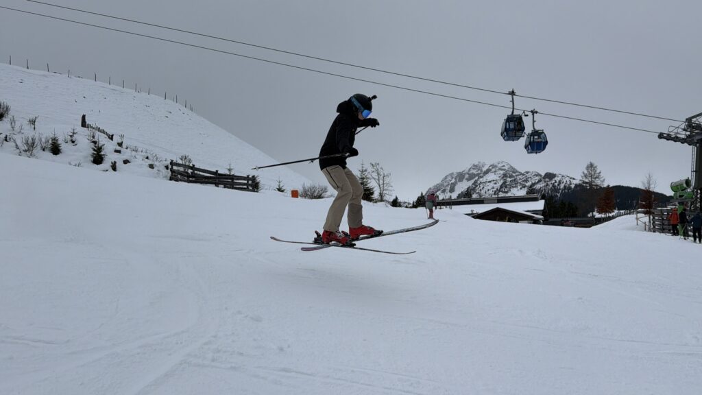 Zunächst kommt man über Reckmoos Lifte ins Skigebiet Fieberbrunn. Dort bin ich als Teenager mit Stefan hunderte mal gefahren, im Skigebiet Fieberbrunn waren wir 10-15 mal mit den Großeltern Skifahren. Im Unterschied zu zwei Jahren sind wir dann auch noch ganz hin und nach Fieberbrunn gefahren. Doischberg ist kein Schlepper mehr, sondern eine Gondel. Weil das Wetter nicht so gut angesagt war, waren heute extrem wenig Skifahrer auf der Piste. Teilweise hatten wir die Piste ganz für uns alleine.