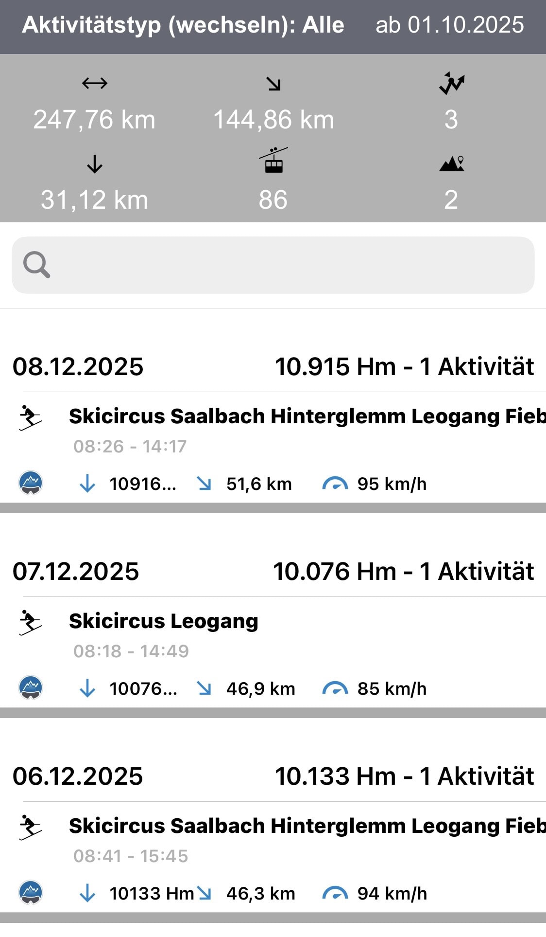 Zurück fahren wir dann über Schönleiten und dann noch ein wenig in Leogang. Nico und Luca haben am Ende in den Liften immer Qualifying für das letzte F1 Rennen in Abu Dhabi geschaut. Am Ende waren es 47 km und 10.000 Höhenmeter.