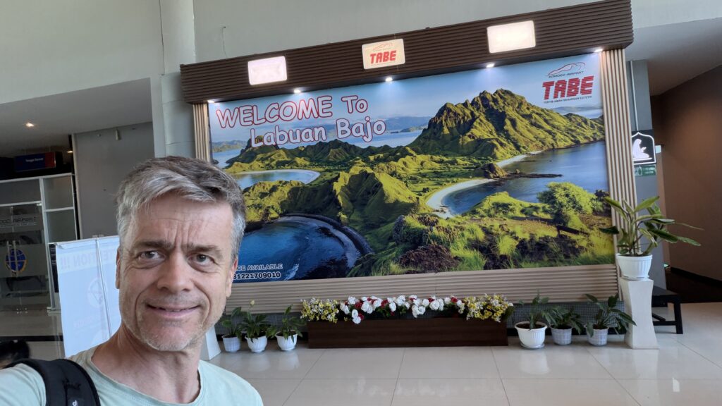 Es gab keinen Verkehr darum waren wir sehr flott in rund 20 Minuten beim Airport und um 5:30 Uhr haben wir bereits geboardet (Scooter). Kurz nach 9:00 Uhr nach 3 Stunden landeten wir in Labuan Bajo.