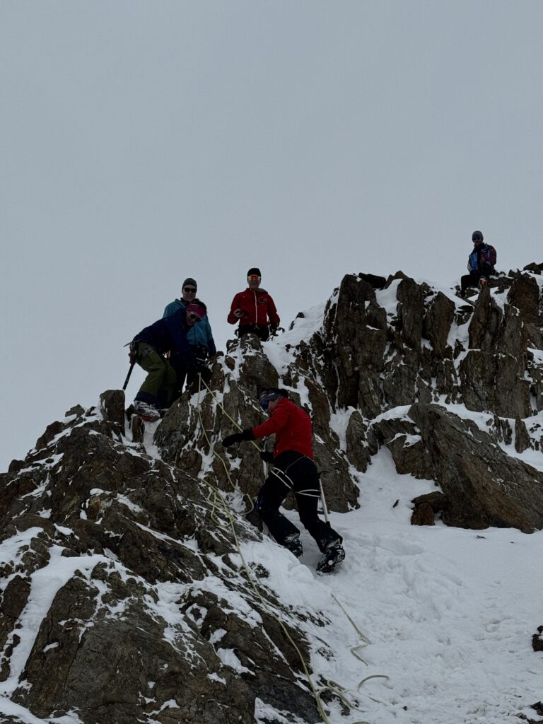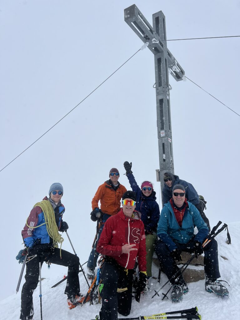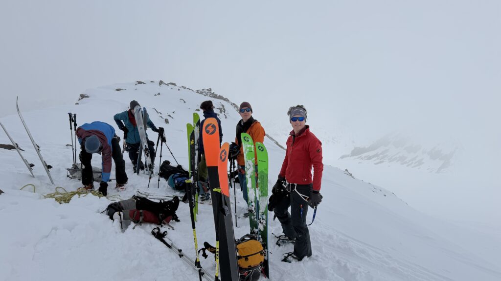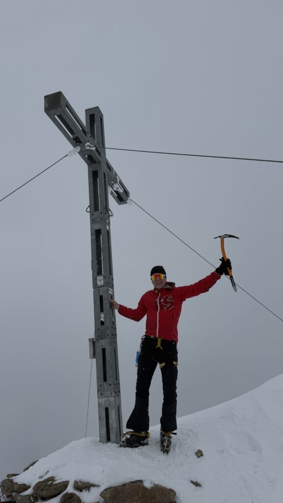 dann ging es sehr sehr langsam hinauf mit geringer Steigung hinauf zur Simul Hütte auf 3000 m. Das war nicht sehr gut. Nach knapp über 1100 Höhenmetern waren wir erst um 13:15 Uhr oben am Similaun auf 3.600m, dem neuen höchsten Berg Österreichs. Die letzten 150 Höhenmeter sind wir ohne Ski bis ersten Schwierigkeitsgrad hinauf gegangen. Es war recht einfach.