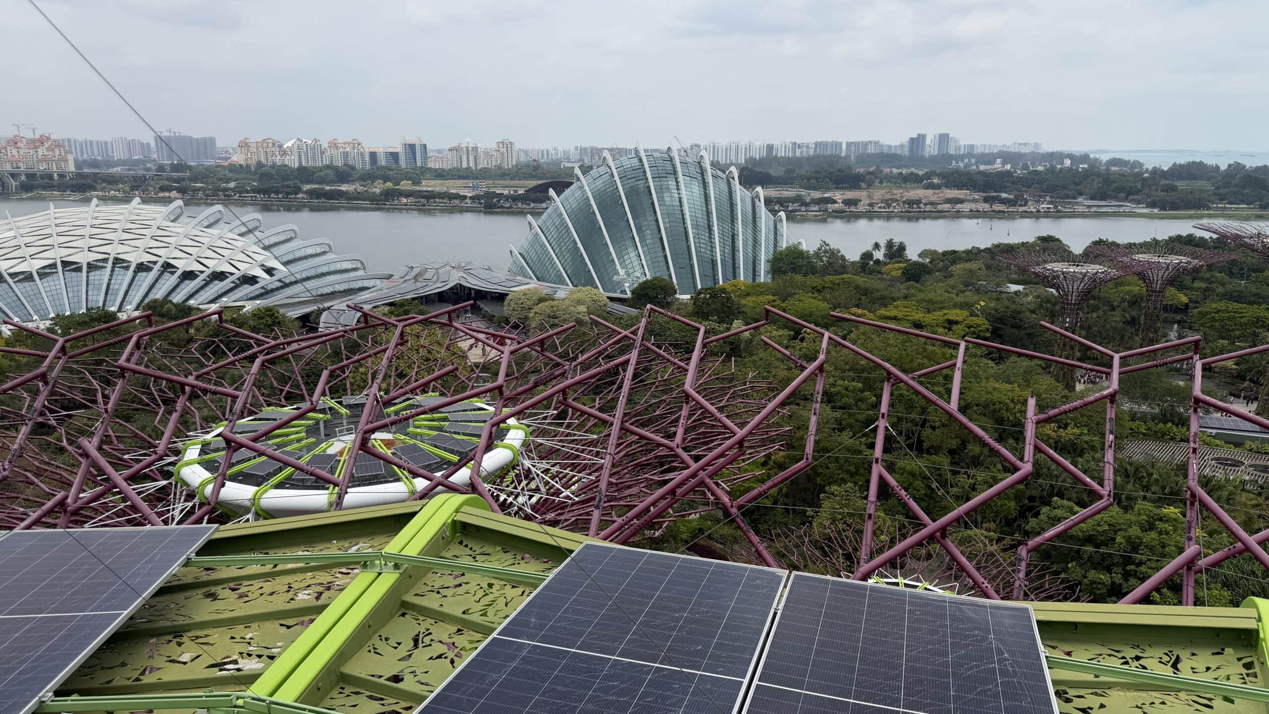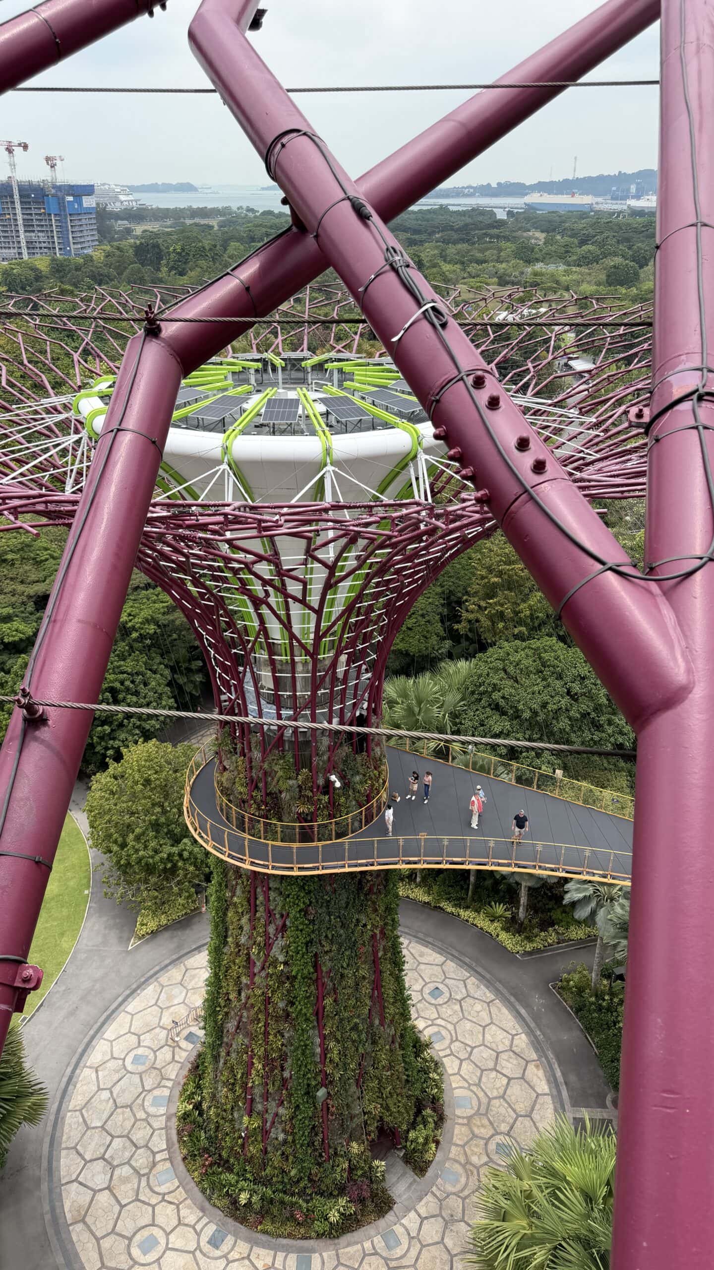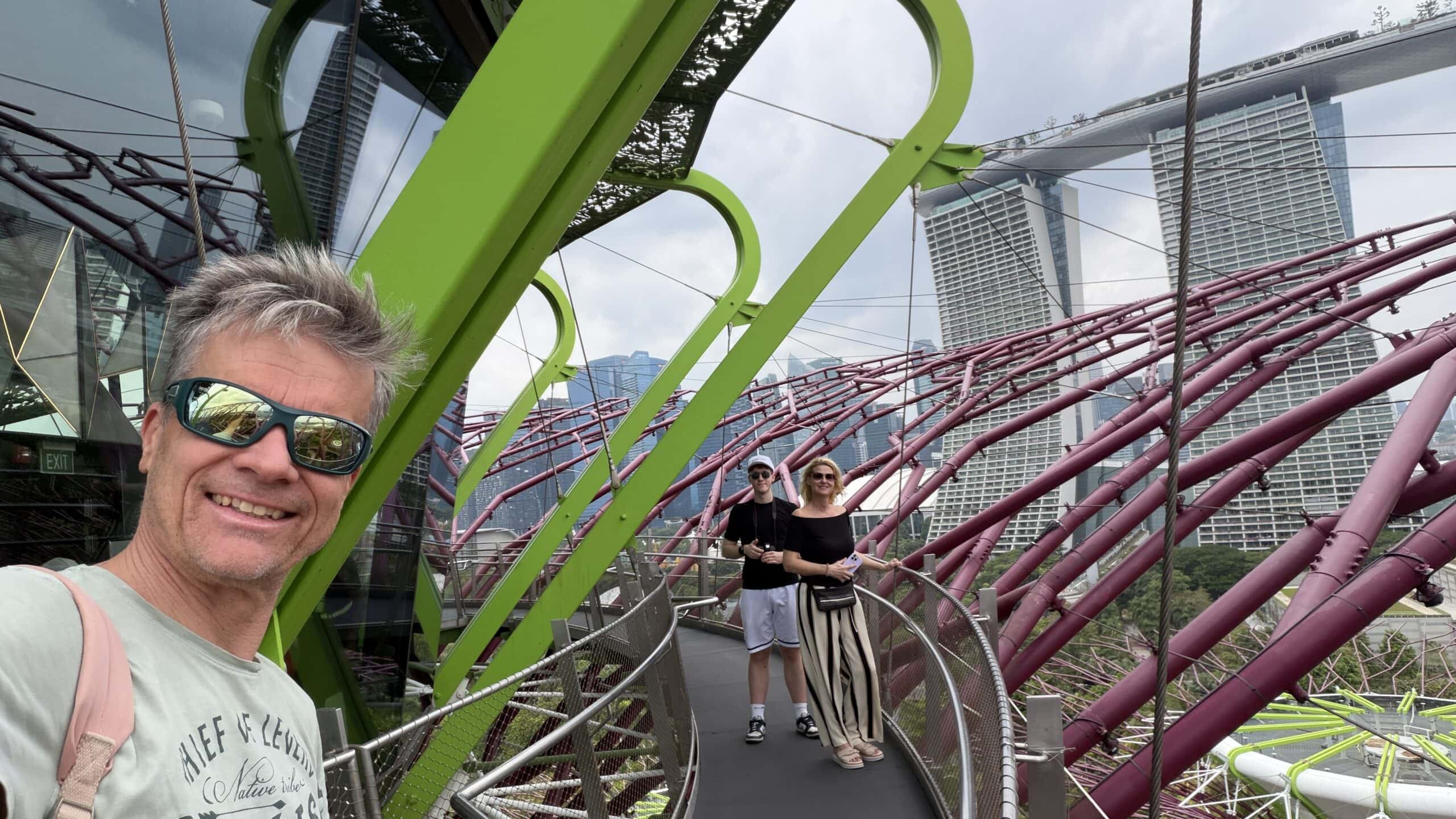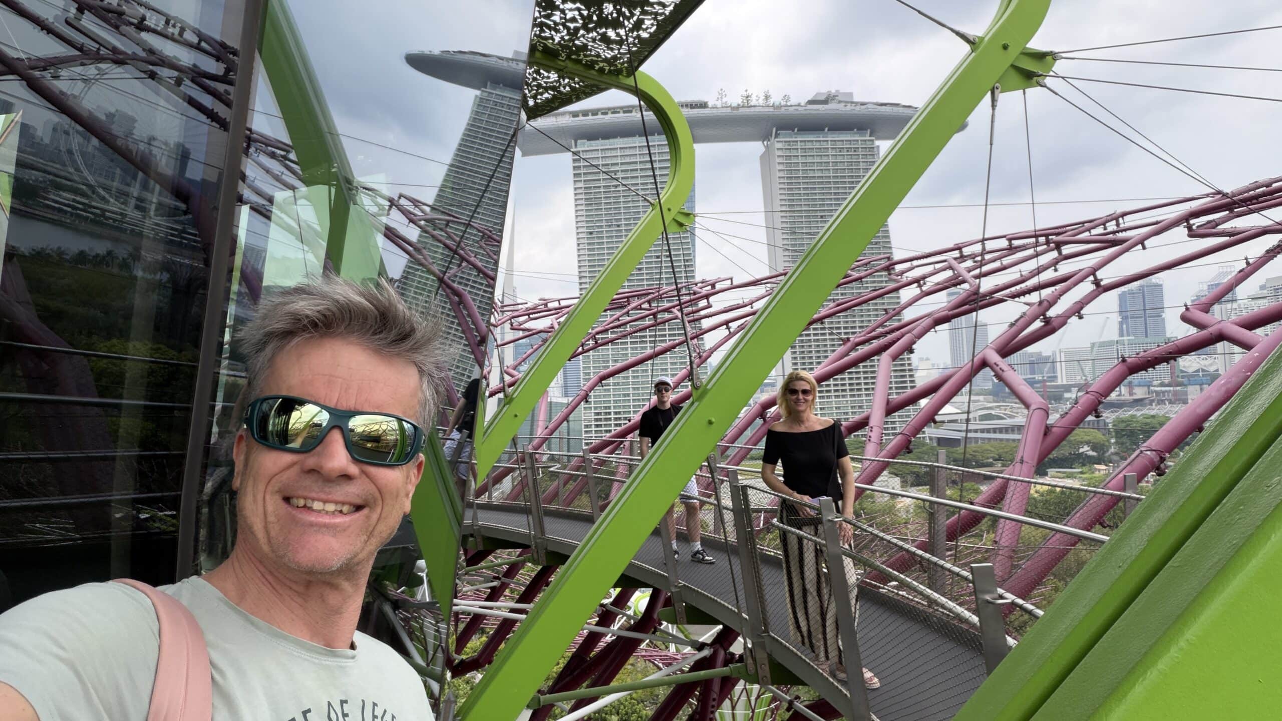 Zunächst bestanden wir diese großen künstlichen Bäume und fuhren dann auf den Supertree. Von der oben hat man einen herrlichen Ausblick auf unser Hotel und die Skyline von Singapur.
