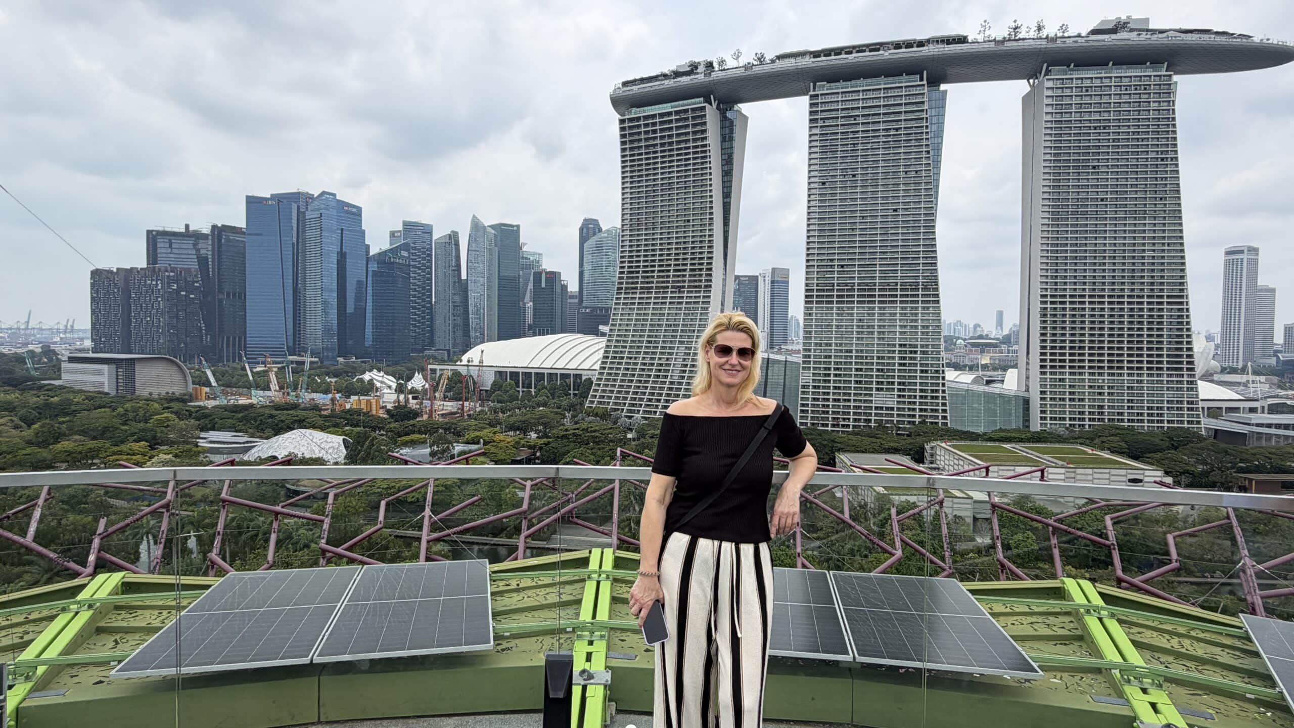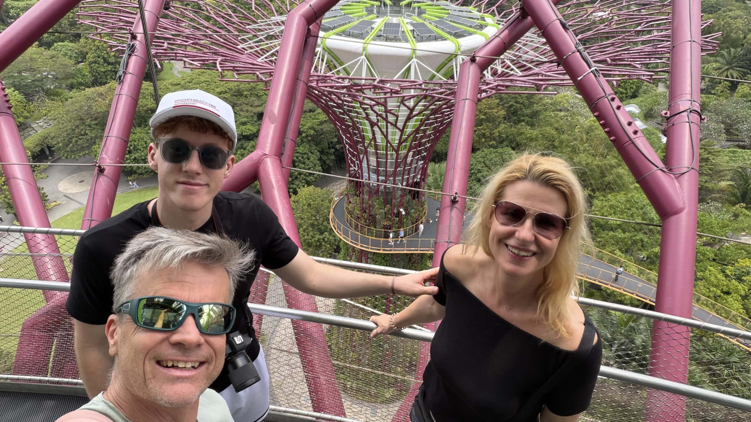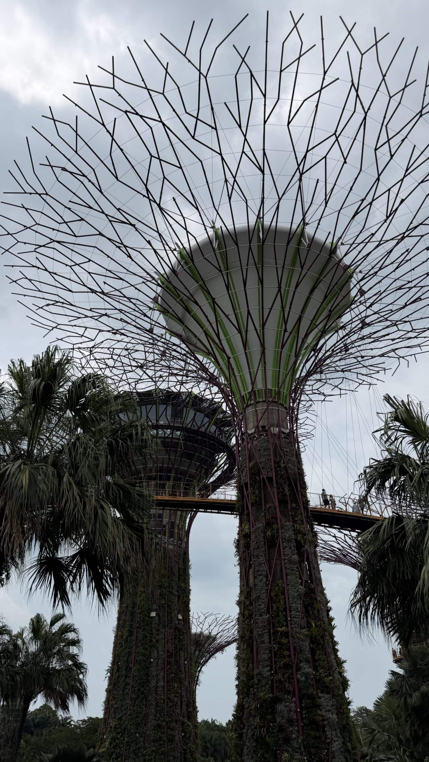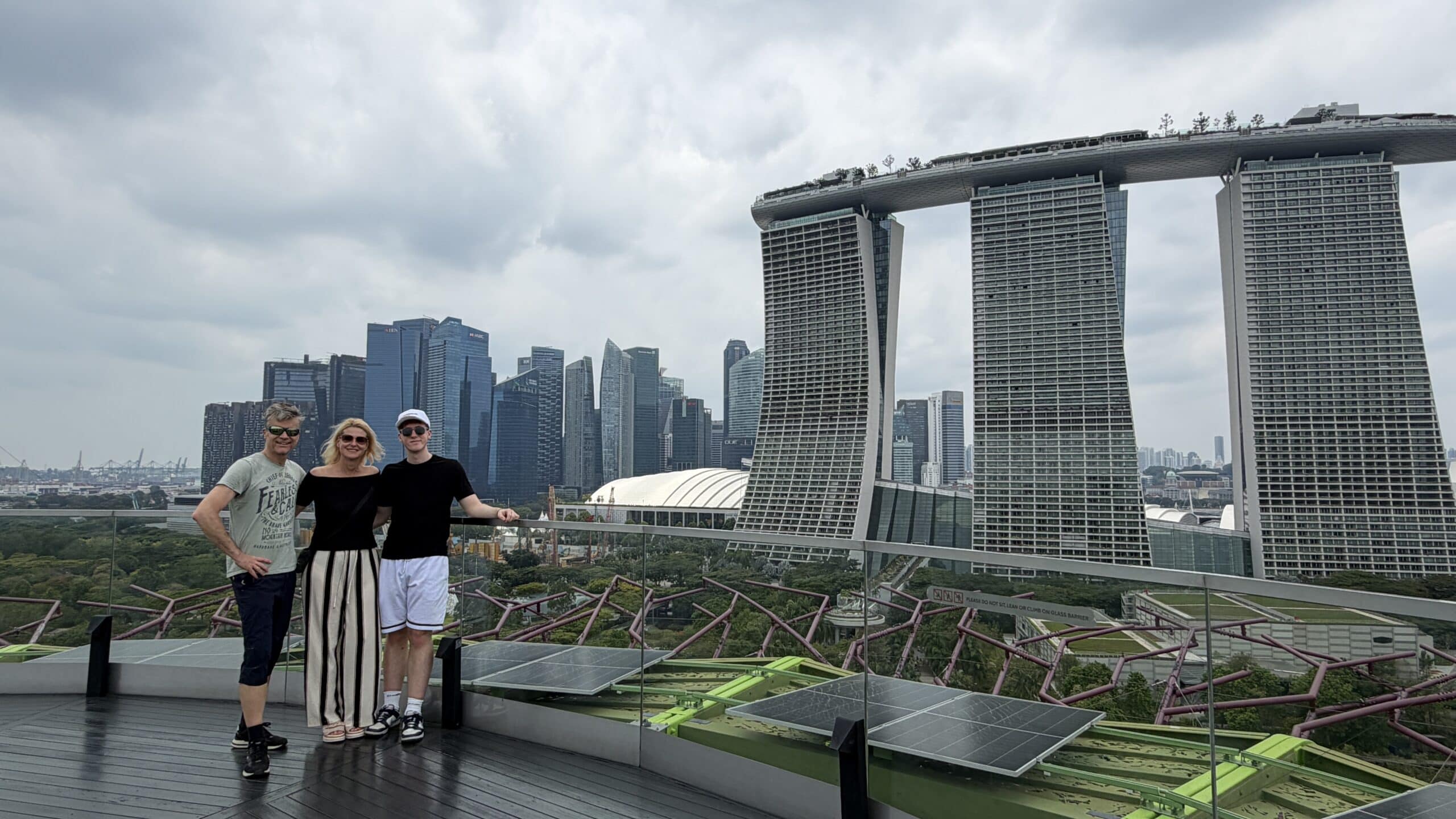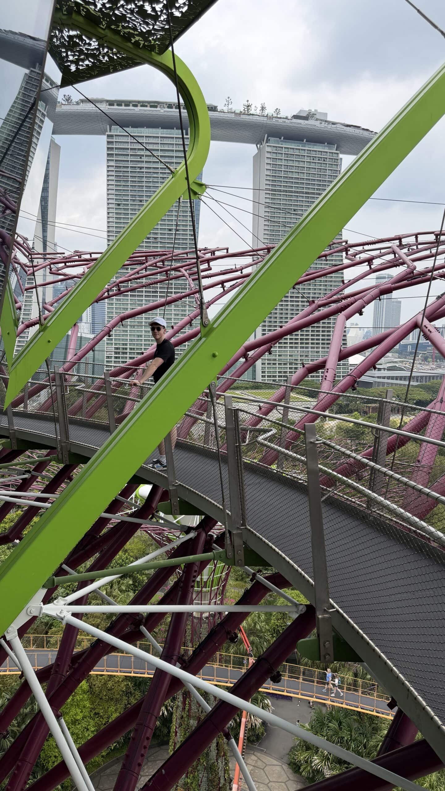 Zunächst bestanden wir diese großen künstlichen Bäume und fuhren dann auf den Supertree. Von der oben hat man einen herrlichen Ausblick auf unser Hotel und die Skyline von Singapur.
